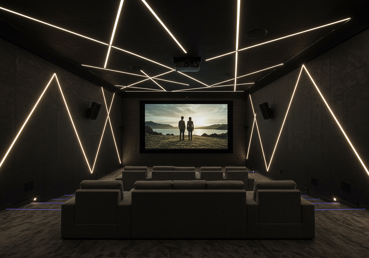 The exterior of the mansion is austere, painted in masculine shades of gunmetal gray, charcoal, and black. However, the interior features softer touches with beige-toned stone and decadent finishes. The lower level of the house includes a gym, cold plunge pool, wine cellar, movie theater, and sauna, while the penthouse level features a master suite with a private balcony and a bathroom clad in exotic slabs of black-and-white marble. There is also a rooftop deck offering breathtaking views.