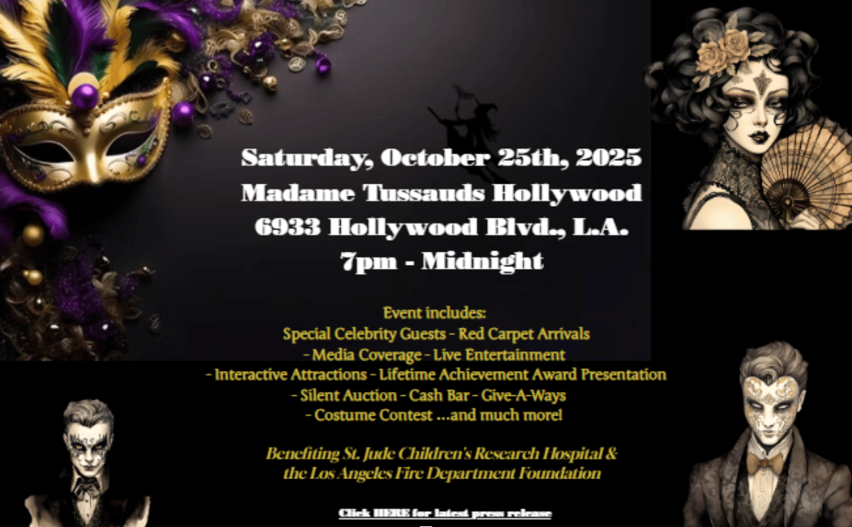 Halloween Hotness is more than just a party—it’s a charitable benefit supporting St. Jude Children’s Research Hospital and the Los Angeles Fire Department Foundation. Guests will enjoy a masquerade-themed evening featuring: