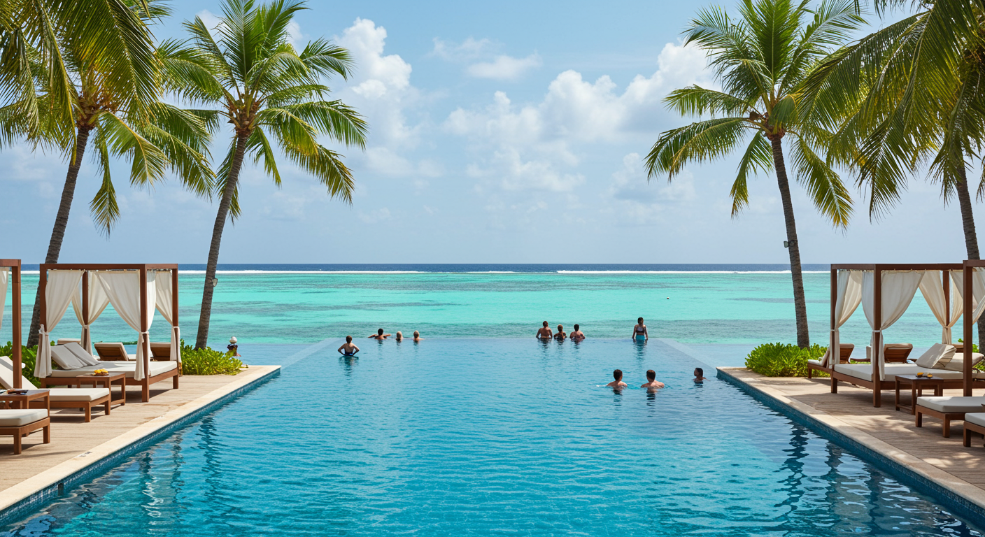 The coral atolls that make up the intimate nation of the Maldives is another tropical destination worth adding to your dream travel list. For pleasure seekers in search for far-off locales, we recommend the Fairmont Maldives as your place of refuge. Located on the “secret water island” the prestigious property is a dreamscape of perfect beaches and a 200-meter infinity pool that cuts through the property with glittering grandeur. Whether you are an active spirit or more of a lazy-day sun tanner, the epic pool lets you take what you need. From aggressive laps in the morning to tranquil paddles around the brink of the blue waters—this is one pool we will risk pruning up for. In addition, sushi bars and poolside mixologists offer freshly caught fish served in Maldivian and Japanese dishes along with a selection of classic cocktails.