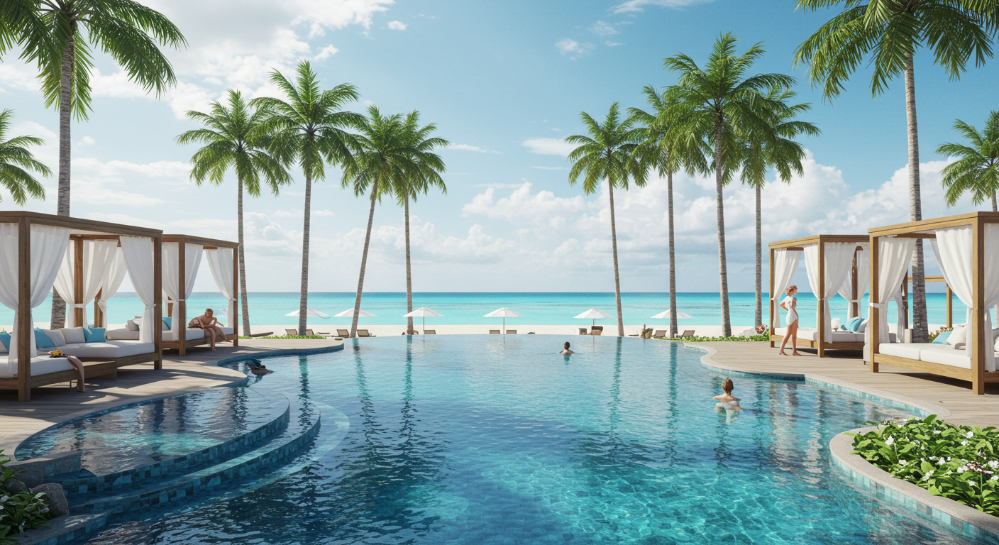 Wading into romance, whether you are solo or coupled up, is exactly what the exclusive infinity pool at TRS Yucatan feels like. The adults-only retreat located on the Riviera Maya on Mexico’s Caribbean coast answers all of our wishes to enjoy an all-inclusive resort experience without the crowds of families and young ones. A crescendo of luxuriant beauty comes in the form of three curvilinear infinity pools cascading from one to the next, leading the eye across the sandy white beach and off into the aqua waters beyond. The infinity pool can be a place of peace as much as a mecca for entertainment and fitness. High-energy aerobics classes are led by local instructors bumping current pop tunes while the excellent wait staff is ready to fix you up a daquiri by your cabana and ensuring your protected under the sun with complimentary SPF-lotion.