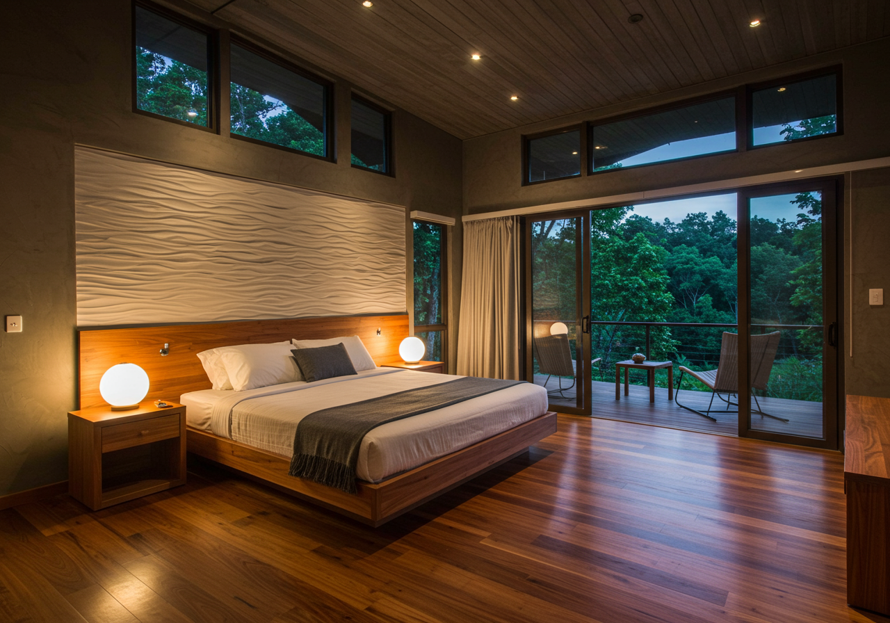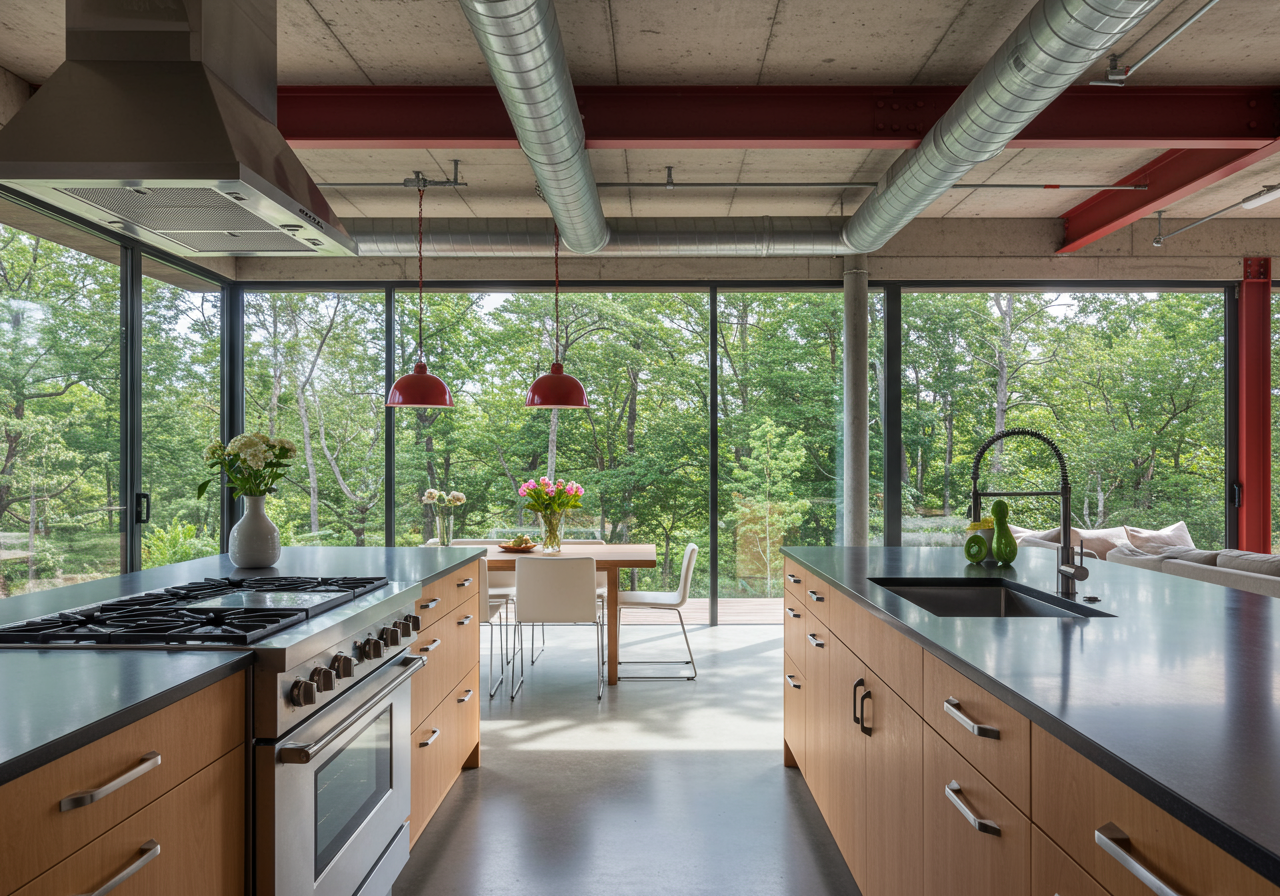 Due to the surrounding flora of the hiking trail and the sun, moon, stars, and thunderstorms as seen via glass walls and balconies, Allen thought the rugged and what some deemed unbuildable lot was the ideal site to realize his goal of living one with nature.