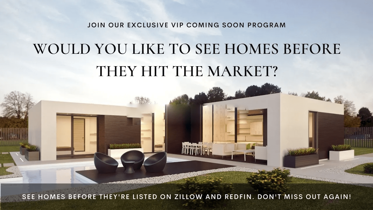 We’d like to cordially invite you to our brand-new VIP Coming Soon Program, that's 100% free to join. We will send you instant notifications about homes that are Coming Soon to the market.
