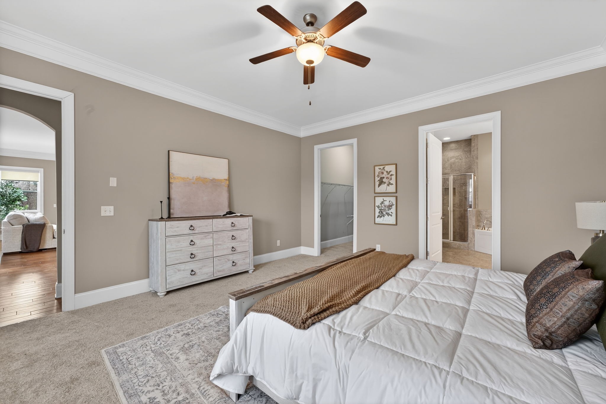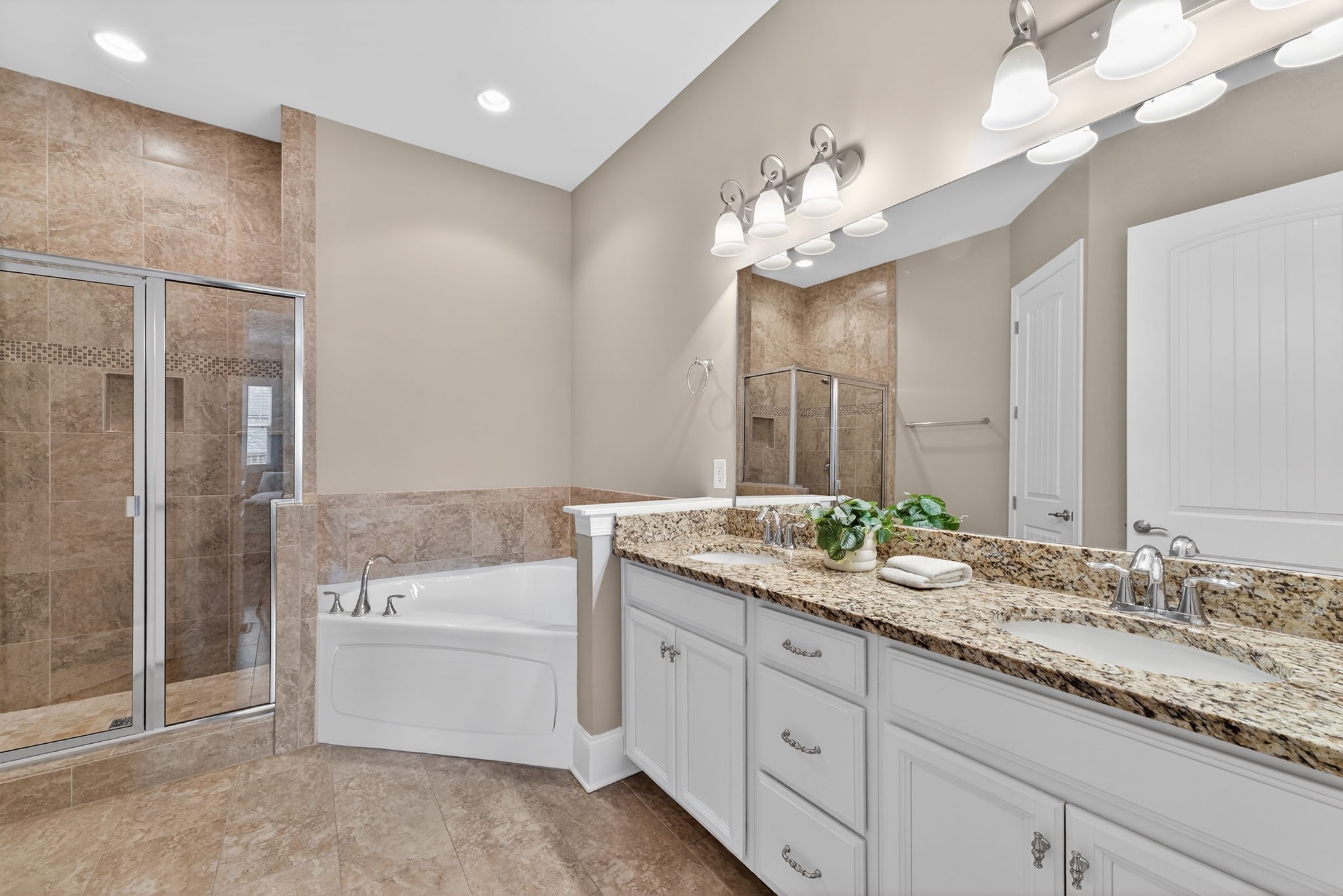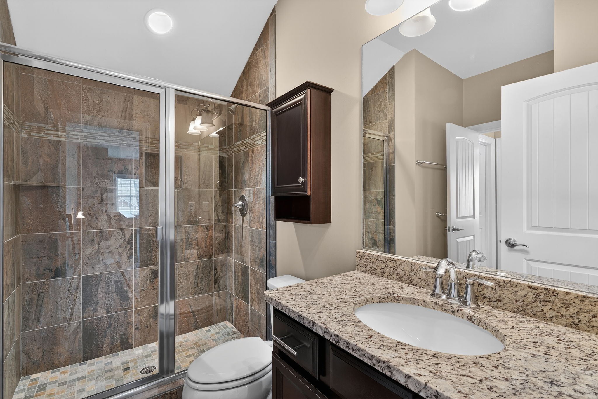 The primary suite provides a private retreat with dual vanities, a separate tub and shower, and a spacious walk-in closet. The in-law suite, additional bedrooms, second-floor recreation area, and dedicated office or flex spaces create exceptional adaptability for remote work, guest stays, or extended living needs.