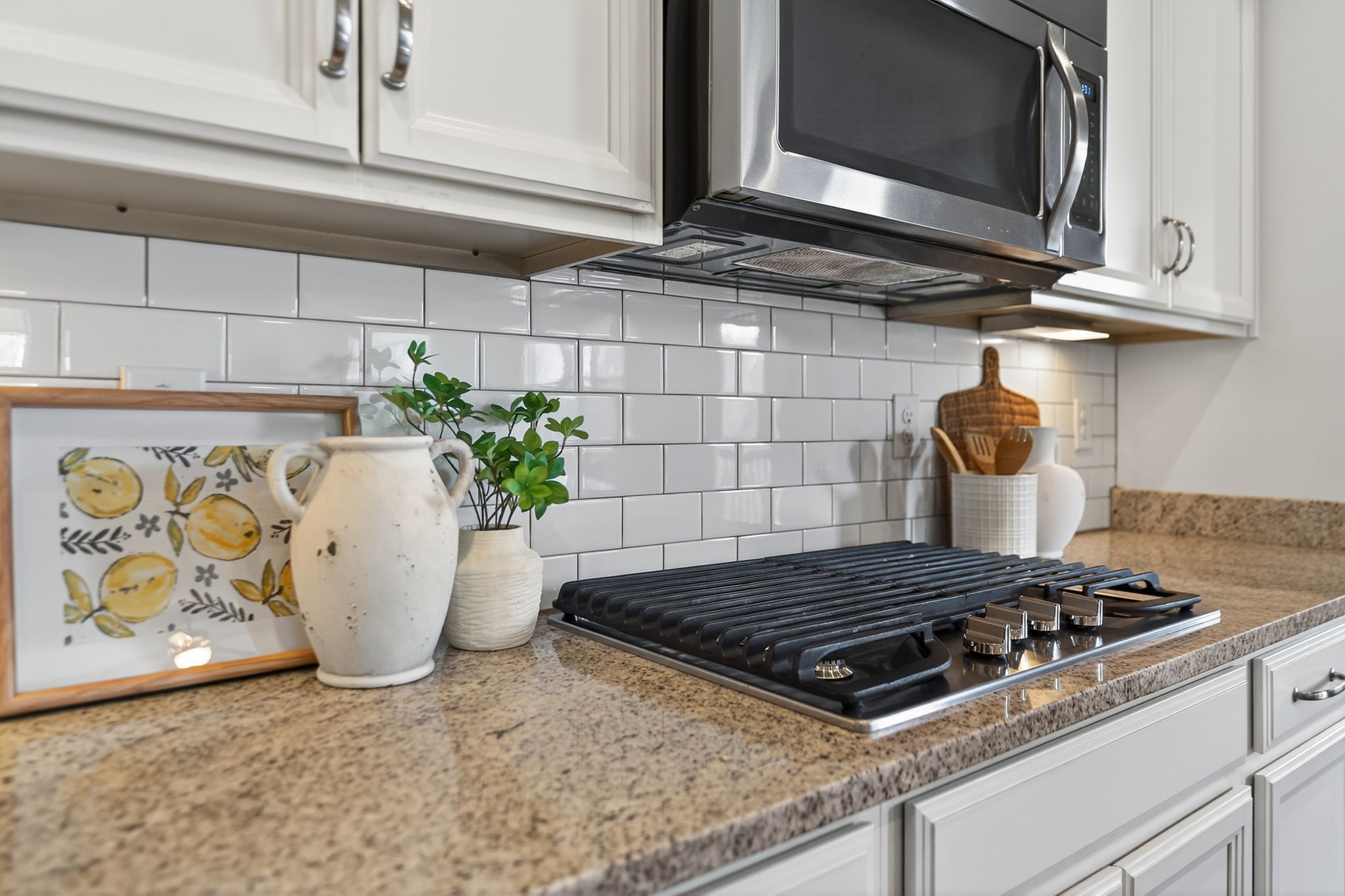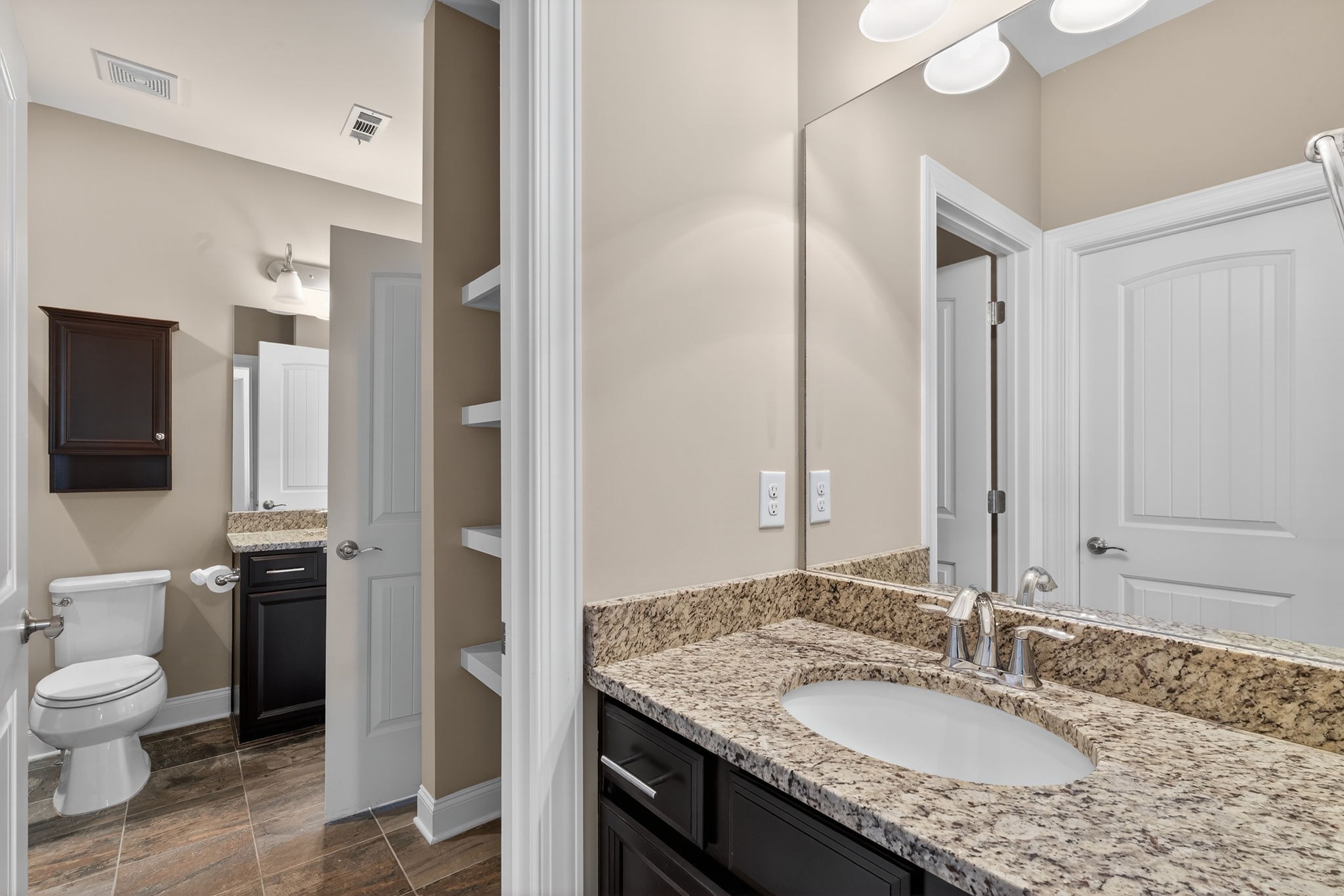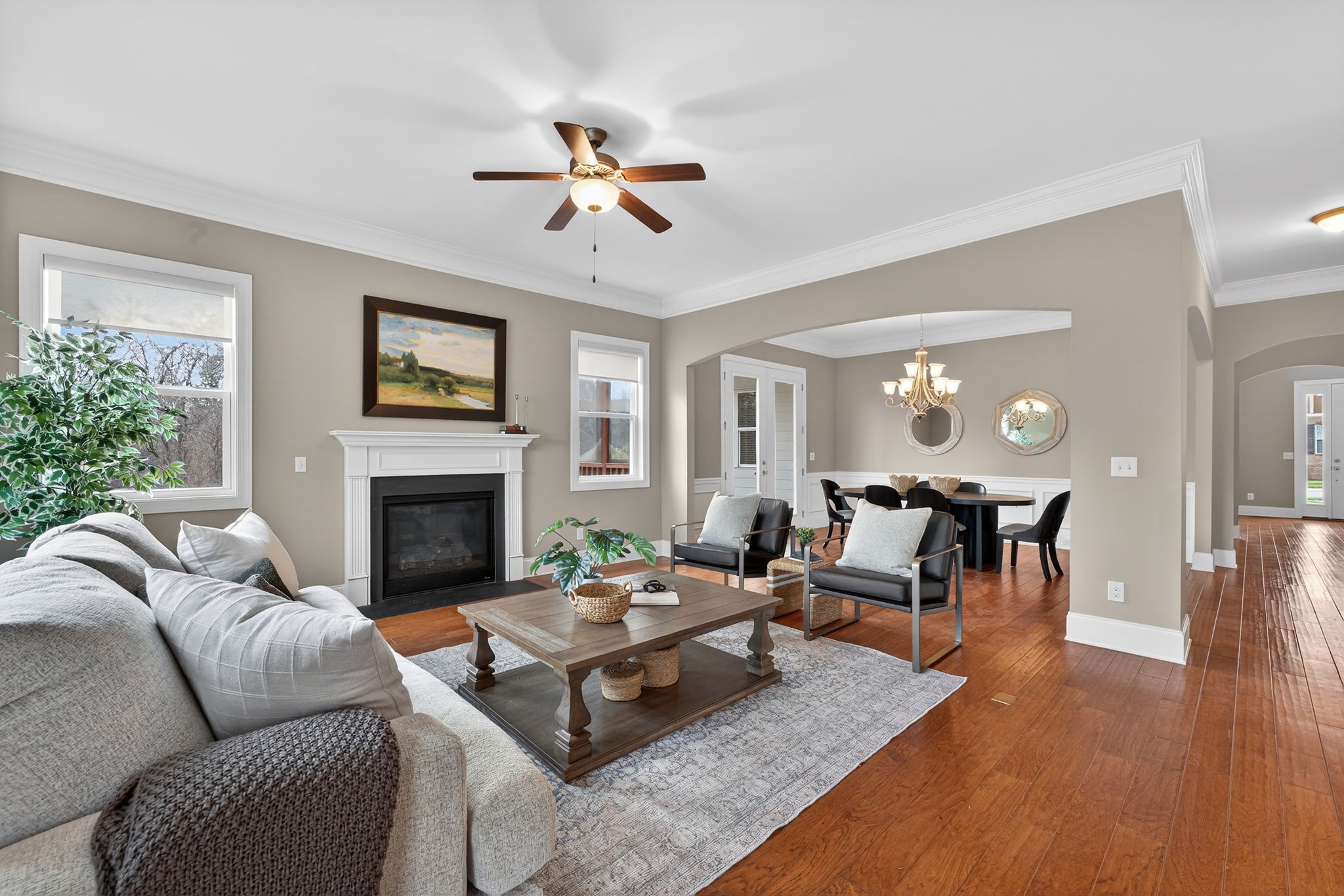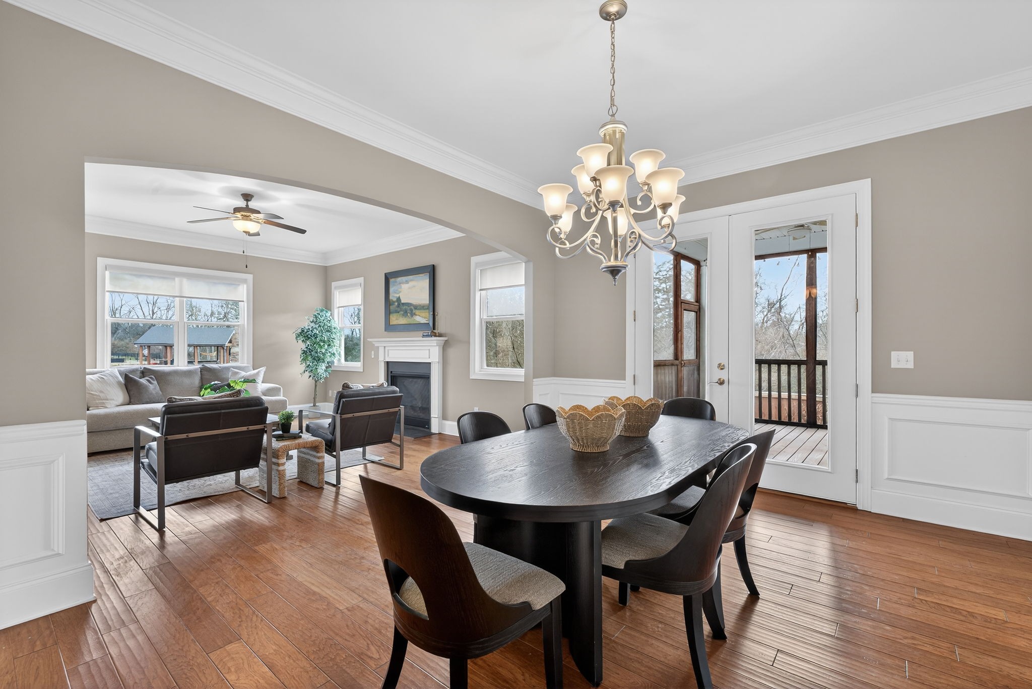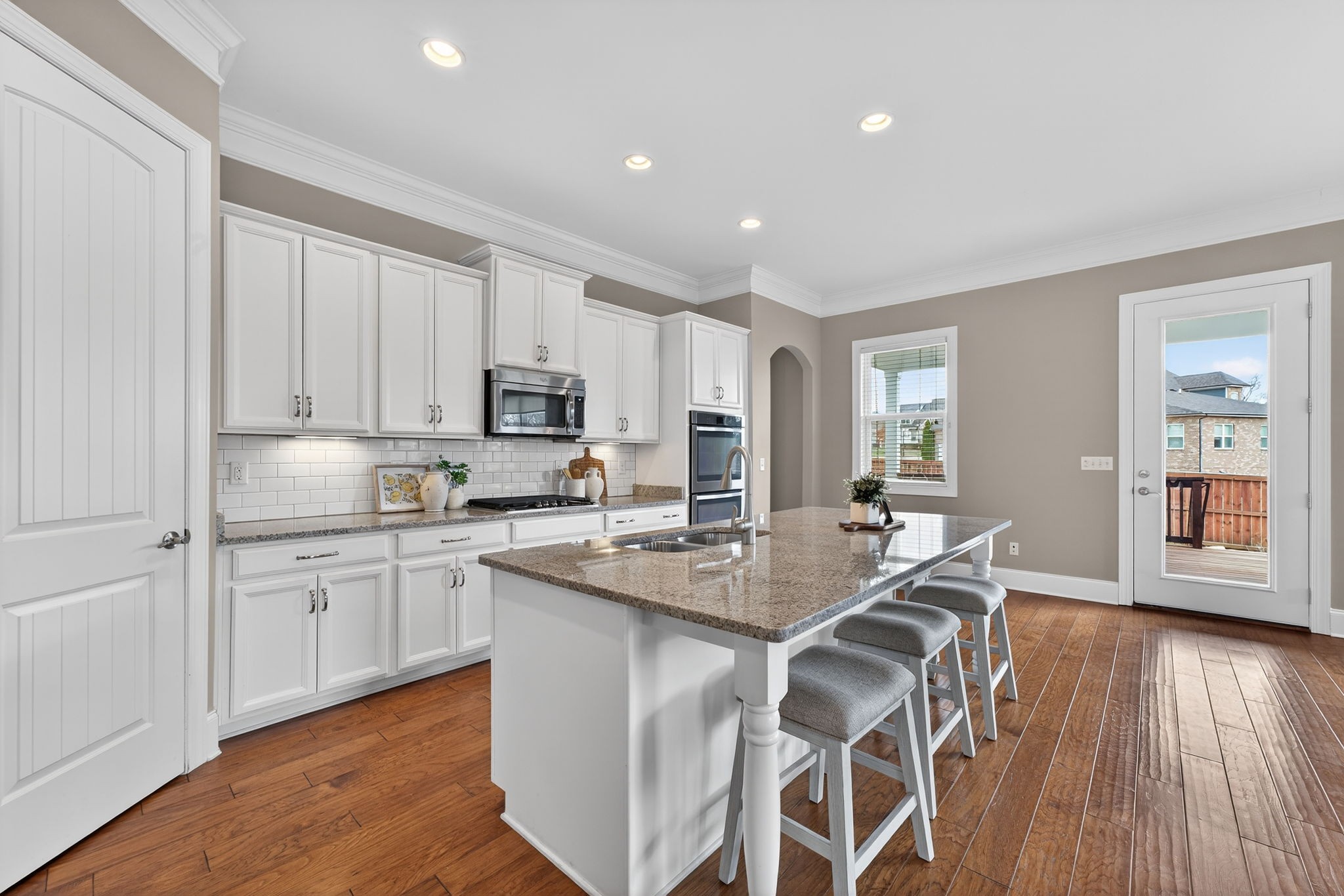 Set within the established Saint Blaise Retreat community, the main level features 10-foot ceilings, hardwood flooring in primary living areas, and an open layout connecting the living room, kitchen, and dining spaces. The kitchen is equipped with granite countertops, double ovens, ample cabinetry, and generous prep space--ideal for both everyday living and entertaining.
