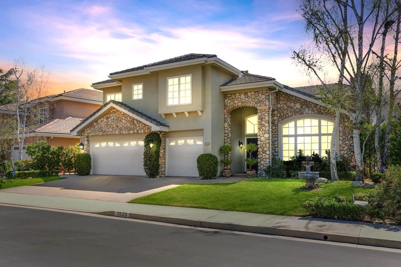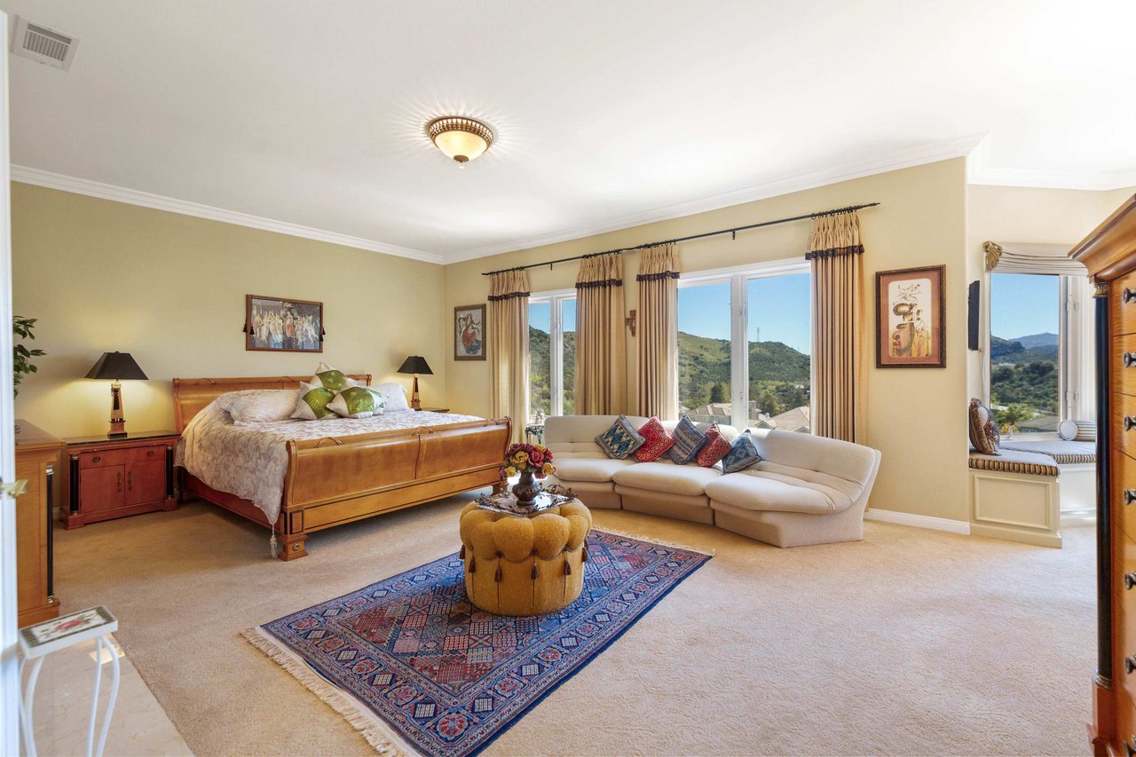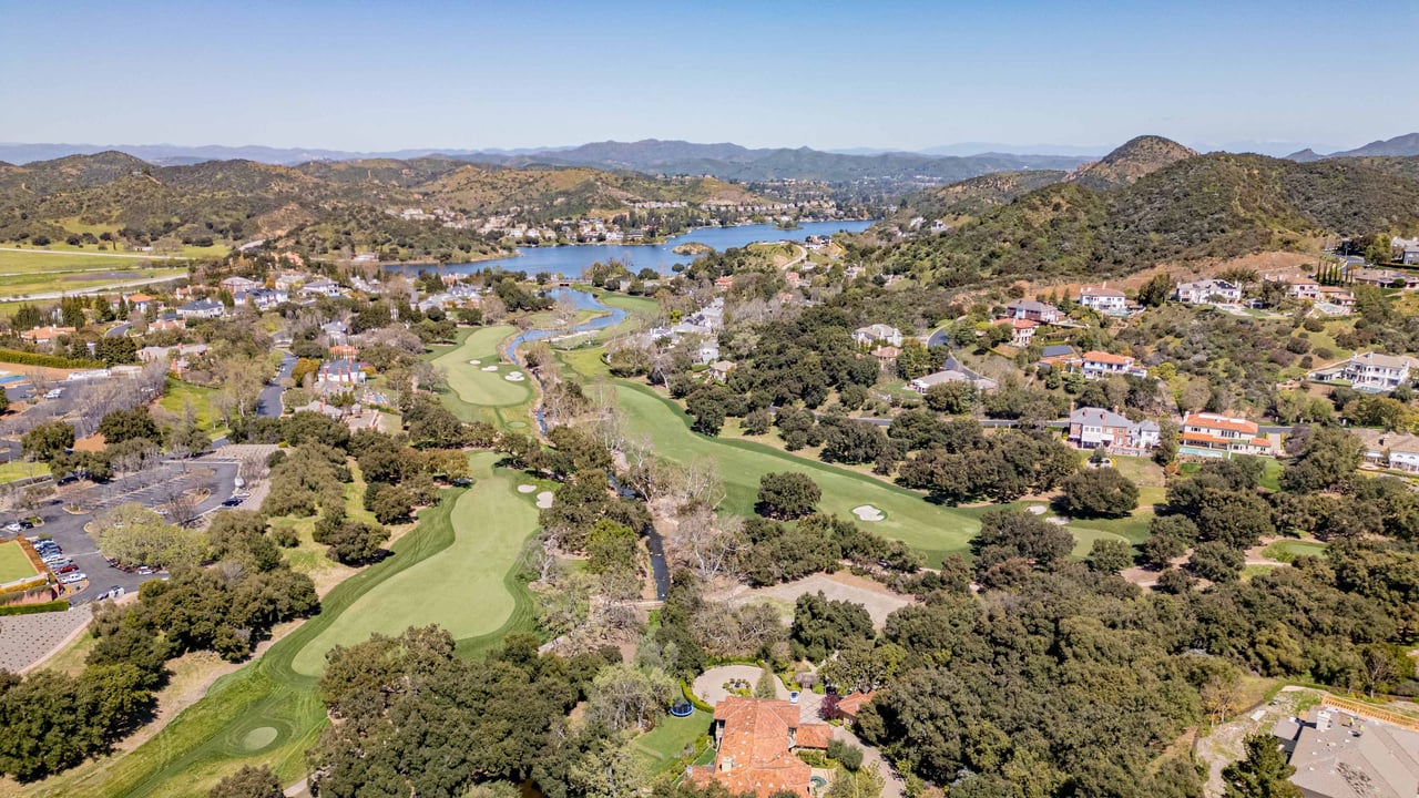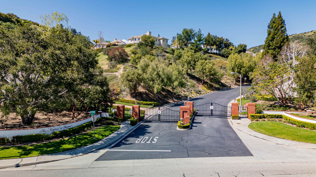 Welcome home to the largest floor plan within the coveted community of The Meadows at Sherwood. Step into luxury and elegance as natural light flows throughout this inviting open floor plan featuring dramatic 25ft vaulted ceilings. Enjoy hosting in the grand living room, impressive dining room, and cozy family room while overlooking the panoramic views of the Lake Sherwood community. Off the family room is a Chef's kitchen featuring custom cabinetry lined with granite countertops, KitchenAid appliances, and a beautiful breakfast nook. Walk outside to unwind and enjoy the serenity of the peaceful backyard featuring a soothing rock waterfall, multiple patio areas, and endless views. Space to build your dream backyard with a pool, spa, bbq area, fire pit, and more (Seller has proposed renderings in photos)! As you enter back inside and head toward the staircase, you will find a full bathroom and a bedroom/office with custom built-in cabinetry (currently being used as a billiards room & library). Make your way upstairs to find the primary bedroom, 3rd & 4th bedrooms with a Jack & Jill bathroom, and the 5th bedroom en-suite. The expansive primary bedroom includes a fireplace, generous walk-in closet, sitting area with views overlooking Lake Sherwood, and a spa inspired bathroom featuring custom vanities, a Jacuzzi tub, and a lavish walk-in shower. This home is a true entertainer's dream with a breathtaking resort-style ambiance. Residents have access to Lake Sherwood and can take advantage of fishing, swimming, kayaking, paddle boarding, boat slips, and more!