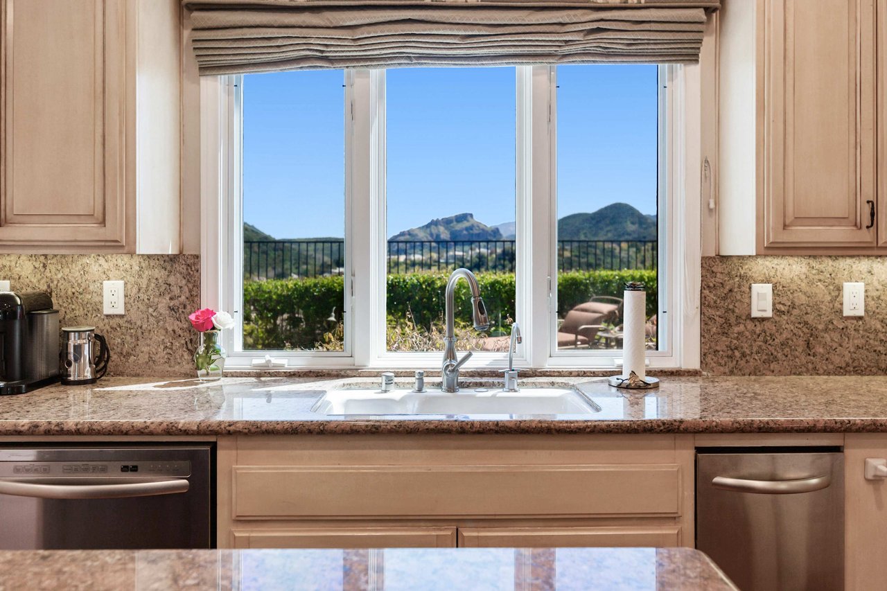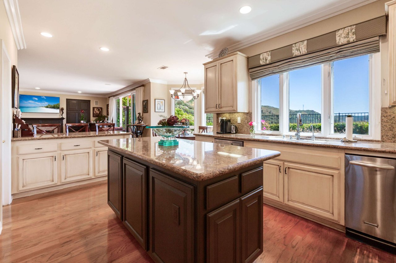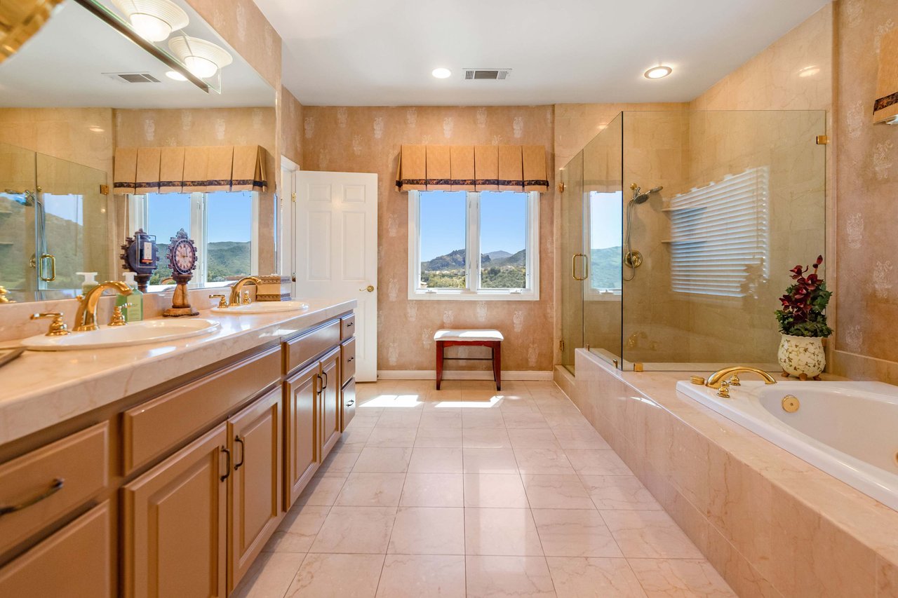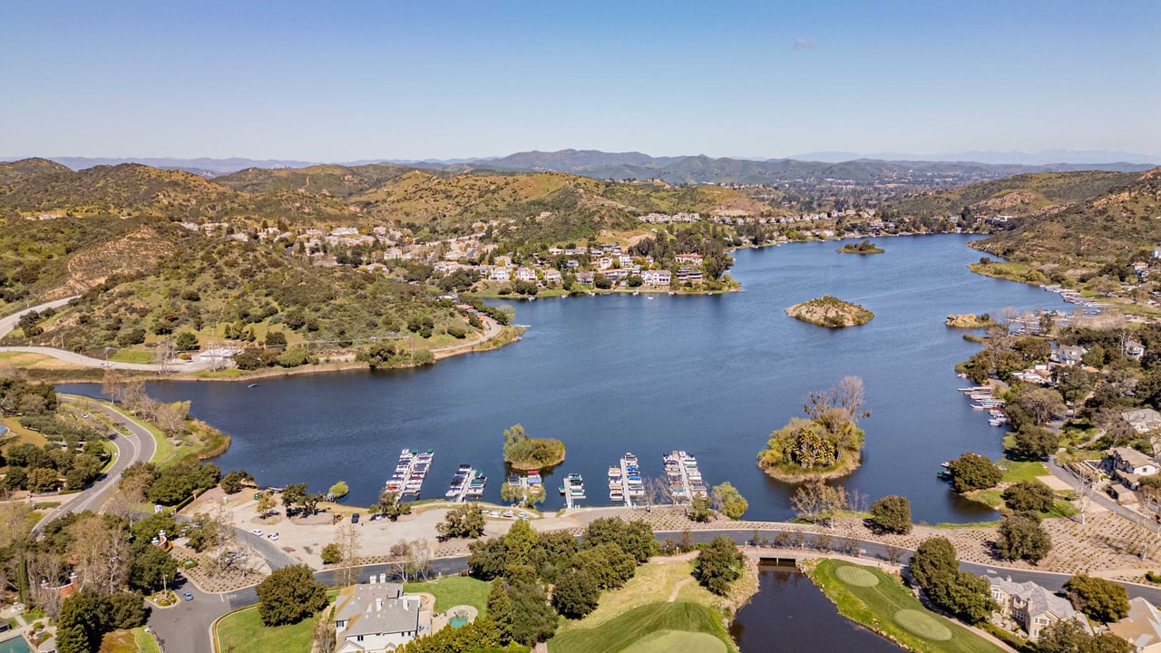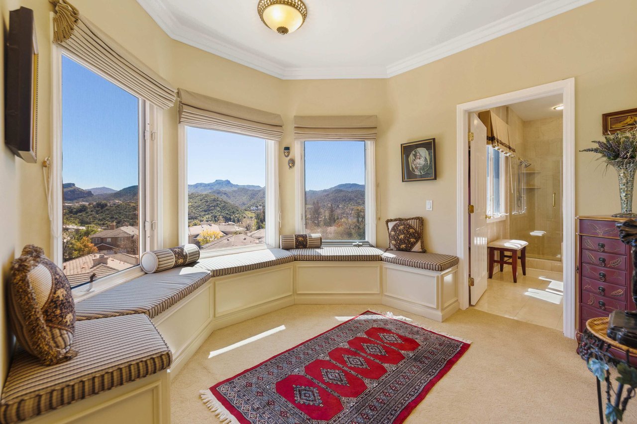 Welcome home to the largest floor plan within the coveted community of The Meadows at Sherwood. Step into luxury and elegance as natural light flows throughout this inviting open floor plan featuring dramatic 25ft vaulted ceilings. Enjoy hosting in the grand living room, impressive dining room, and cozy family room while overlooking the panoramic views of the Lake Sherwood community. Off the family room is a Chef's kitchen featuring custom cabinetry lined with granite countertops, KitchenAid appliances, and a beautiful breakfast nook. Walk outside to unwind and enjoy the serenity of the peaceful backyard featuring a soothing rock waterfall, multiple patio areas, and endless views. Space to build your dream backyard with a pool, spa, bbq area, fire pit, and more (Seller has proposed renderings in photos)! As you enter back inside and head toward the staircase, you will find a full bathroom and a bedroom/office with custom built-in cabinetry (currently being used as a billiards room & library). Make your way upstairs to find the primary bedroom, 3rd & 4th bedrooms with a Jack & Jill bathroom, and the 5th bedroom en-suite. The expansive primary bedroom includes a fireplace, generous walk-in closet, sitting area with views overlooking Lake Sherwood, and a spa inspired bathroom featuring custom vanities, a Jacuzzi tub, and a lavish walk-in shower. This home is a true entertainer's dream with a breathtaking resort-style ambiance. Residents have access to Lake Sherwood and can take advantage of fishing, swimming, kayaking, paddle boarding, boat slips, and more!