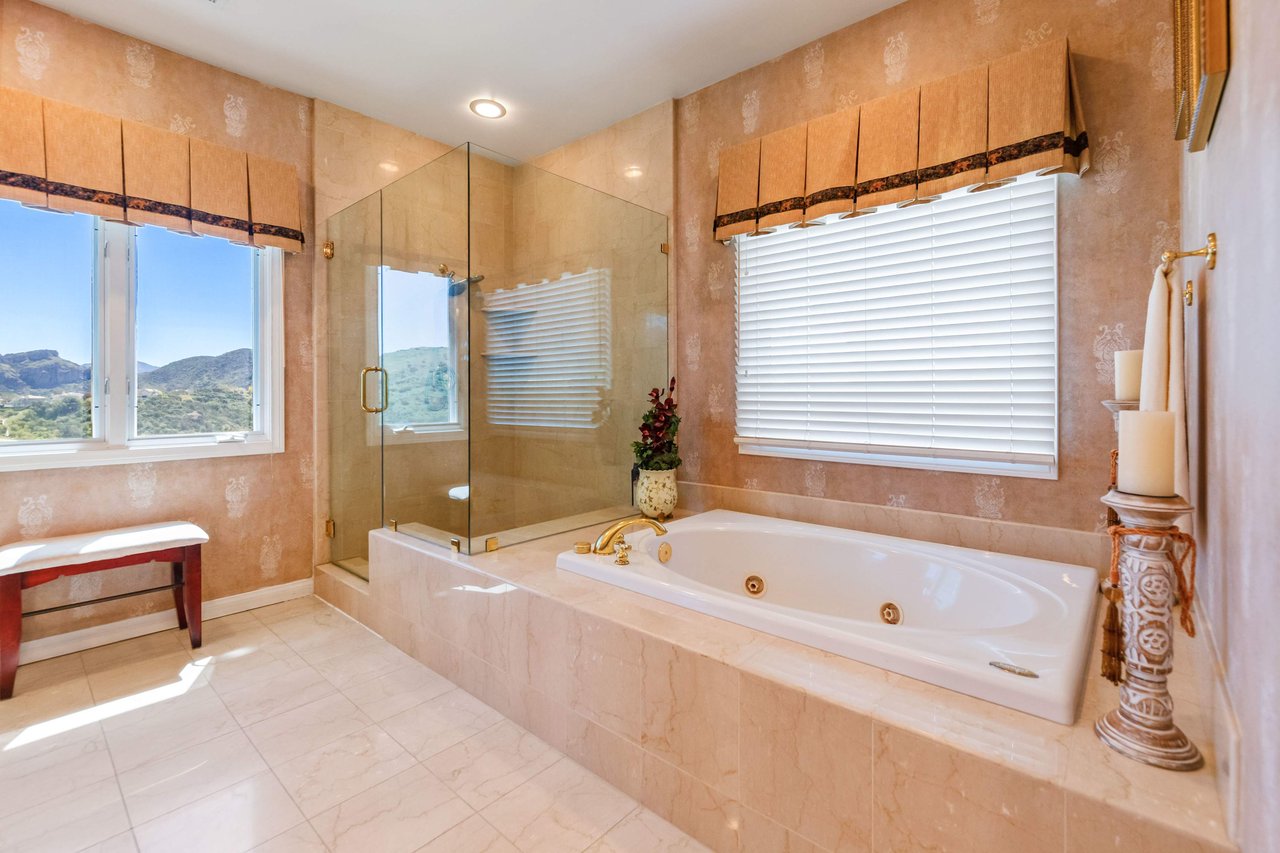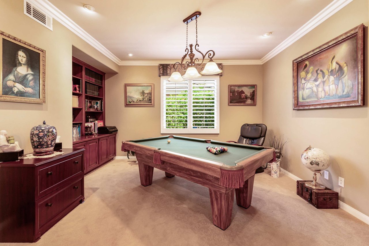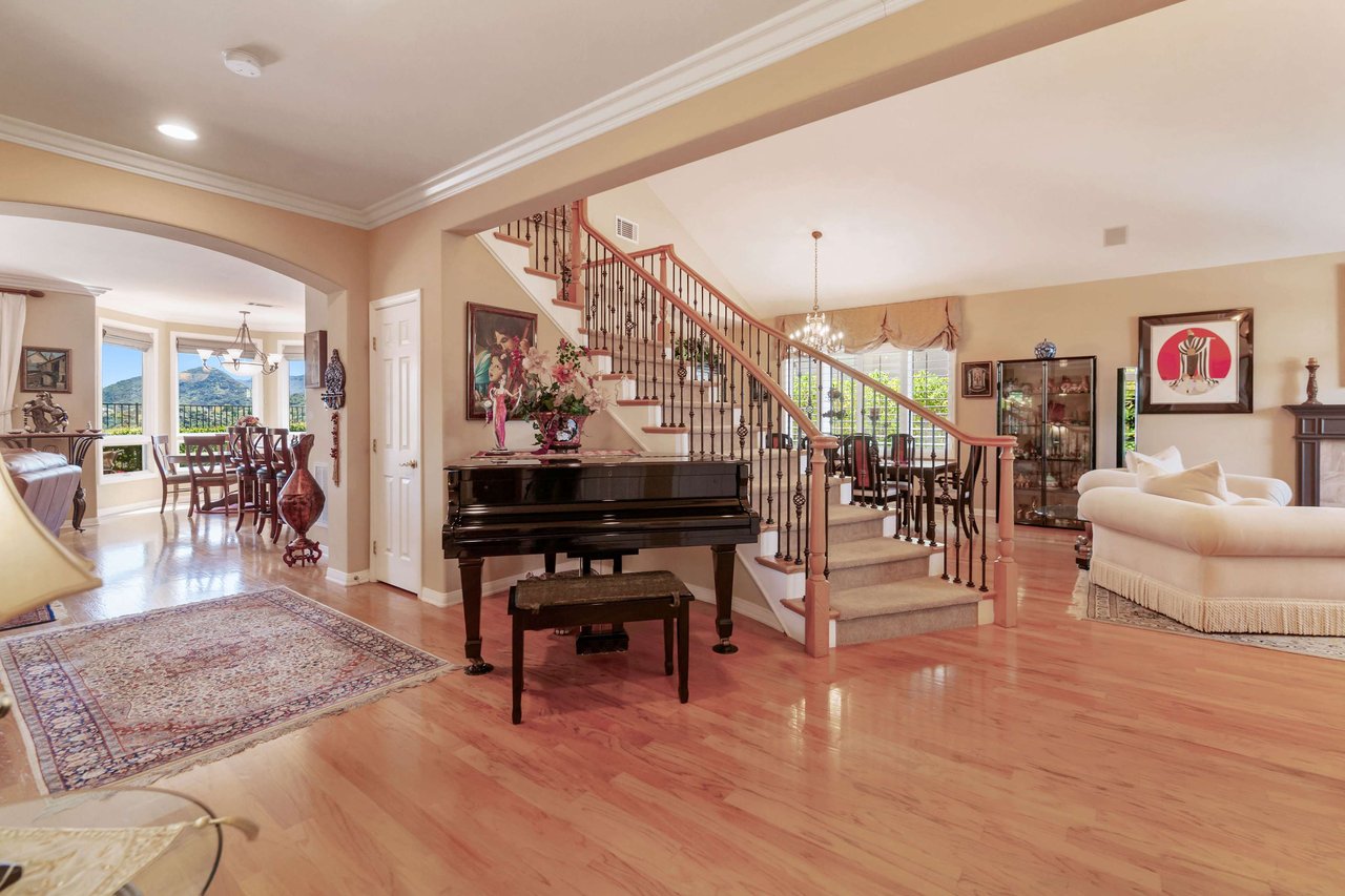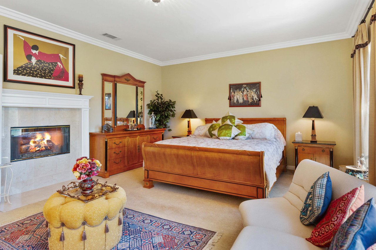 Welcome home to the largest floor plan within the coveted community of The Meadows at Sherwood. Step into luxury and elegance as natural light flows throughout this inviting open floor plan featuring dramatic 25ft vaulted ceilings. Enjoy hosting in the grand living room, impressive dining room, and cozy family room while overlooking the panoramic views of the Lake Sherwood community. Off the family room is a Chef's kitchen featuring custom cabinetry lined with granite countertops, KitchenAid appliances, and a beautiful breakfast nook. Walk outside to unwind and enjoy the serenity of the peaceful backyard featuring a soothing rock waterfall, multiple patio areas, and endless views. Space to build your dream backyard with a pool, spa, bbq area, fire pit, and more (Seller has proposed renderings in photos)! As you enter back inside and head toward the staircase, you will find a full bathroom and a bedroom/office with custom built-in cabinetry (currently being used as a billiards room & library). Make your way upstairs to find the primary bedroom, 3rd & 4th bedrooms with a Jack & Jill bathroom, and the 5th bedroom en-suite. The expansive primary bedroom includes a fireplace, generous walk-in closet, sitting area with views overlooking Lake Sherwood, and a spa inspired bathroom featuring custom vanities, a Jacuzzi tub, and a lavish walk-in shower. This home is a true entertainer's dream with a breathtaking resort-style ambiance. Residents have access to Lake Sherwood and can take advantage of fishing, swimming, kayaking, paddle boarding, boat slips, and more!