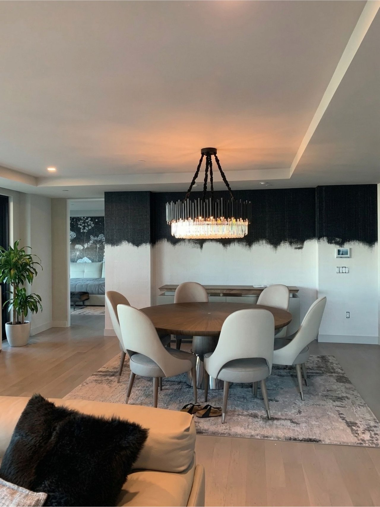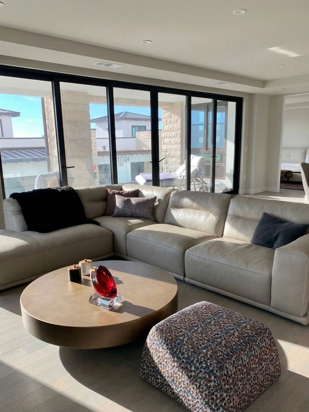 This light-filled single-level residence features a spacious, comfortable open floor plan where the living, dining, and kitchen areas transition effortlessly for easy day to day living and relaxed entertaining. Walls of glass open to expansive wraparound balconies, extending the living space outdoors and capturing ocean views with seamless indoor-outdoor flow.
