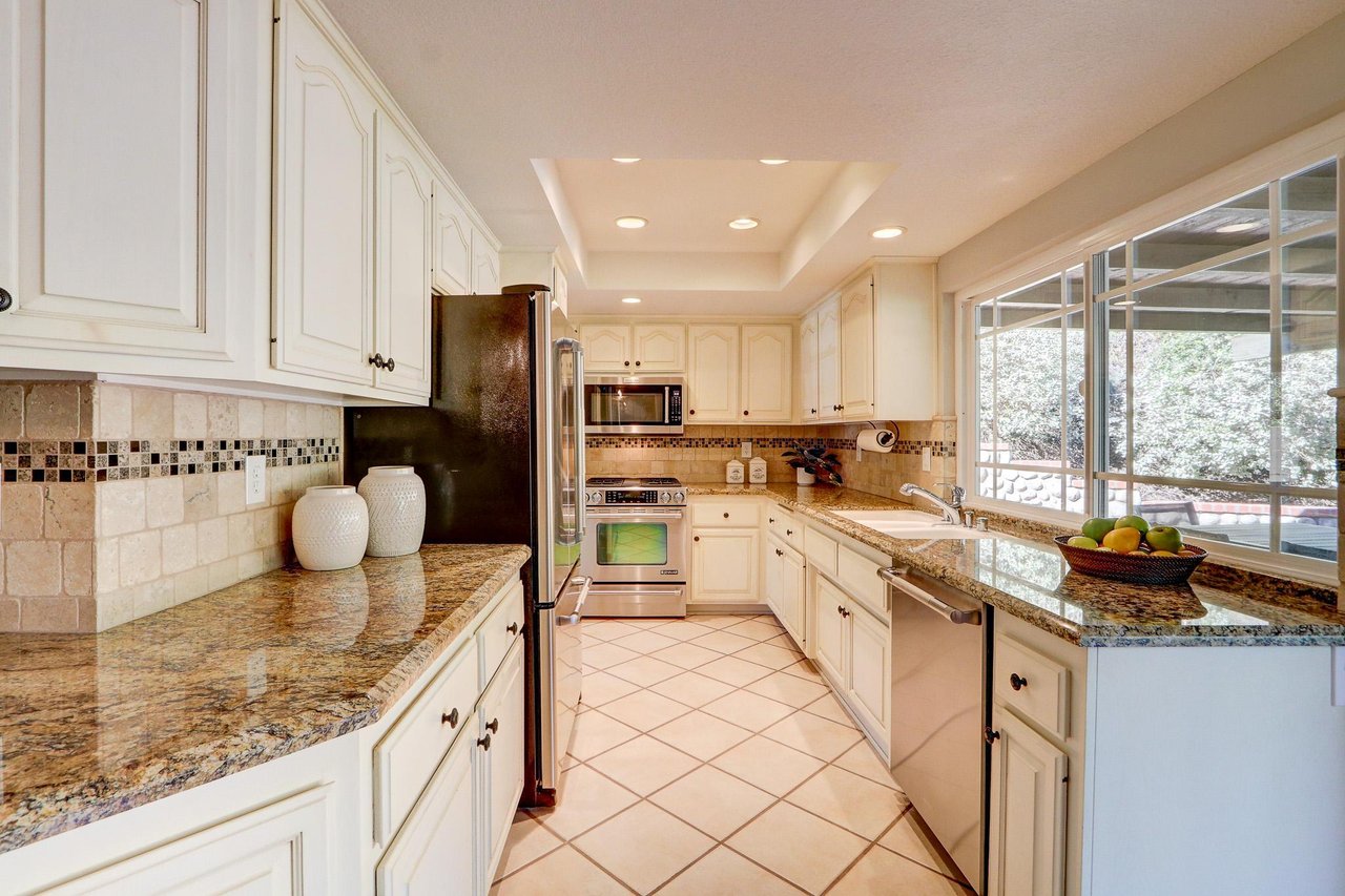 Welcome to a rare opportunity in one of Thousand Oaks' most centrally located and established neighborhoods. Ideally situated adjacent to the beautiful Sunset Hills Country Club and just minutes from convenient freeway access, this home offers the perfect balance of serenity and accessibility. Offered for the first time since the 1970s, this well-loved residence has been thoughtfully maintained and tastefully updated over the years. With approximately 2,242 square feet of living space, the home features four bedrooms, two and a half bathrooms, and a flexible split-level floor plan designed for both comfortable daily living and effortless entertaining. The interior showcases an updated kitchen and refreshed bathrooms, complemented by quality cabinetry, stone countertops, recessed lighting, and smooth ceilings. Multiple living spaces provide versatility for today's lifestyle, including a spacious living room and a welcoming lower-level family room ideal for gatherings, media, or relaxation. Set on a generously sized lot, the private backyard offers a peaceful, retreat-like setting with ample room to entertain, garden, or simply enjoy the Southern California lifestyle. The location places you just moments from shopping, dining, parks, golf, and all that Thousand Oaks has to offer while still enjoying the quiet charm of an established residential neighborhood. A true first-time-on-market offering in a highly desirable Thousand Oaks location near Sunset Hills Country Club. Homes like this rarely come available don't miss the opportunity to make it your own.