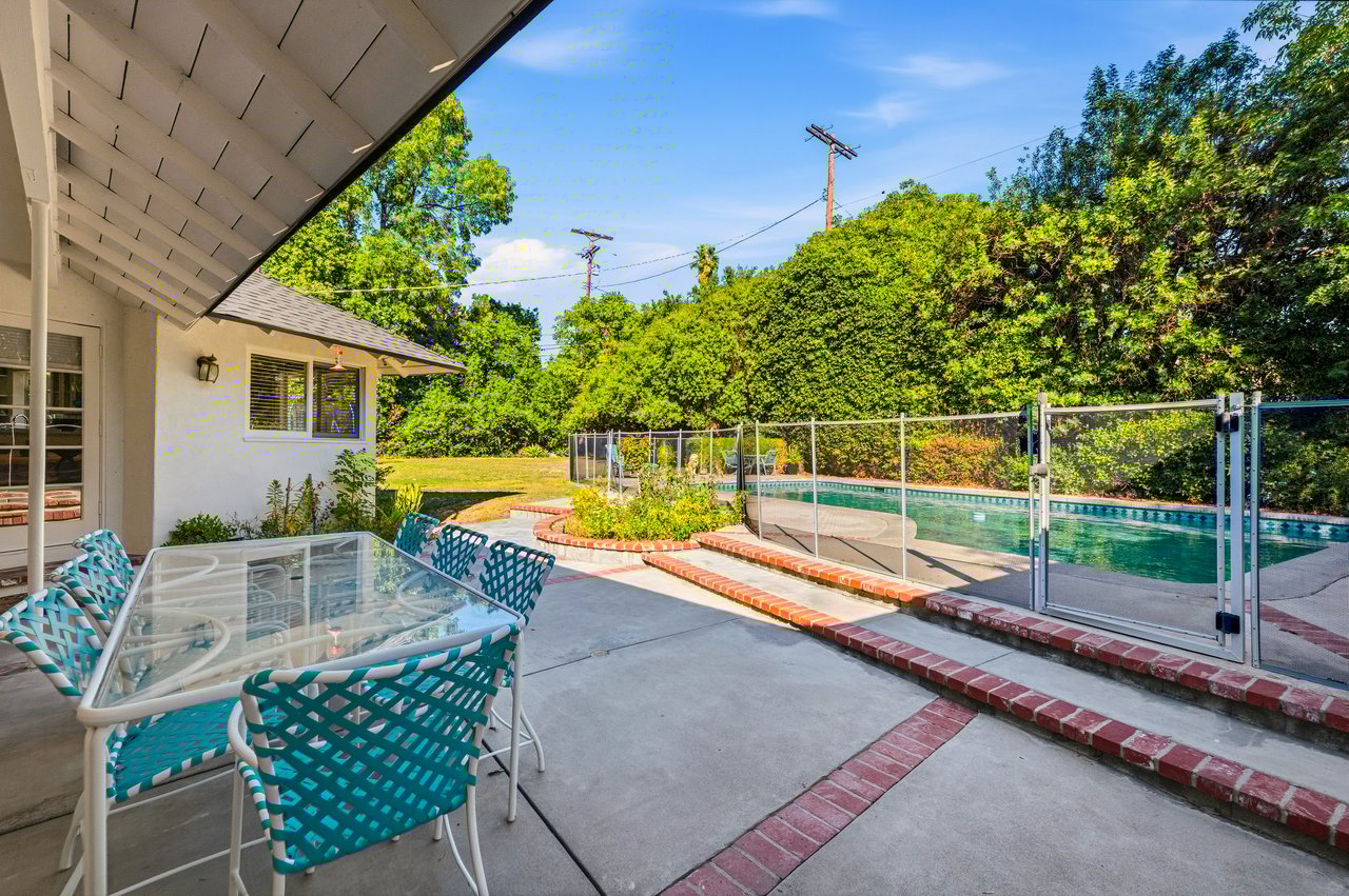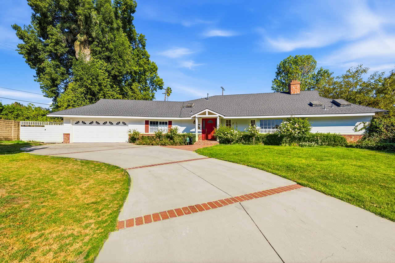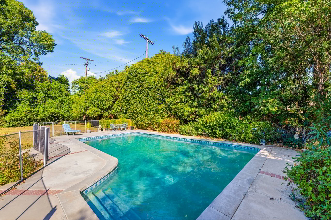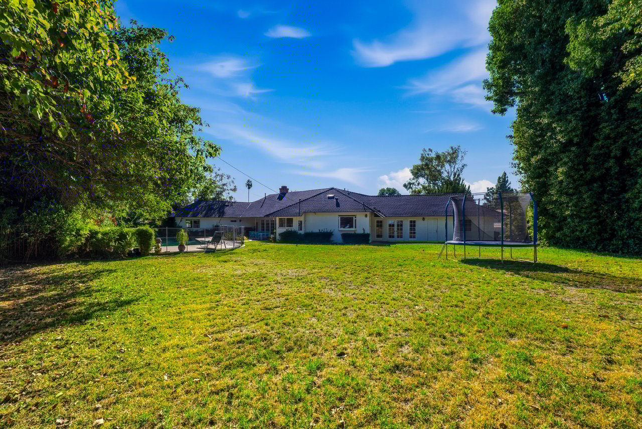 Welcome to this charming single-level ranch-style home in the heart of Sherwood Forest. Nestled on nearly half an acre of beautifully landscaped grounds, this 3-bedroom, 3-bath residence blends timeless character with endless potential.Step inside to discover an inviting floor plan with open-beamed ceilings, light wood floors, and abundant natural light. The spacious kitchen features a generous island, perfect for casual dining or entertaining, and flows seamlessly into the living room and bonus family room --ideal for gatherings or a home office. French doors open to a sprawling backyard oasis with a sparkling pool, mature trees, and ample room to relax, garden, or expand.With great curb appeal, a large private yard, and space to potentially add an ADU, this property offers both comfort and opportunity. Enjoy the best of California living in a peaceful, highly desirable neighborhood--where space, style, and setting come together beautifully.