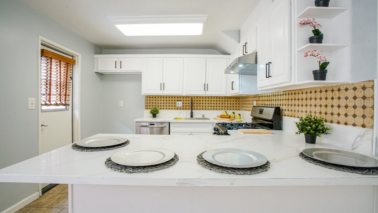 The heart of the home is the gorgeous remodeled kitchen, complete with sleek quartz countertops, ample cabinet space, from here, step out to your private patio, ideal for outdoor dining, morning coffee, or simply unwinding in a tranquil setting.