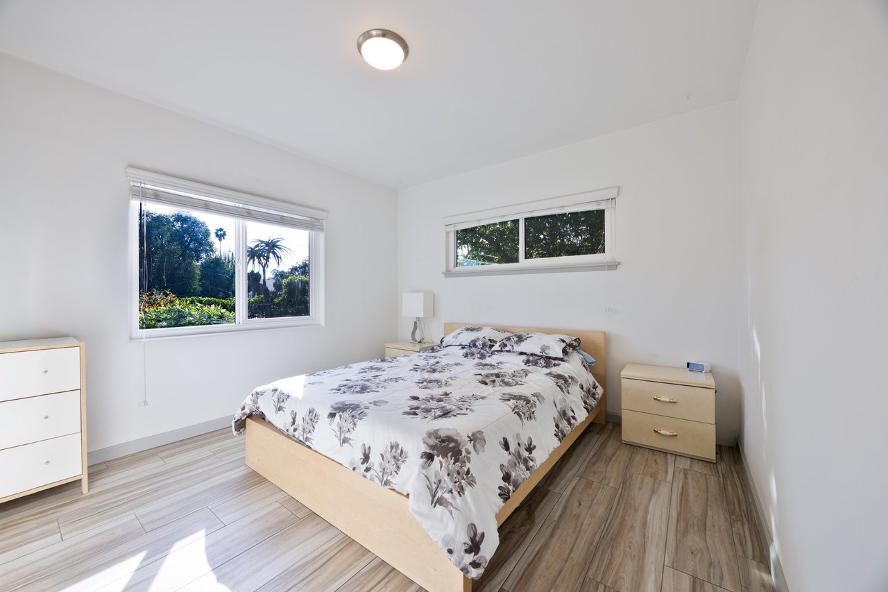 As you enter the property through the alley and gated access, you are greeted by a detached garage, a generous lot, and a beautifully remodeled home. Step inside to find interiors filled with natural light, complemented by sound-proof windows and doors that create a peaceful retreat from the day. Fresh interior paint completed approximately five years ago adds to the home’s clean, well-maintained feel.