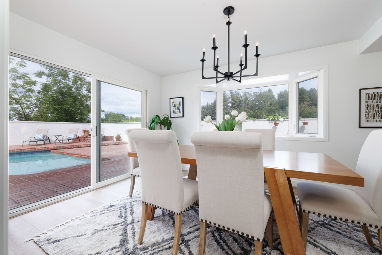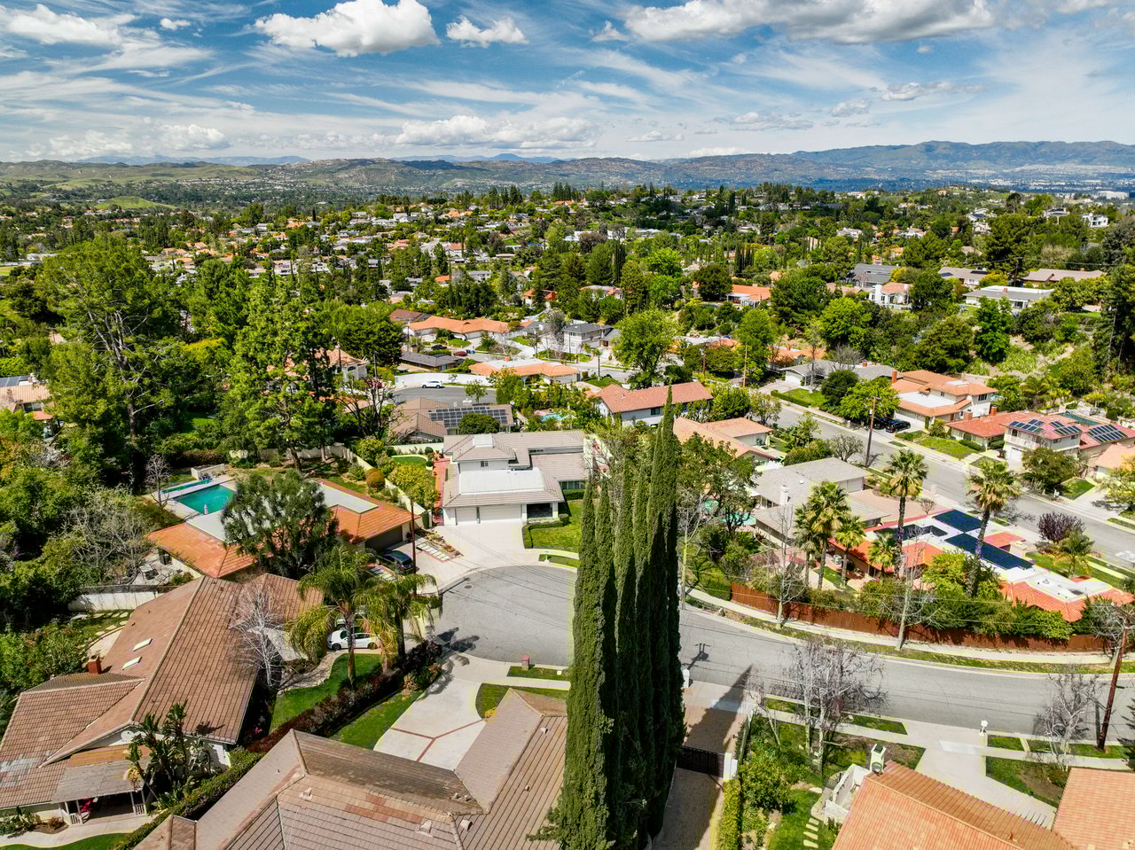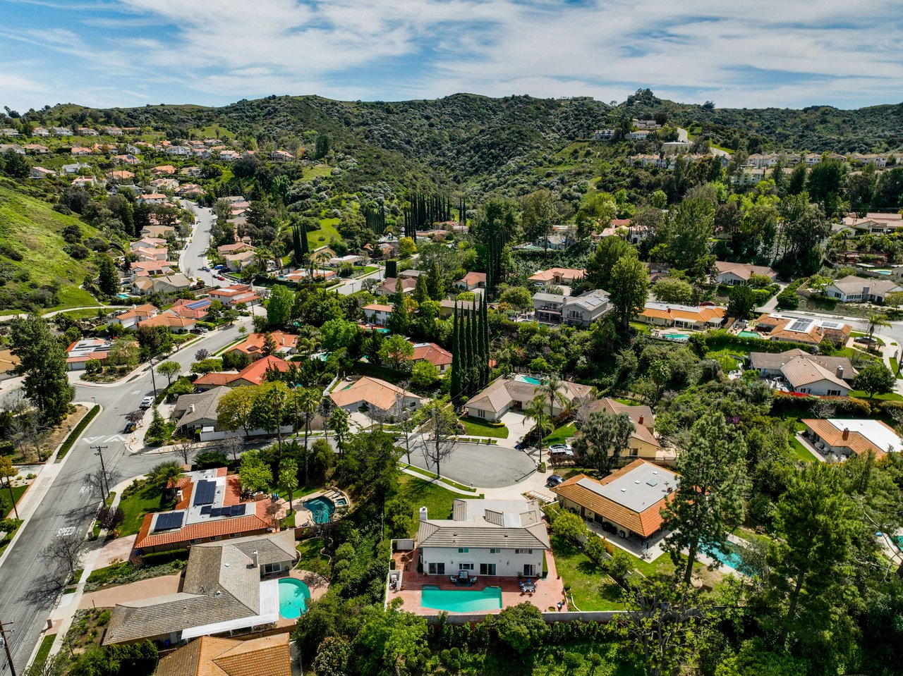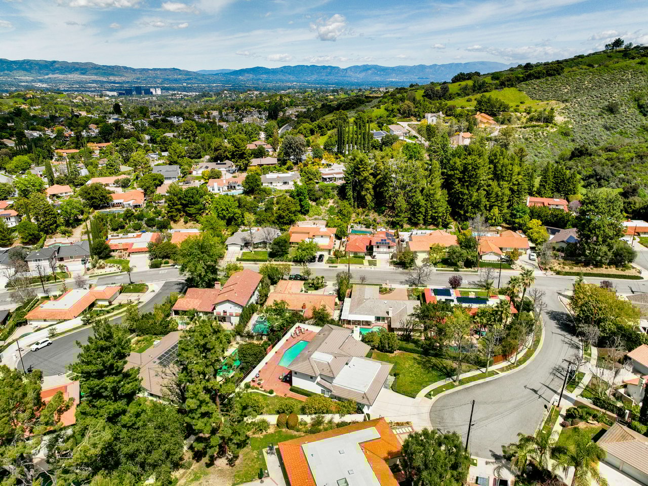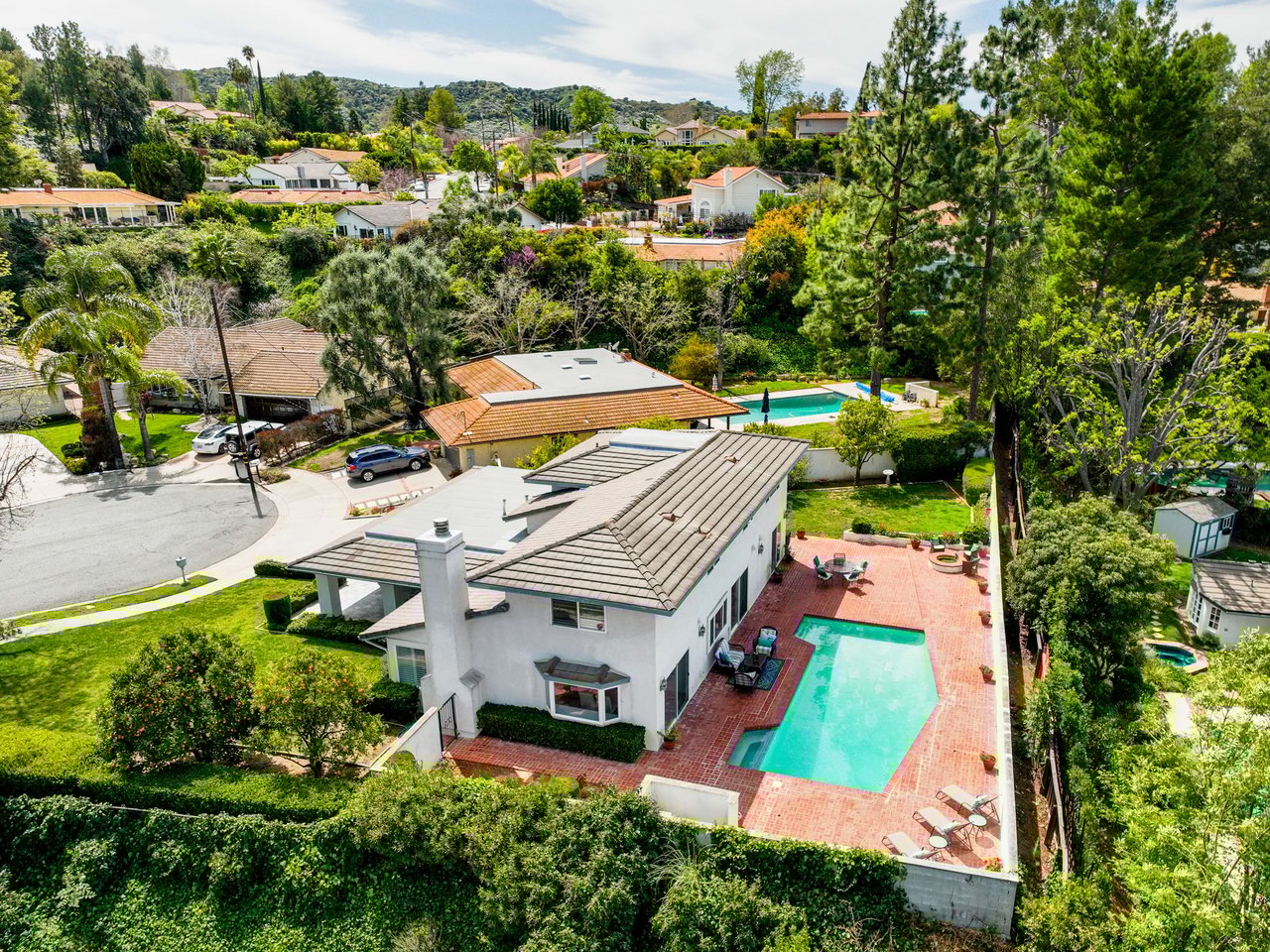 Back on Market - Price reduction is due to a discrepancy on the Sq. Ft. of the property. This storybook property nestles at the end of a cul-de-sac in desirable Greater Mulwood, Mulholland Heights adjacent. Overlooking the blooming Santa Monica mountains, this traditional beauty welcomes you home from every angle. With 6 spacious bedrooms & 3 baths, this two-story 3,695 sq ft pool home offers an open floor plan, recessed lighting, double-pane windows, new wood-like flooring, & indoor-outdoor living spaces that embody the ease and warmth of the California lifestyle. Custom nooks and built-ins add charm and originality throughout. Downstairs, the grand living room features a stunning gas fireplace, lending warmth and comfort to the adjoining formal dining room, ideal for all your entertaining needs. Windows & sliding glass doors line the back wall of most of the downstairs, allowing light to pour in from the serene private yard. Two of the six bedrooms are conveniently located on the lower level, along with an indoor laundry room. The bright & inviting kitchen opens to the family room & overlooks the private backyard with its sparkling pool and fragrant fruit trees. Upstairs, four additional bedrooms, including the master retreat, all offer privacy & breathtaking mountain views. The ensuite master bathroom features dual sinks, makeup vanity, & extra cabinetry. Conveniently located near the coveted Las Virgenes schools, the 101 freeway, great shopping, fabulous restaurants, the Calabasas Commons, Calabasas Country Club, & just 25 minutes to the beach! Act fast! This dreamy home won't last long!