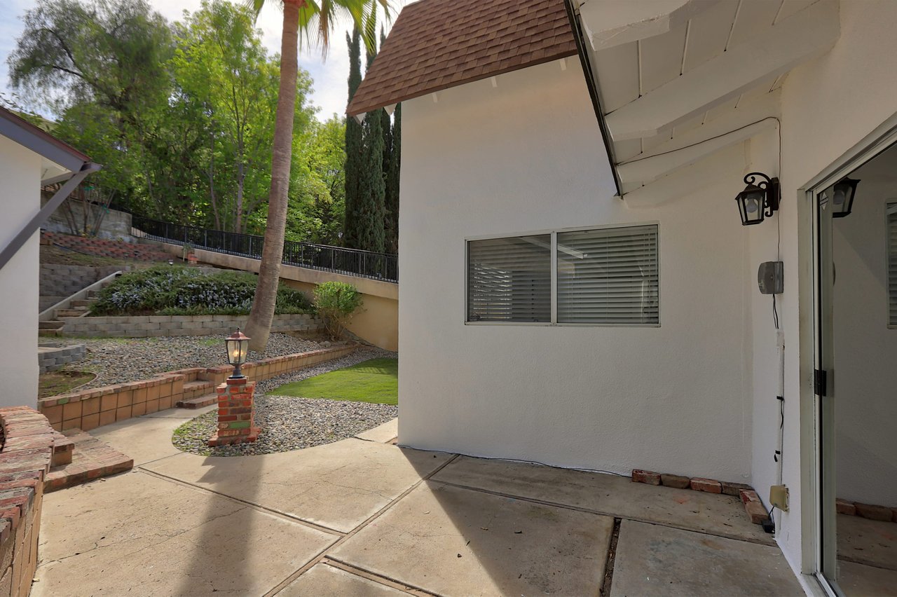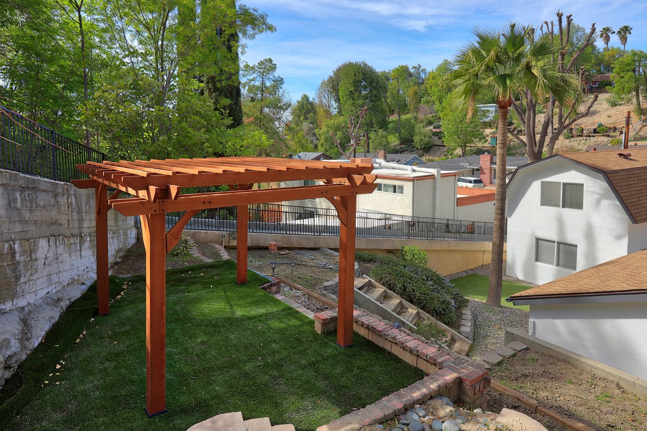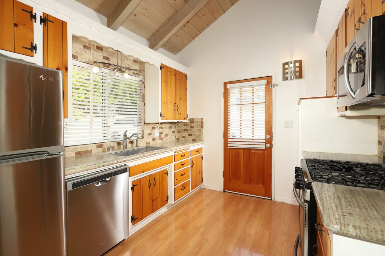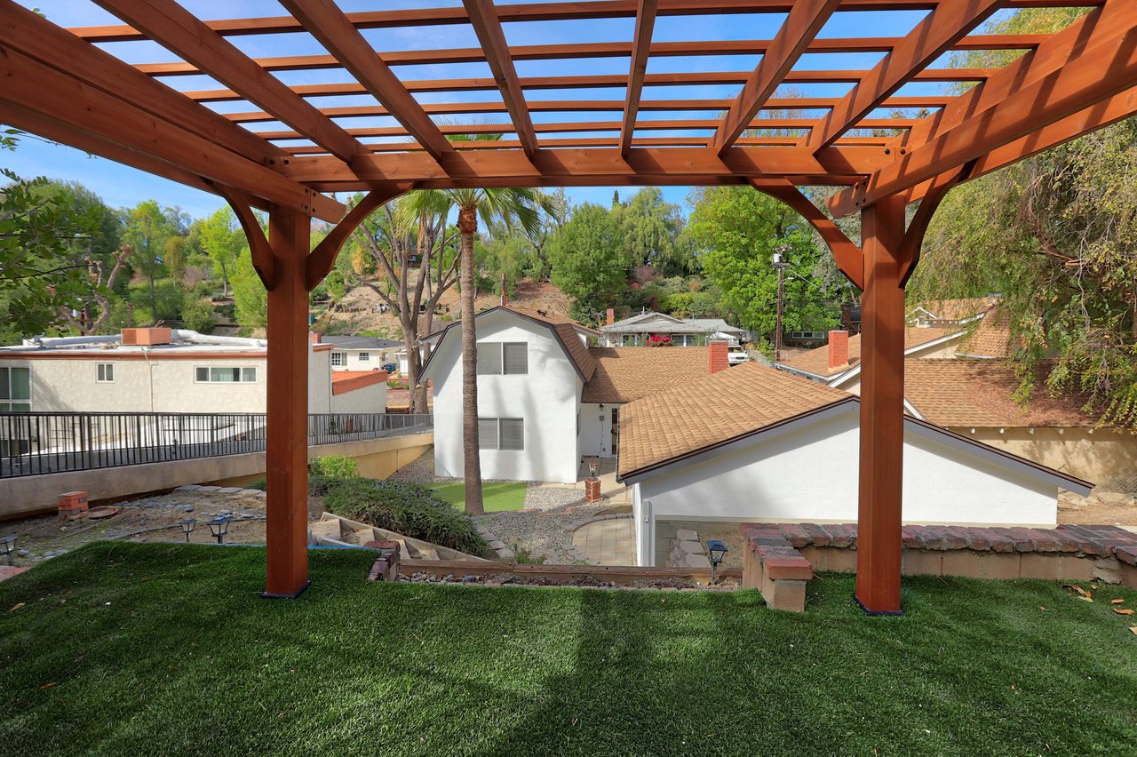 Wonderful Woodland Hills home in a most desired Woodland Hills area. Located well south of Ventura blvd on a gently curving street sits this spacious and charming home with Cottage style architecture. Offering over 1400 sq ft of living space this home has all that character and charm Woodland Hills is known for. Vaulted Tongue and Groove open beamed ceilings, wood burning fireplace and large living spaces make this floorplan functional and inviting. Nicely updated kitchen with granite counters and knotty pine cabinets. Additionally There is a downstairs bedroom and bath. Upstairs there are two more generous bedrooms and a full bath between them. The multi level terraced backyard is a great place to enjoy the outdoors.