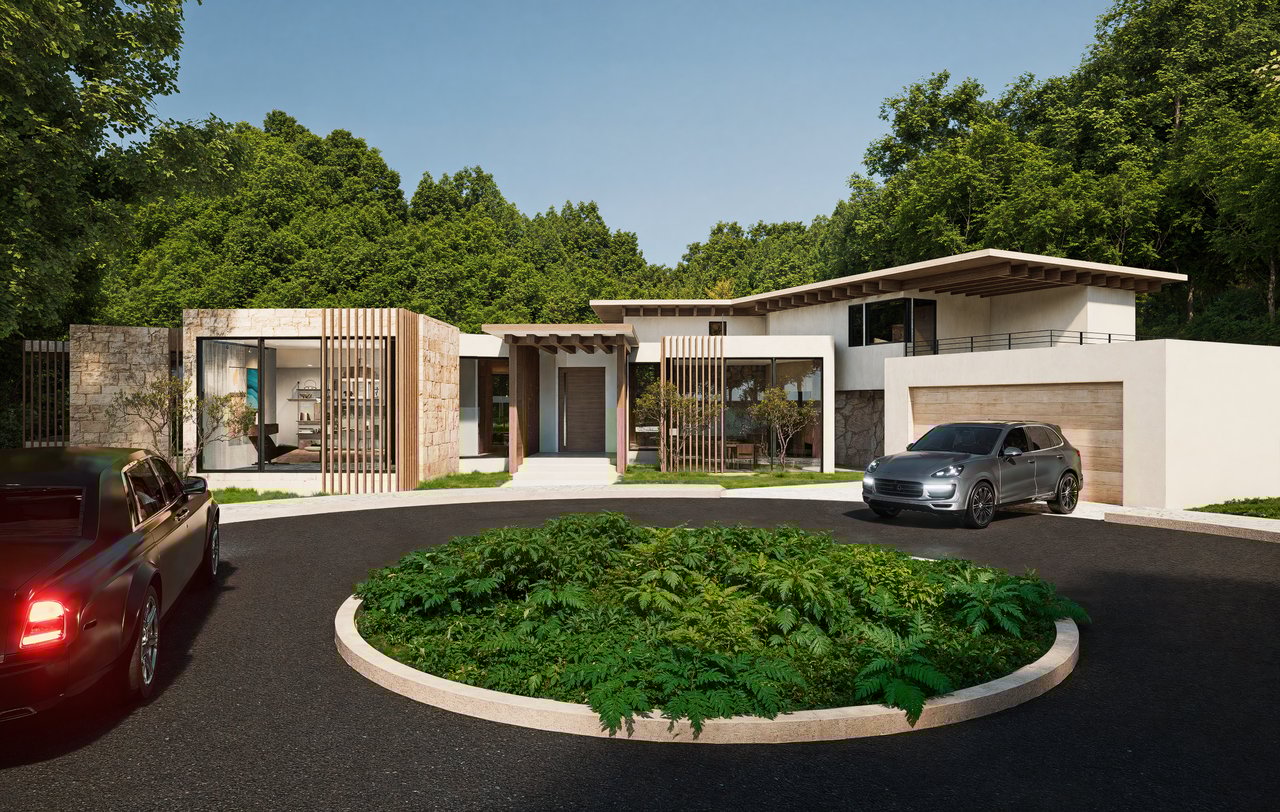 The layout will feature a well-appointed kitchen open to a large-scale great room, along with a wine room, private theater, fitness center, and multiple flexible living areas. Retractable glass walls will open to a resort-style pool and lounge, while details like interior gardens, floating staircases, and organic finishes will ground the modern design in its natural setting.
