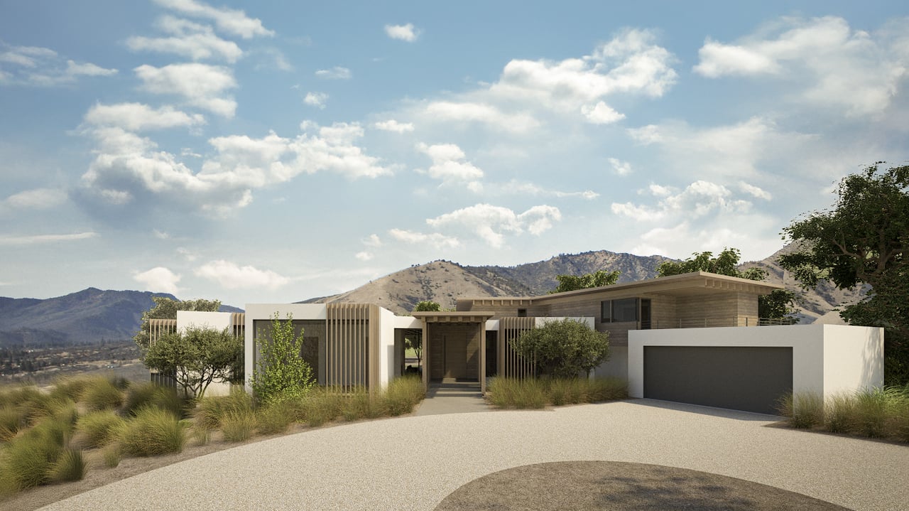 The plans for the home will include approximately 9,000 sq. ft. of thoughtfully designed living space by the award-winning John Andrews Group, including a full basement level. The architecture is centered around seamless indoor/outdoor living, with clean modern lines, warm natural materials, and expansive glass walls that frame the surrounding landscape.