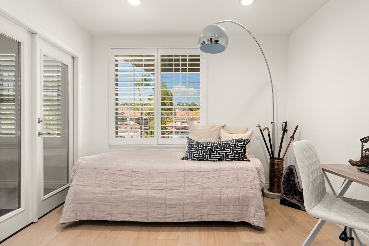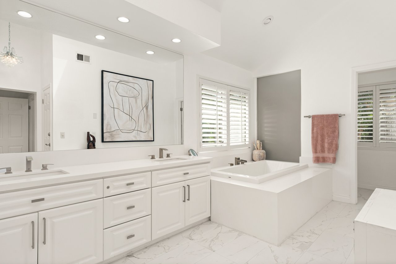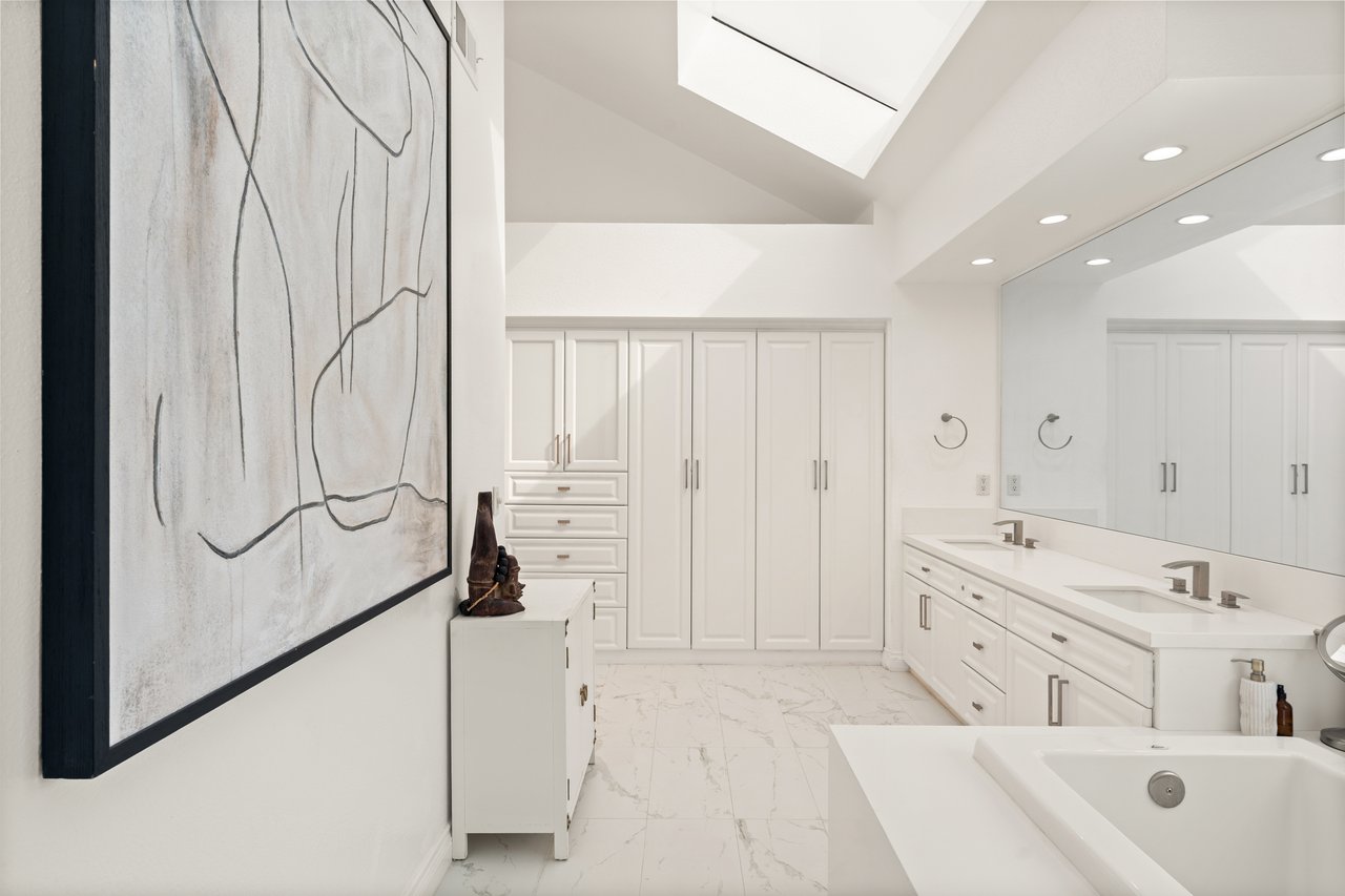 Additional highlights include plantation shutters throughout and a fully paid-off solar power system for exceptional energy efficiency. Ideally located just steps from Bay Laurel Elementary and minutes from The Commons at Calabasas, this light-filled home perfectly balances modern luxury, privacy, and an enviable location within one of Calabasas's most desirable gated communities.