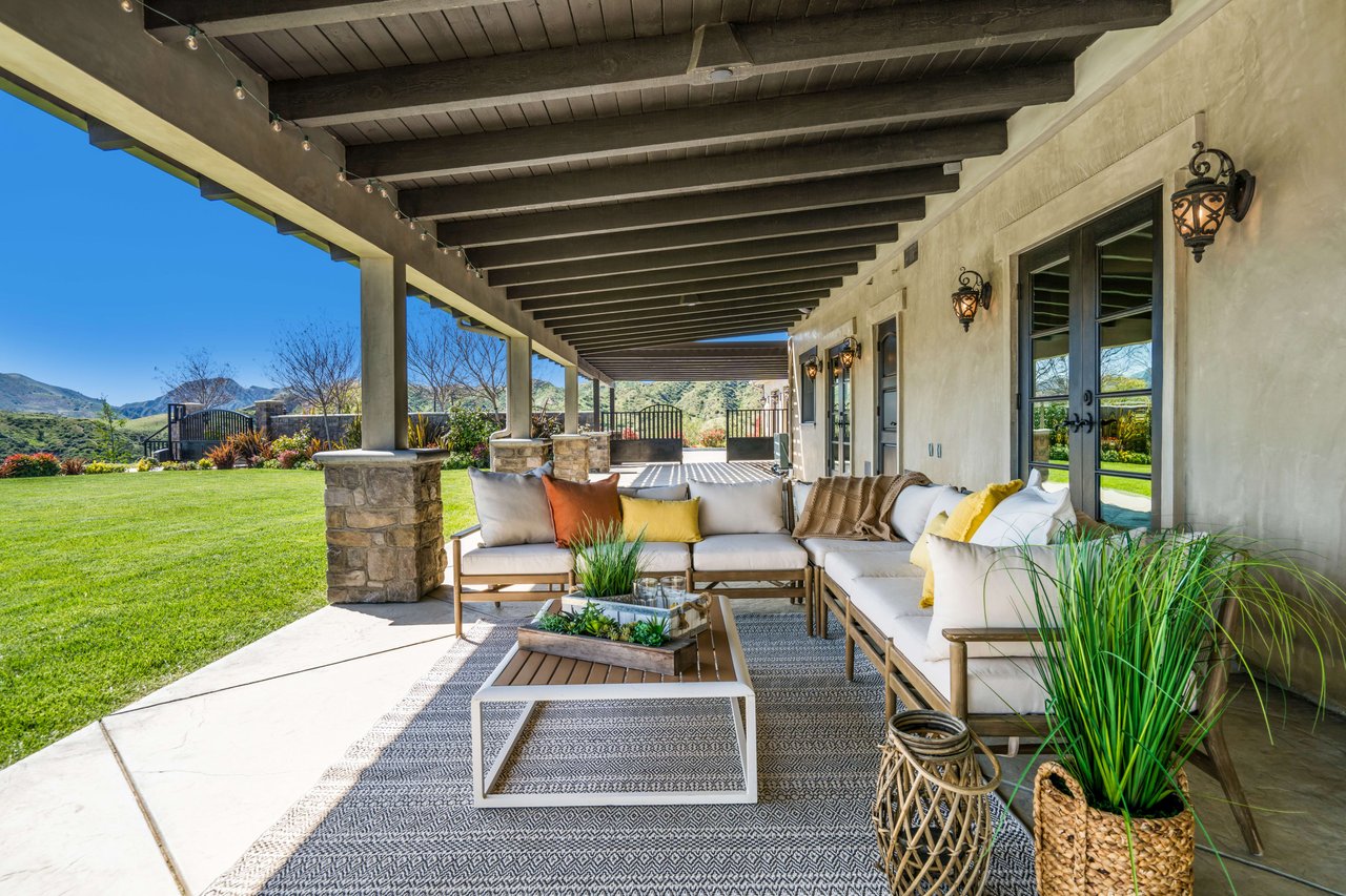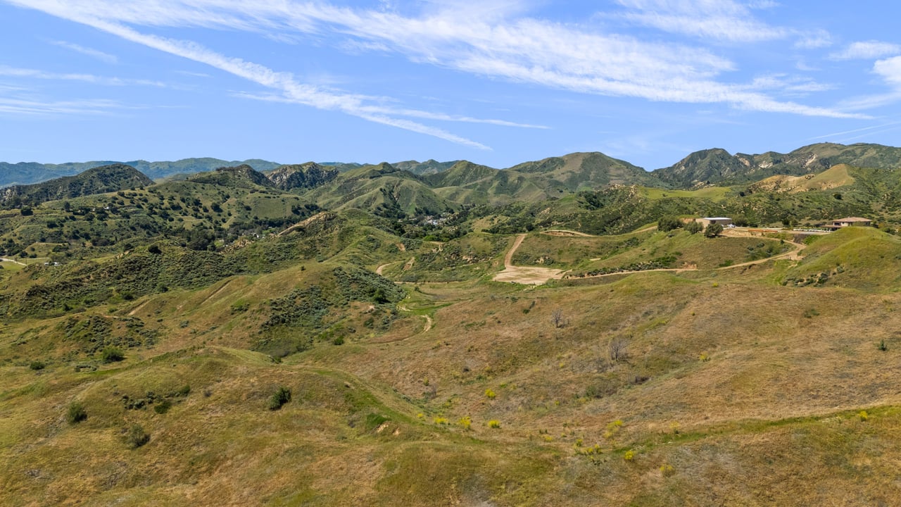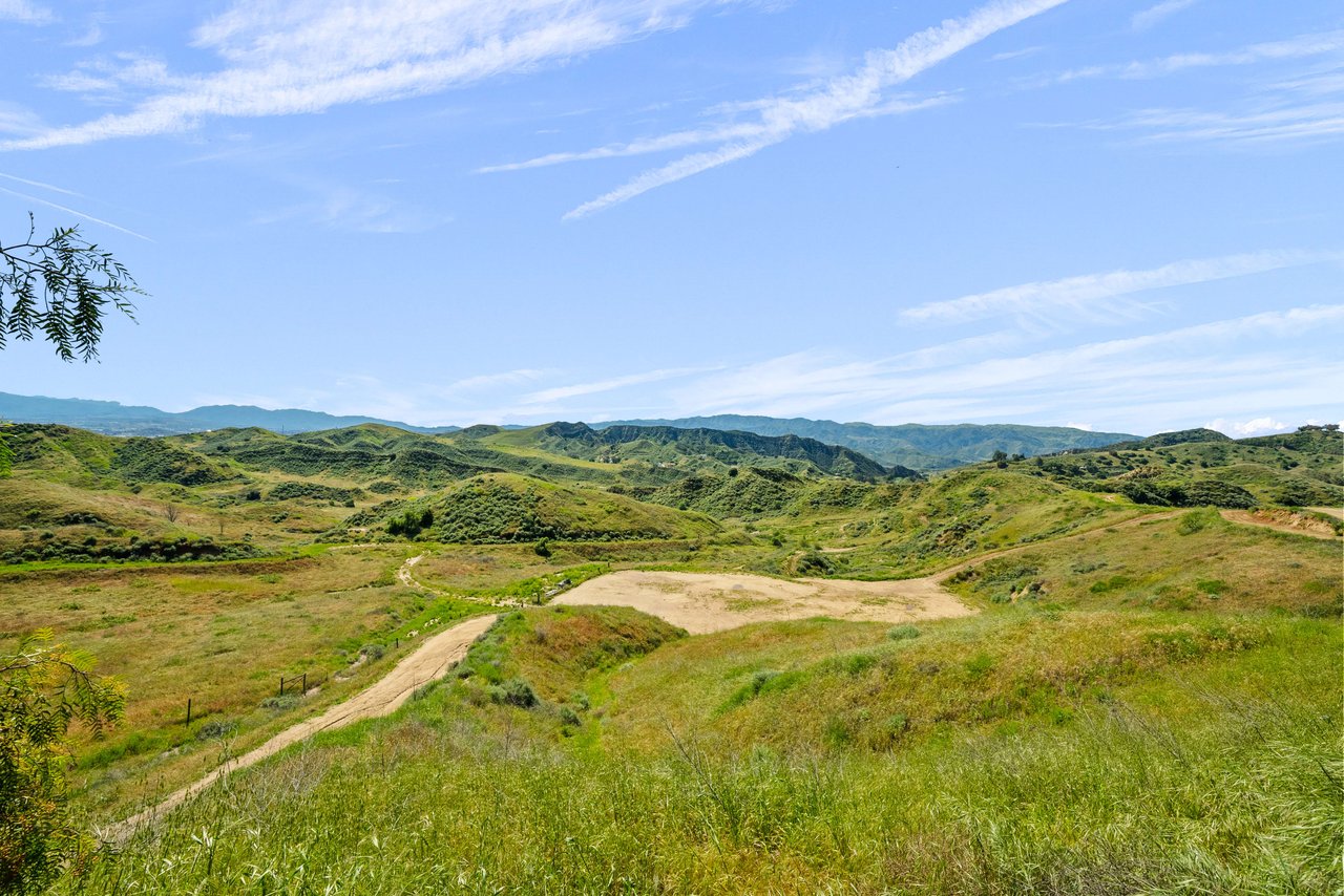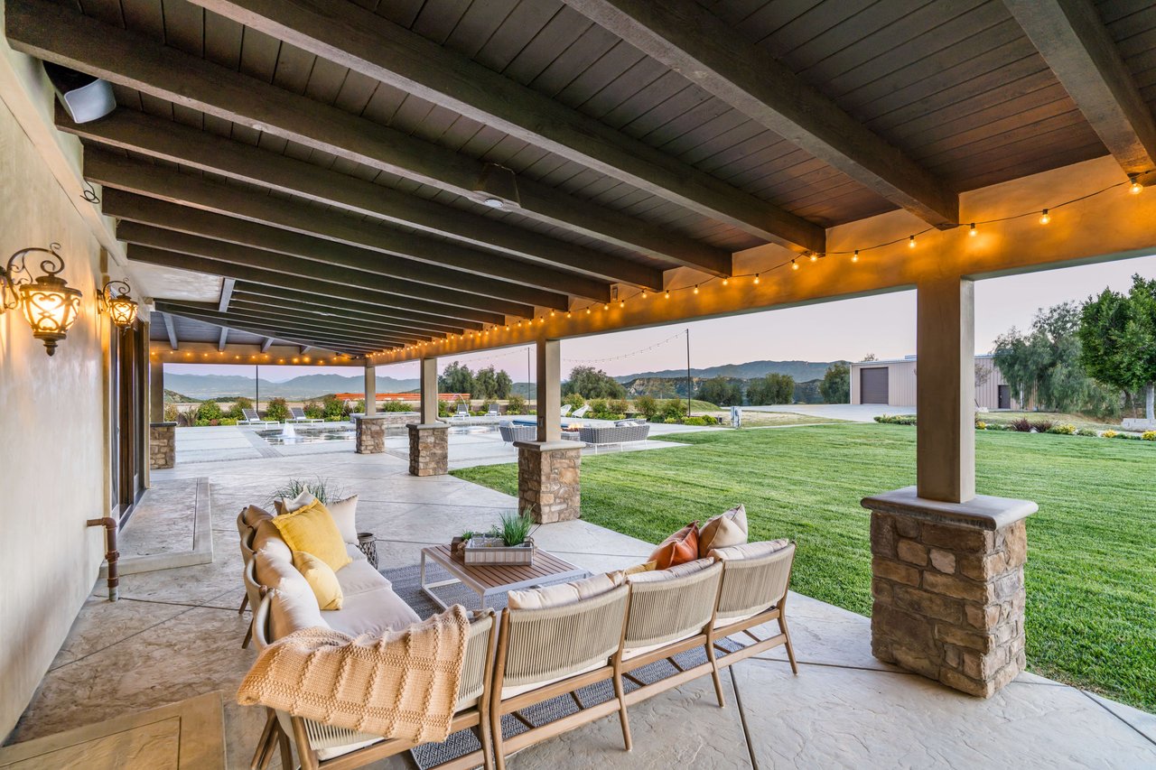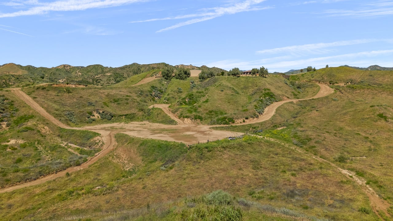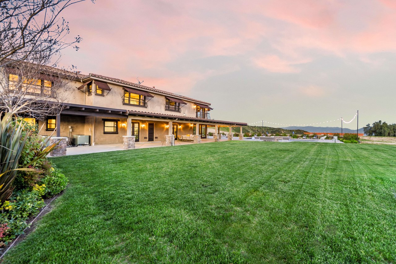 Rare opportunity to own 22-acre ridgetop luxury residence. A pristine 5-bedroom, 5-bath, + office home is positioned on a 3.5-acre pad, combining residential luxury with the spirit of adventurous living. Located atop a private road, this flag-lot estate offers tranquility and panoramic views. Private, double-gated entry. The estate includes 3-car finished garage w/laundry room, separate 2400 sf workshop with space for RVs, boats, motorcycles; motocross rally track; secluded location has been used for feature films and Emmy award-winning tv shows. Grand foyer, arched stone hallway leads to the family room, with panoramic views, fireside living space. Oversized sliding glass doors seamlessly integrate indoors/outdoors, open to patio dining, entertaining space. Rich mahogany windows and doors throughout. Chef s kitchen provides ultra-premium Wolf and Sub-Zero appliances, custom cabinetry, walk-in pantry. Huge main floor primary suite featuring walk-in closets, luxury bathroom with Italian Noce tile, and French doors that lead out to the patio. Also on the main floor: stylish office with custom built-ins, French doors to the wrap-around patio. Majestic staircase ascends to the 2nd floor mezzanine. 700+ sf loft area w/built-in cabinetry provides ample room for a media room, library, +/or home gym. Primary suite is replete with lavish bathroom, whirlpool bath, separate glassed-in double shower, walk-in closets, W/D, and French doors to dual balconies, overlooking sunsets, pool, and city lights. Three additional upstairs bedrooms and 2 baths provide privacy, comfort. Outdoors, a sparkling saltwater pool awaits, built-in fire pit, and 1200+ sf covered patio. An idyllic retreat for relaxation or entertaining. Located in LA County entertainment industry location zone, minutes to Santa Clarita s town center or Castaic Lake, half-hour to Ventura beach. Freeway access to Los Angeles. Abutting 42-acre parcel available for purchase separately, which could bring the total acreage 60+ acres.
