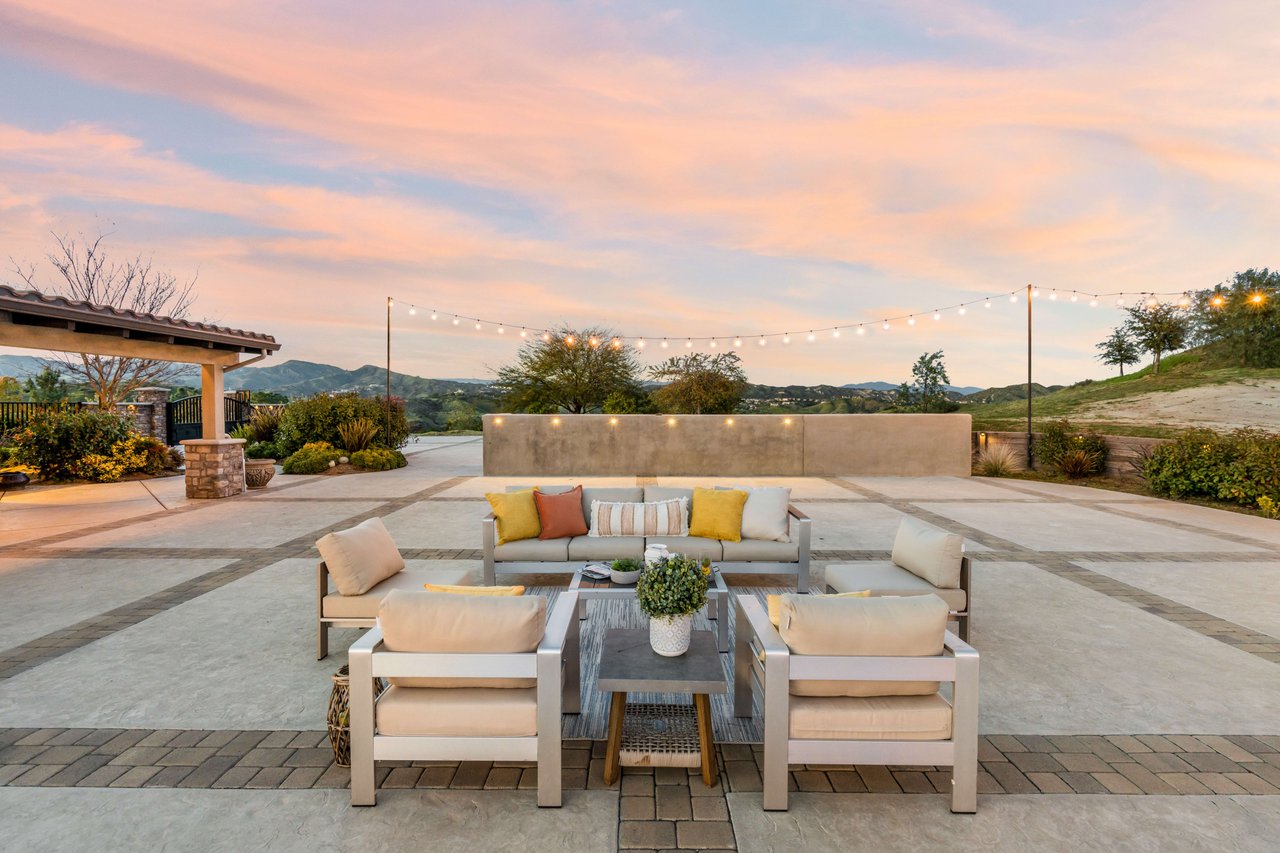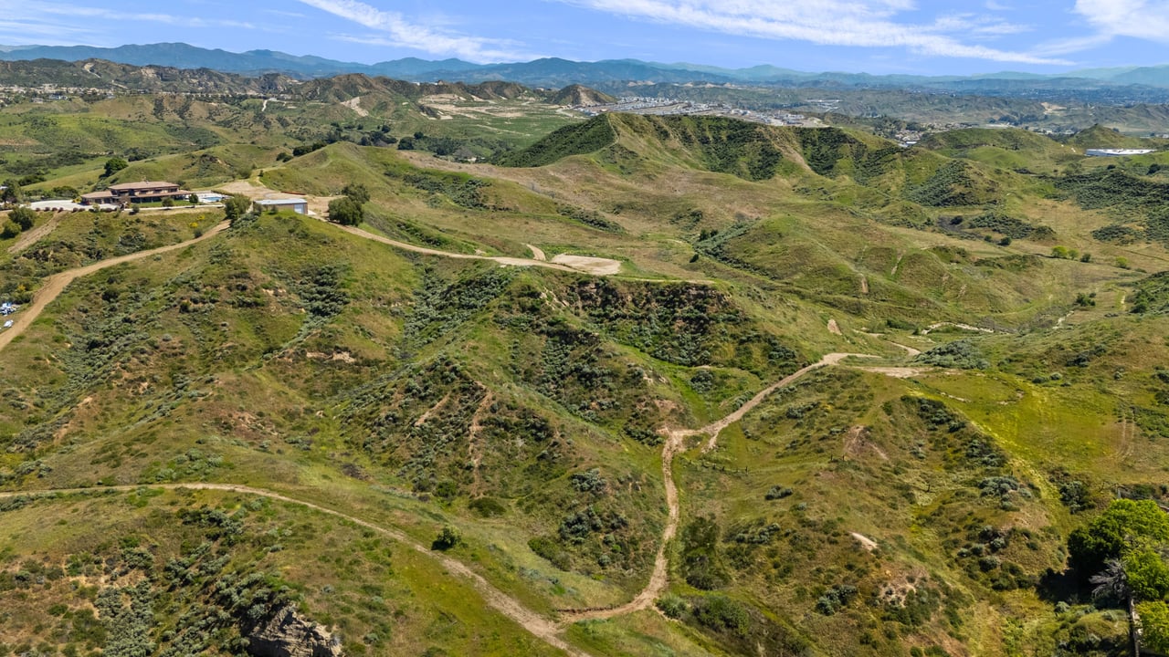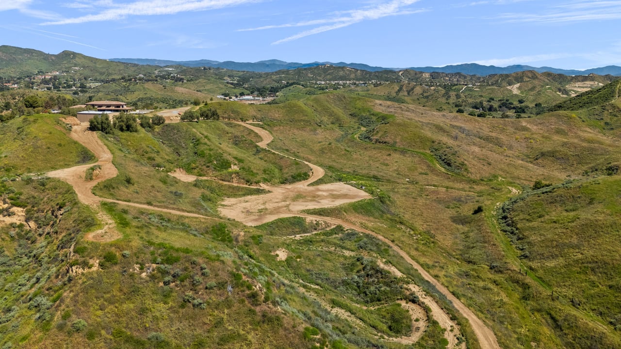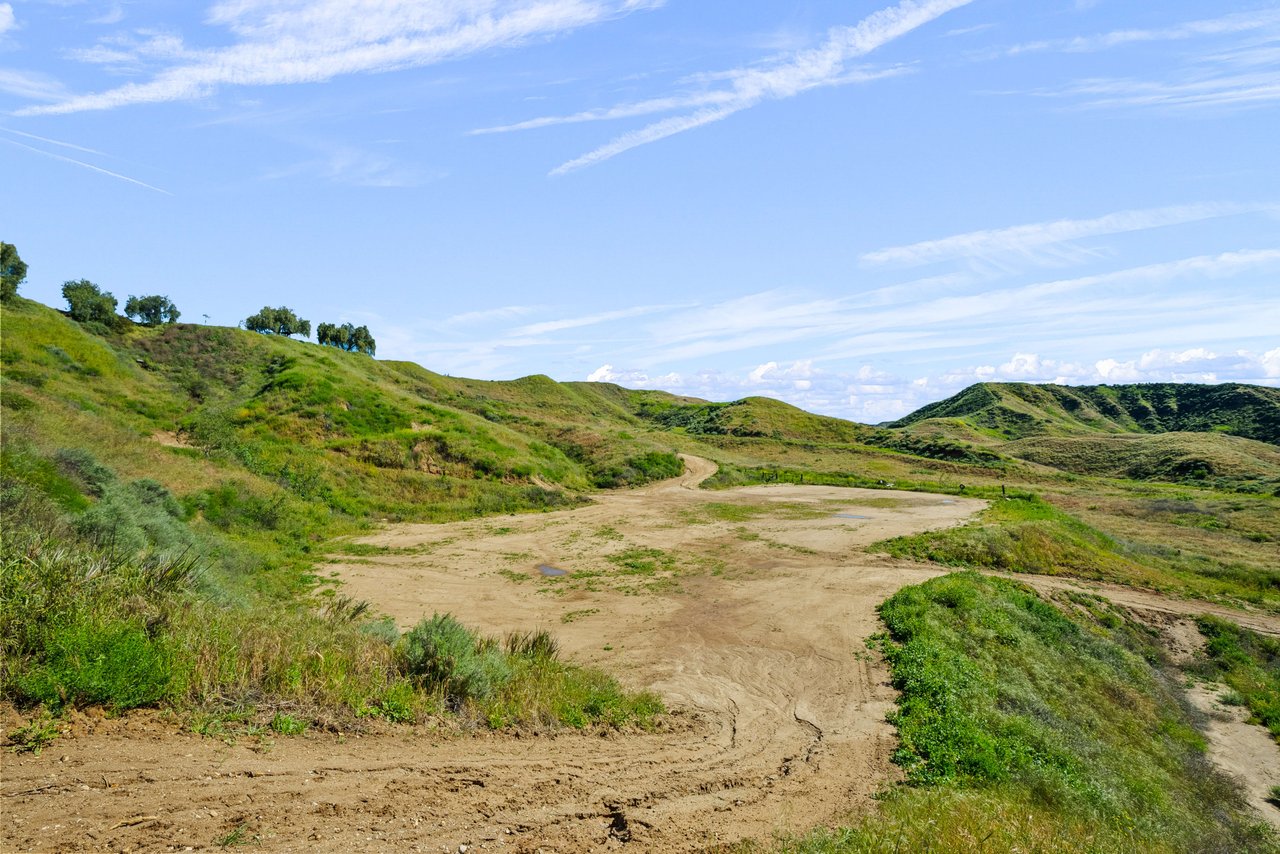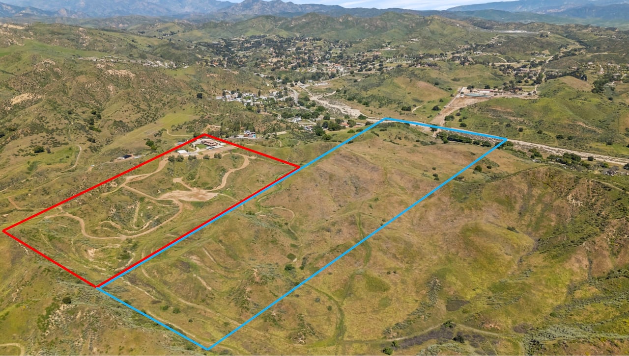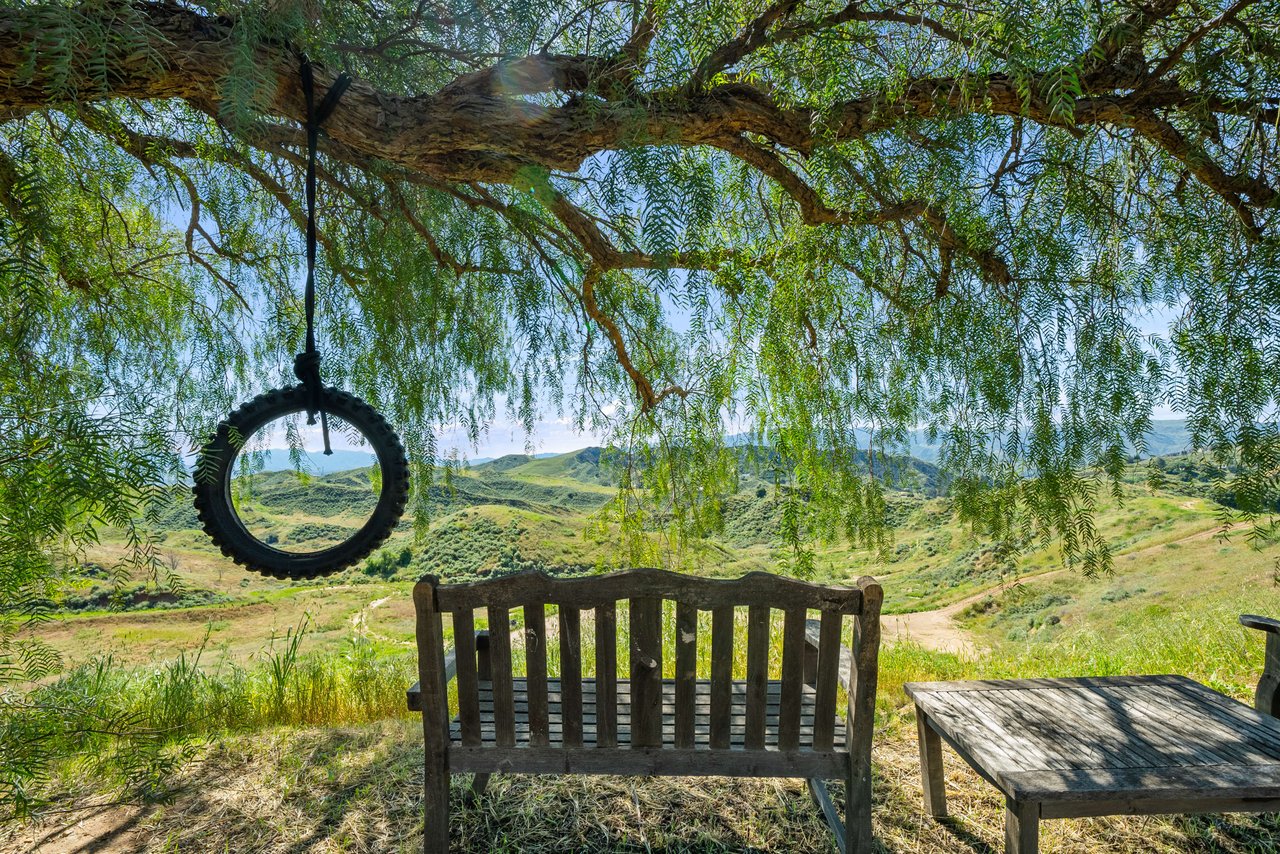 Rare opportunity to own 22-acre ridgetop luxury residence. A pristine 5-bedroom, 5-bath, + office home is positioned on a 3.5-acre pad, combining residential luxury with the spirit of adventurous living. Located atop a private road, this flag-lot estate offers tranquility and panoramic views. Private, double-gated entry. The estate includes 3-car finished garage w/laundry room, separate 2400 sf workshop with space for RVs, boats, motorcycles; motocross rally track; secluded location has been used for feature films and Emmy award-winning tv shows. Grand foyer, arched stone hallway leads to the family room, with panoramic views, fireside living space. Oversized sliding glass doors seamlessly integrate indoors/outdoors, open to patio dining, entertaining space. Rich mahogany windows and doors throughout. Chef s kitchen provides ultra-premium Wolf and Sub-Zero appliances, custom cabinetry, walk-in pantry. Huge main floor primary suite featuring walk-in closets, luxury bathroom with Italian Noce tile, and French doors that lead out to the patio. Also on the main floor: stylish office with custom built-ins, French doors to the wrap-around patio. Majestic staircase ascends to the 2nd floor mezzanine. 700+ sf loft area w/built-in cabinetry provides ample room for a media room, library, +/or home gym. Primary suite is replete with lavish bathroom, whirlpool bath, separate glassed-in double shower, walk-in closets, W/D, and French doors to dual balconies, overlooking sunsets, pool, and city lights. Three additional upstairs bedrooms and 2 baths provide privacy, comfort. Outdoors, a sparkling saltwater pool awaits, built-in fire pit, and 1200+ sf covered patio. An idyllic retreat for relaxation or entertaining. Located in LA County entertainment industry location zone, minutes to Santa Clarita s town center or Castaic Lake, half-hour to Ventura beach. Freeway access to Los Angeles. Abutting 42-acre parcel available for purchase separately, which could bring the total acreage 60+ acres.