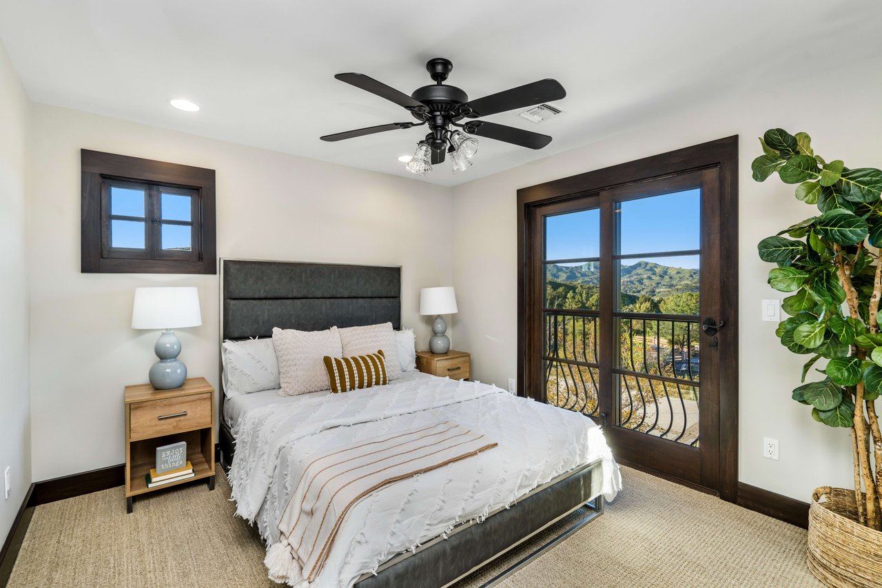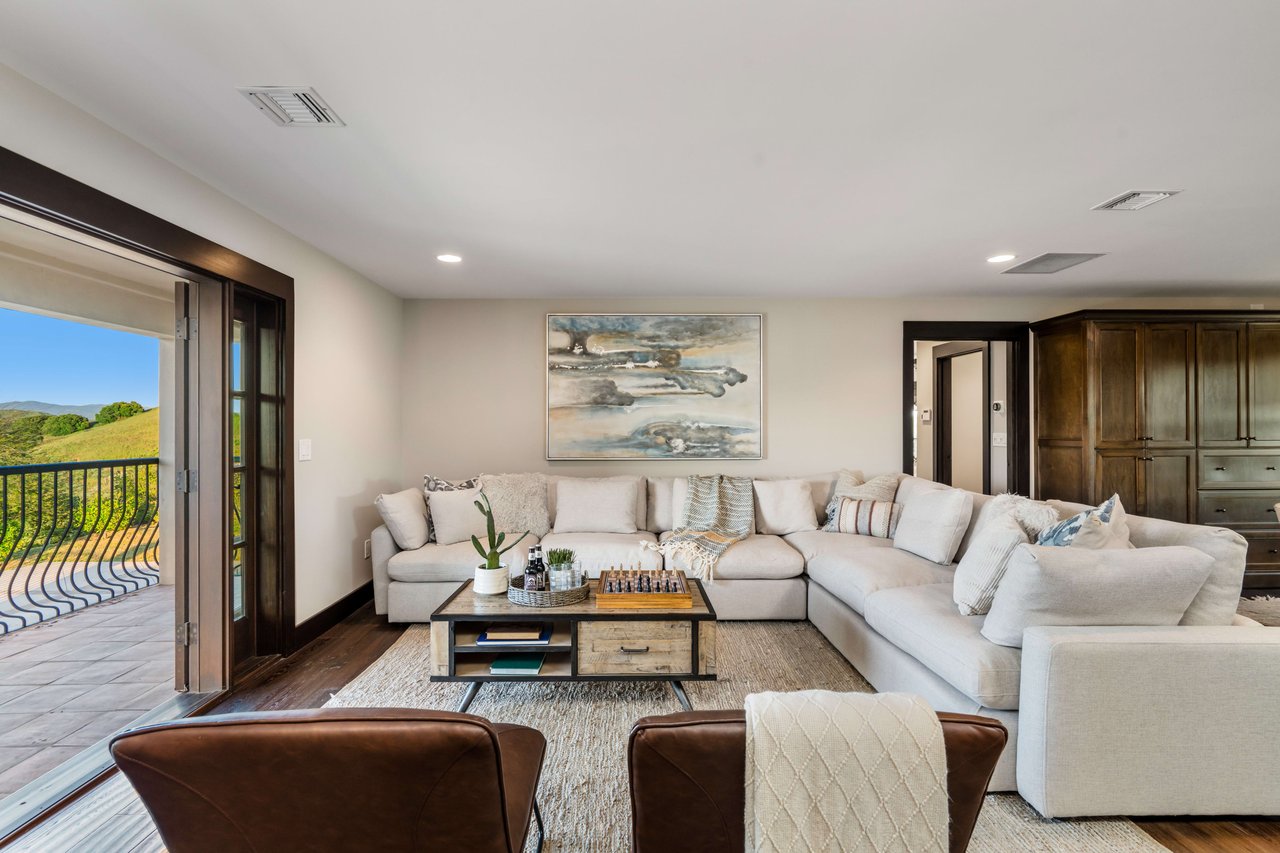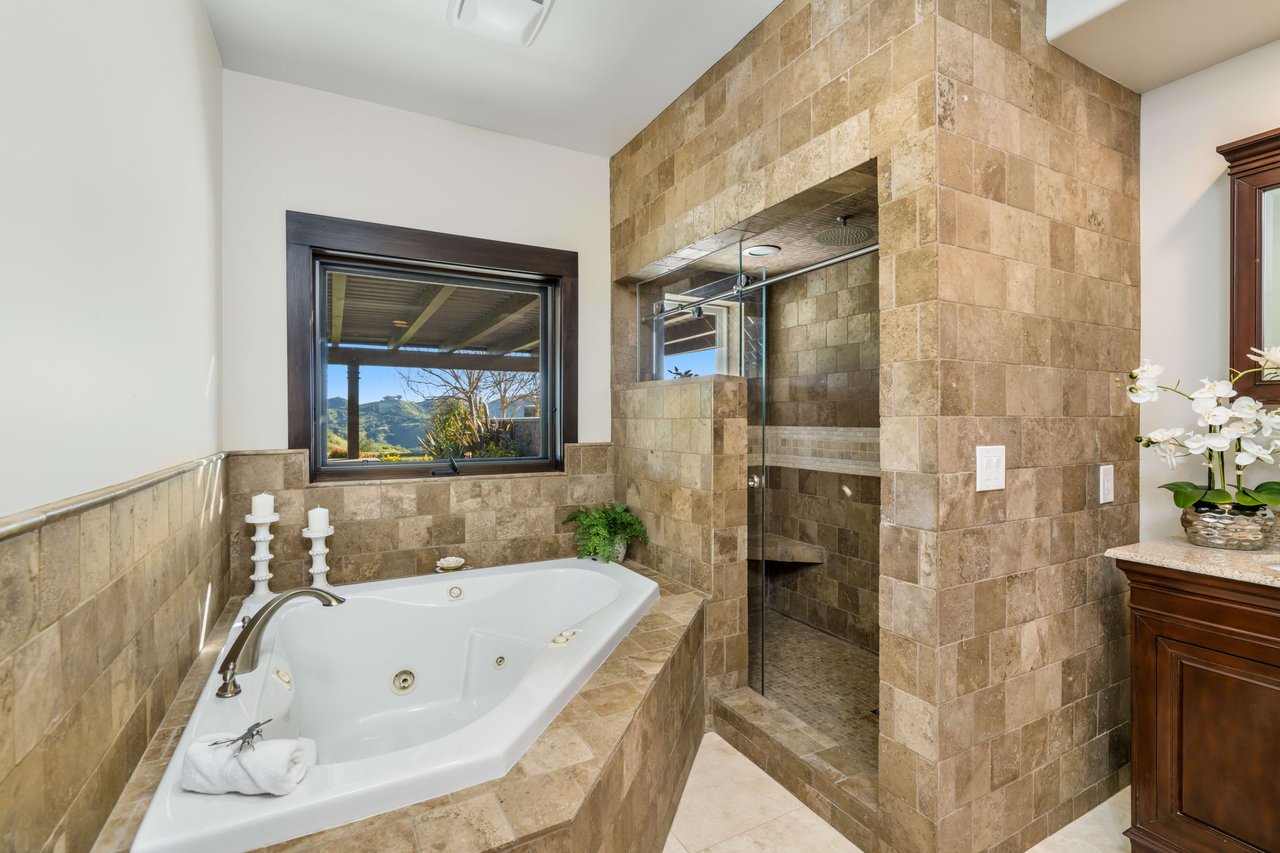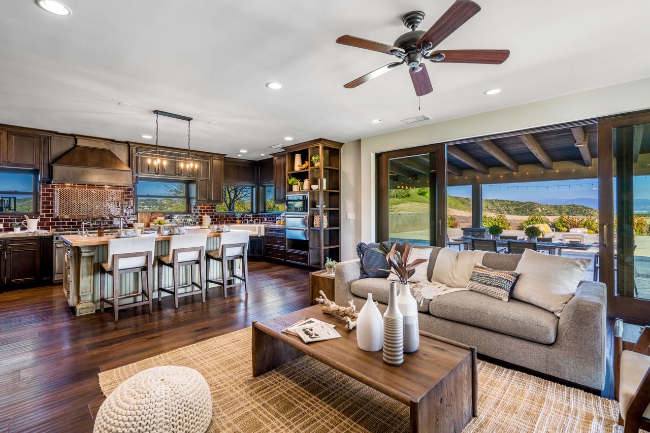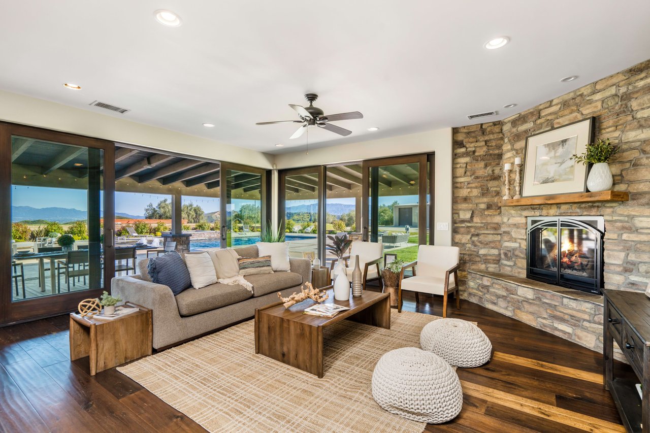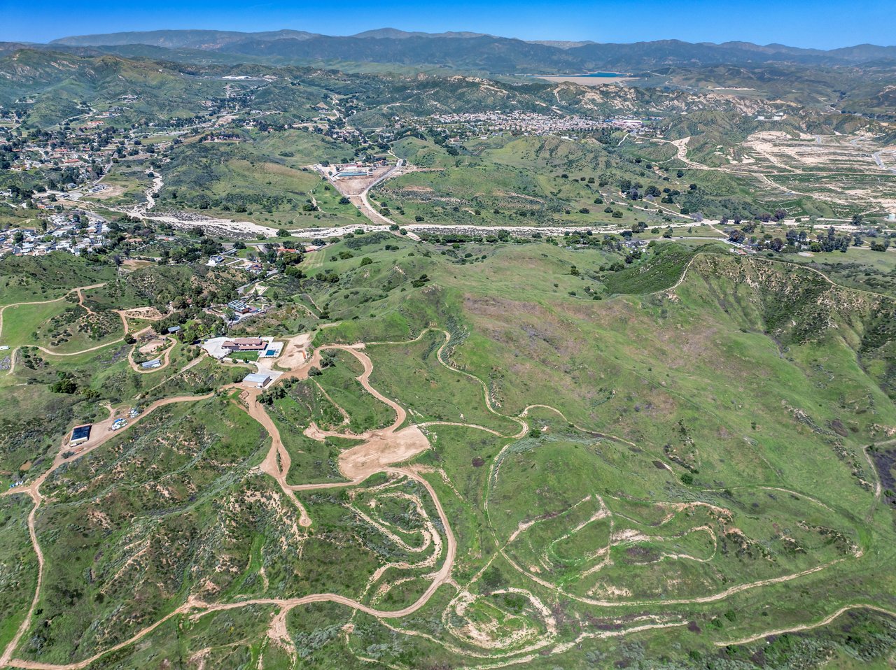 Rare opportunity to own 22-acre ridgetop luxury residence. A pristine 5-bedroom, 5-bath, + office home is positioned on a 3.5-acre pad, combining residential luxury with the spirit of adventurous living. Located atop a private road, this flag-lot estate offers tranquility and panoramic views. Private, double-gated entry. The estate includes 3-car finished garage w/laundry room, separate 2400 sf workshop with space for RVs, boats, motorcycles; motocross rally track; secluded location has been used for feature films and Emmy award-winning tv shows. Grand foyer, arched stone hallway leads to the family room, with panoramic views, fireside living space. Oversized sliding glass doors seamlessly integrate indoors/outdoors, open to patio dining, entertaining space. Rich mahogany windows and doors throughout. Chef s kitchen provides ultra-premium Wolf and Sub-Zero appliances, custom cabinetry, walk-in pantry. Huge main floor primary suite featuring walk-in closets, luxury bathroom with Italian Noce tile, and French doors that lead out to the patio. Also on the main floor: stylish office with custom built-ins, French doors to the wrap-around patio. Majestic staircase ascends to the 2nd floor mezzanine. 700+ sf loft area w/built-in cabinetry provides ample room for a media room, library, +/or home gym. Primary suite is replete with lavish bathroom, whirlpool bath, separate glassed-in double shower, walk-in closets, W/D, and French doors to dual balconies, overlooking sunsets, pool, and city lights. Three additional upstairs bedrooms and 2 baths provide privacy, comfort. Outdoors, a sparkling saltwater pool awaits, built-in fire pit, and 1200+ sf covered patio. An idyllic retreat for relaxation or entertaining. Located in LA County entertainment industry location zone, minutes to Santa Clarita s town center or Castaic Lake, half-hour to Ventura beach. Freeway access to Los Angeles. Abutting 42-acre parcel available for purchase separately, which could bring the total acreage 60+ acres.