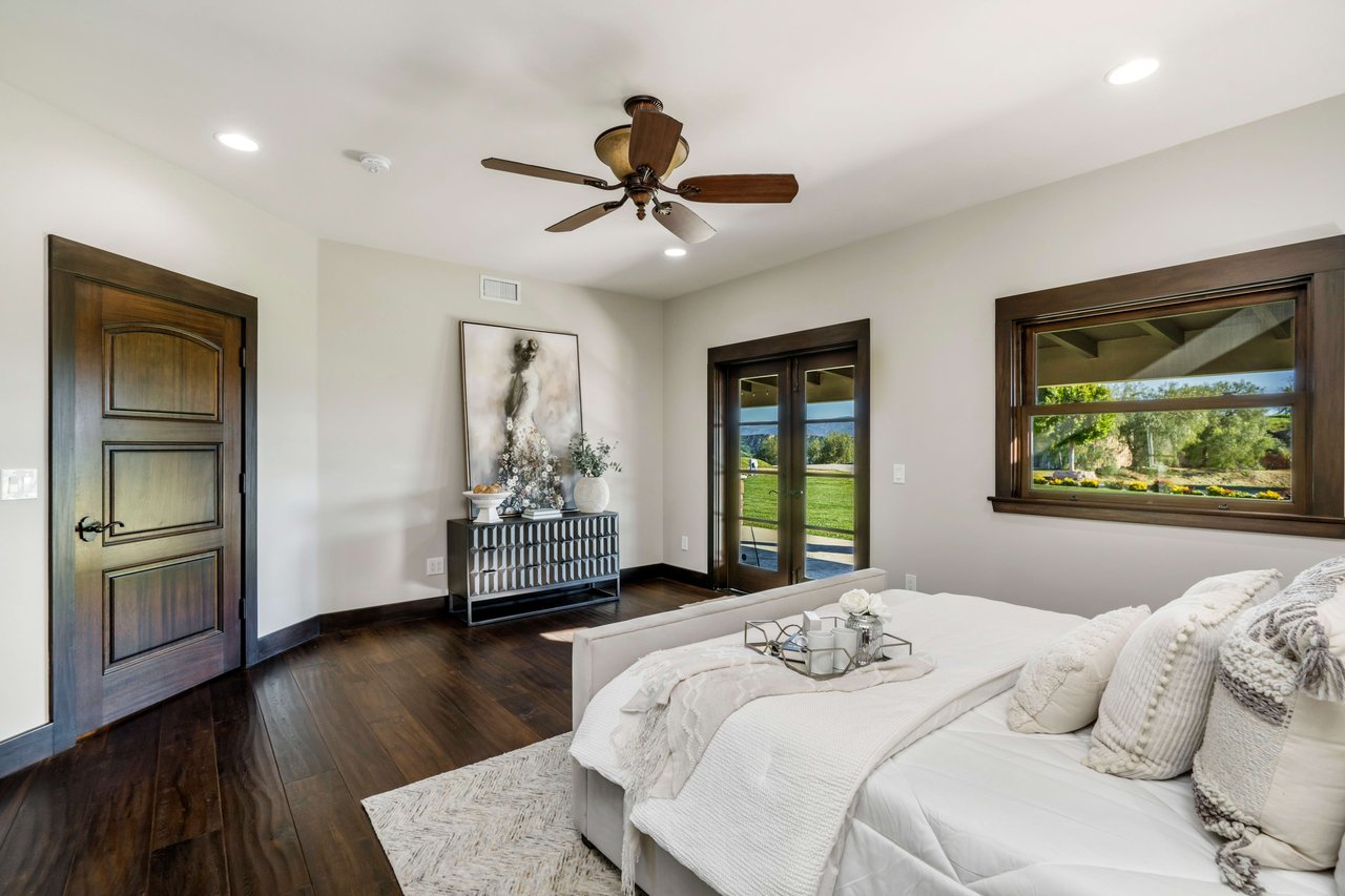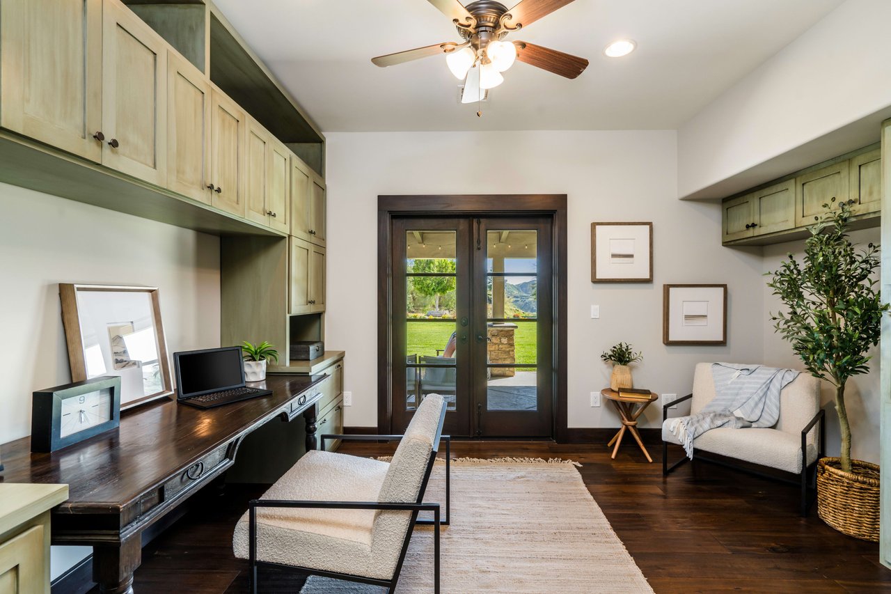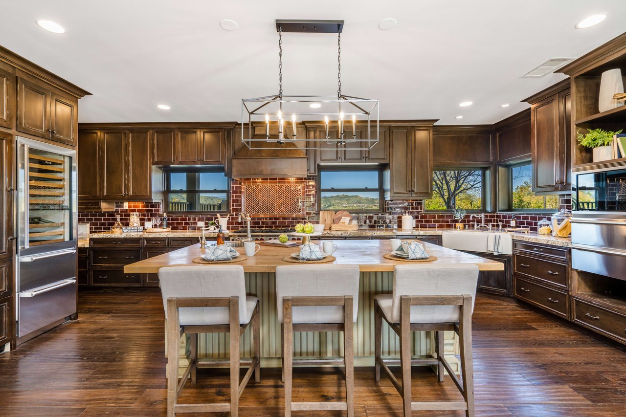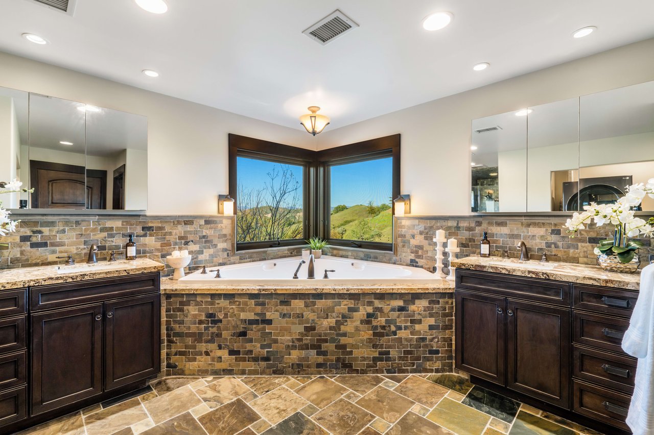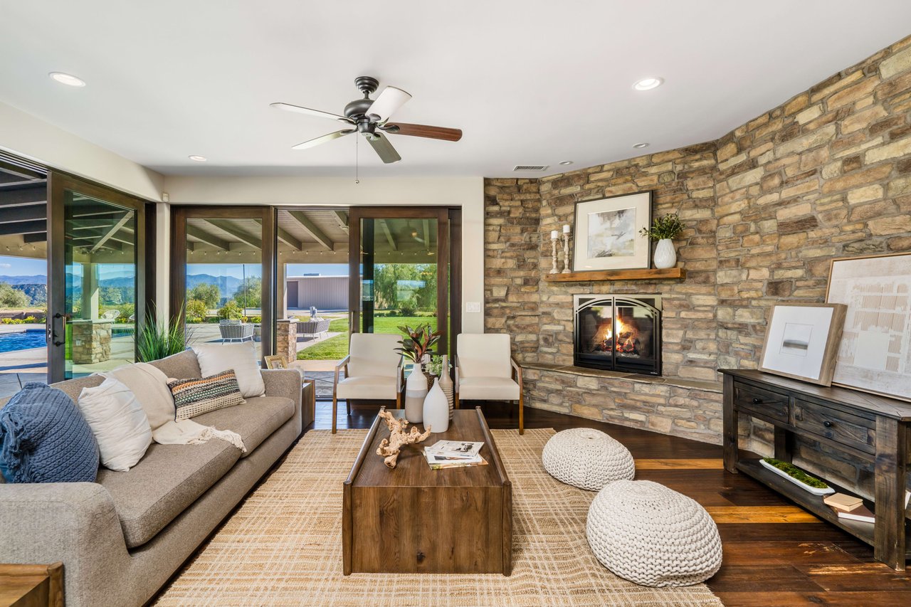 Rare opportunity to own 22-acre ridgetop luxury residence. A pristine 5-bedroom, 5-bath, + office home is positioned on a 3.5-acre pad, combining residential luxury with the spirit of adventurous living. Located atop a private road, this flag-lot estate offers tranquility and panoramic views. Private, double-gated entry. The estate includes 3-car finished garage w/laundry room, separate 2400 sf workshop with space for RVs, boats, motorcycles; motocross rally track; secluded location has been used for feature films and Emmy award-winning tv shows. Grand foyer, arched stone hallway leads to the family room, with panoramic views, fireside living space. Oversized sliding glass doors seamlessly integrate indoors/outdoors, open to patio dining, entertaining space. Rich mahogany windows and doors throughout. Chef s kitchen provides ultra-premium Wolf and Sub-Zero appliances, custom cabinetry, walk-in pantry. Huge main floor primary suite featuring walk-in closets, luxury bathroom with Italian Noce tile, and French doors that lead out to the patio. Also on the main floor: stylish office with custom built-ins, French doors to the wrap-around patio. Majestic staircase ascends to the 2nd floor mezzanine. 700+ sf loft area w/built-in cabinetry provides ample room for a media room, library, +/or home gym. Primary suite is replete with lavish bathroom, whirlpool bath, separate glassed-in double shower, walk-in closets, W/D, and French doors to dual balconies, overlooking sunsets, pool, and city lights. Three additional upstairs bedrooms and 2 baths provide privacy, comfort. Outdoors, a sparkling saltwater pool awaits, built-in fire pit, and 1200+ sf covered patio. An idyllic retreat for relaxation or entertaining. Located in LA County entertainment industry location zone, minutes to Santa Clarita s town center or Castaic Lake, half-hour to Ventura beach. Freeway access to Los Angeles. Abutting 42-acre parcel available for purchase separately, which could bring the total acreage 60+ acres.