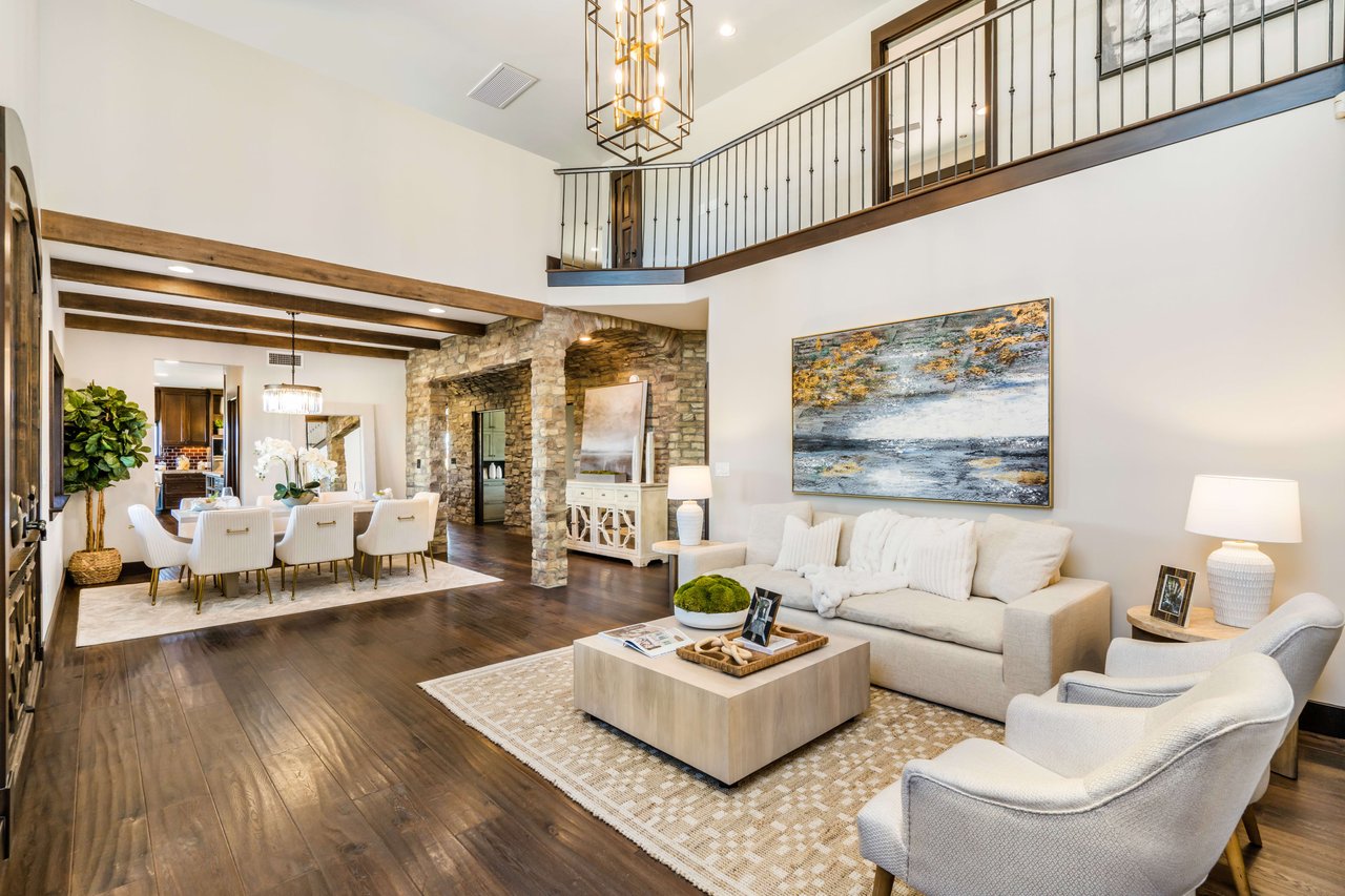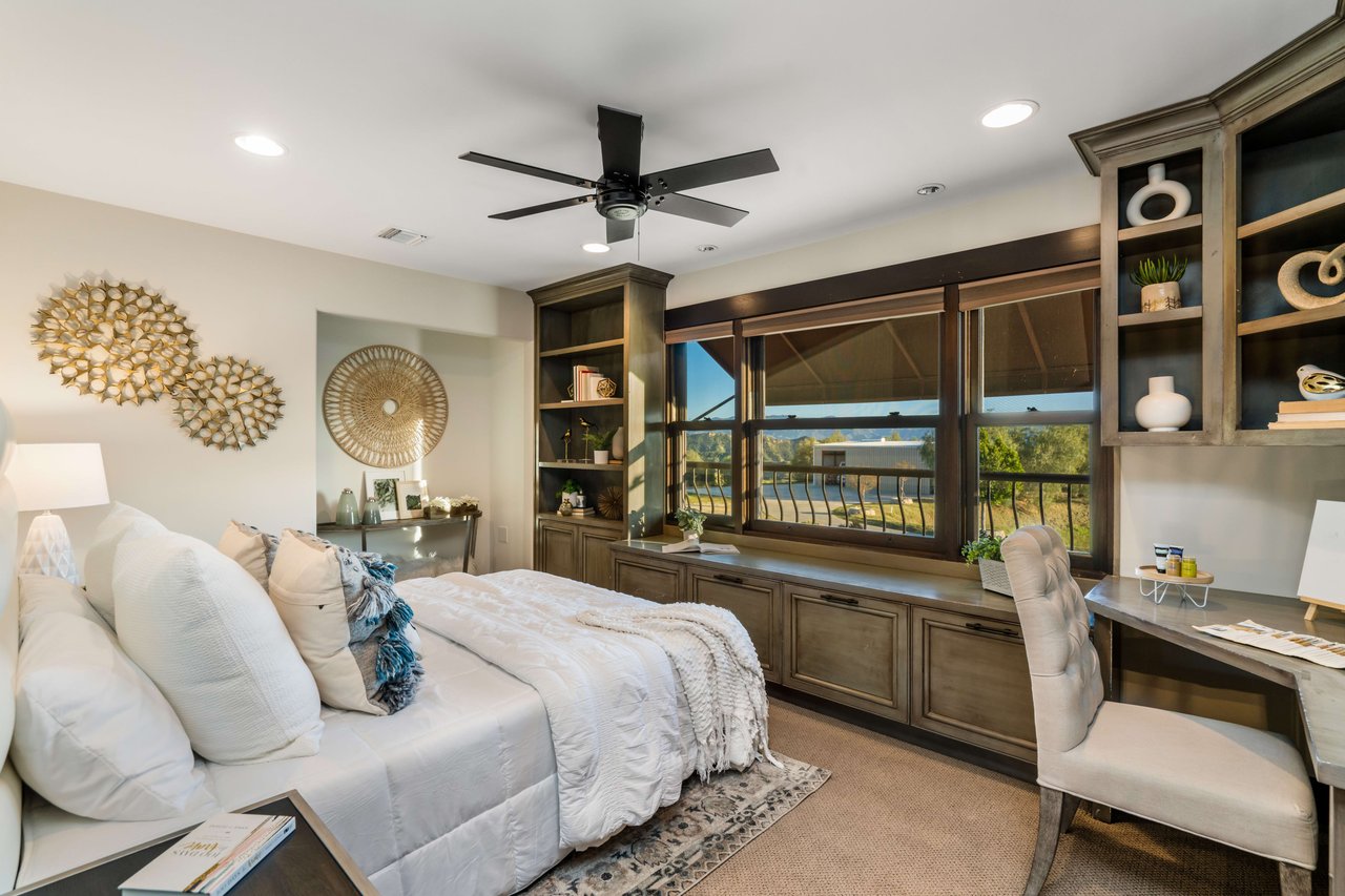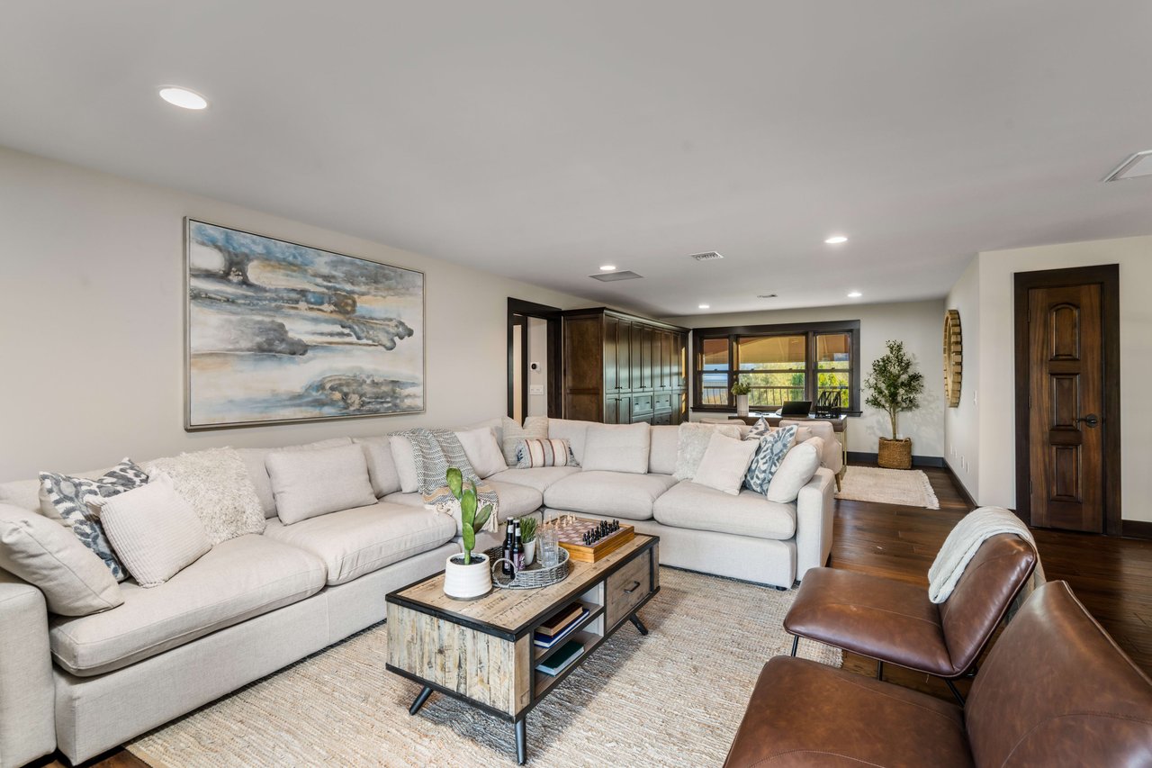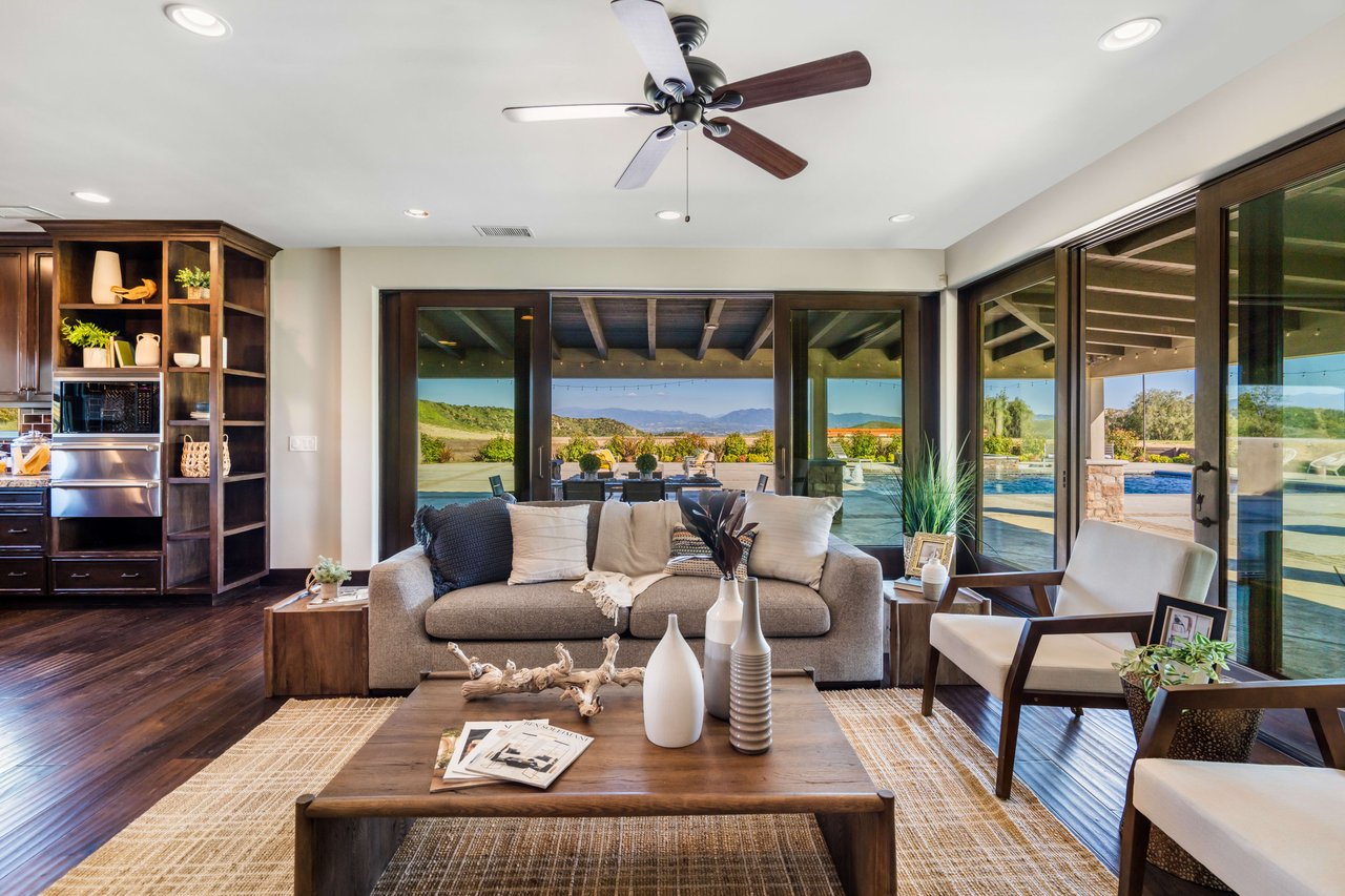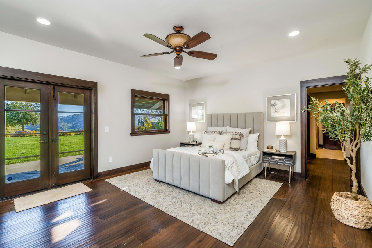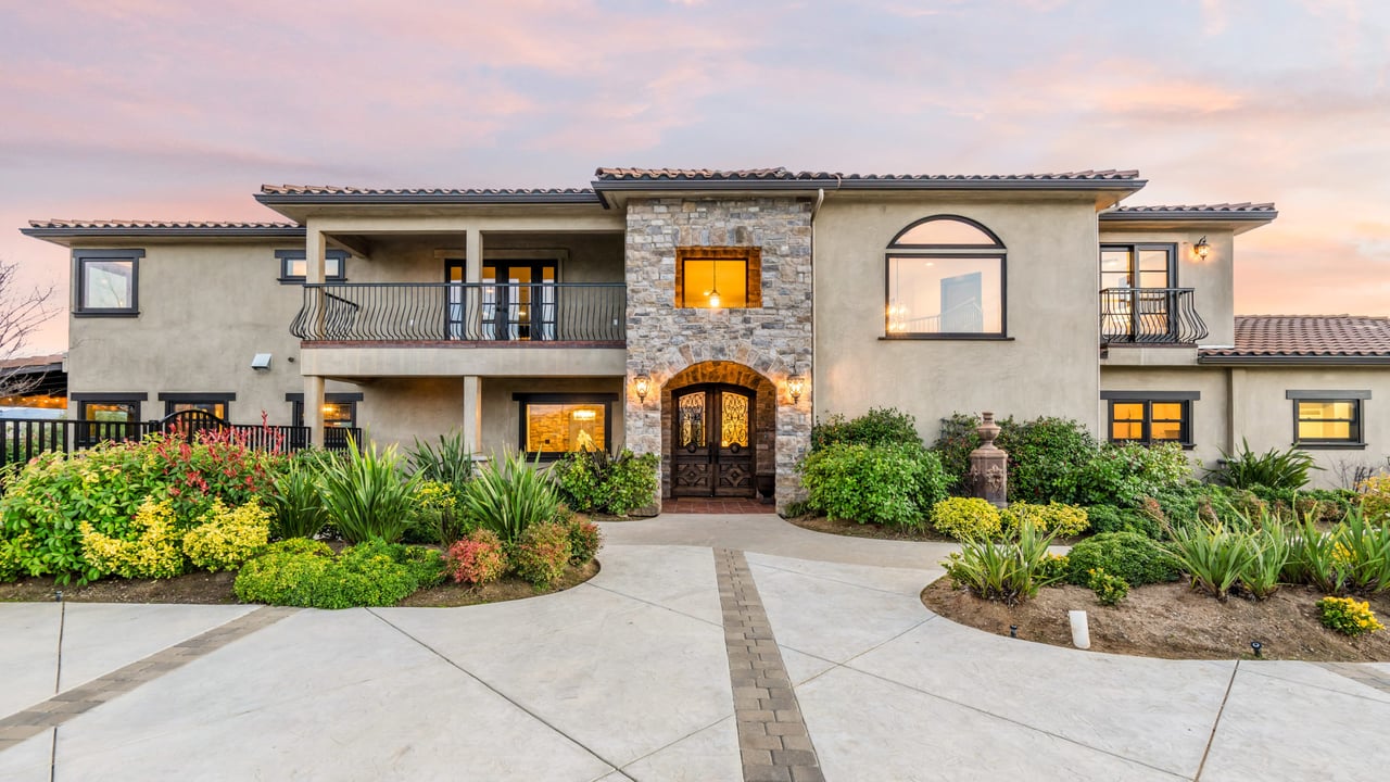 Rare opportunity to own 22-acre ridgetop luxury residence. A pristine 5-bedroom, 5-bath, + office home is positioned on a 3.5-acre pad, combining residential luxury with the spirit of adventurous living. Located atop a private road, this flag-lot estate offers tranquility and panoramic views. Private, double-gated entry. The estate includes 3-car finished garage w/laundry room, separate 2400 sf workshop with space for RVs, boats, motorcycles; motocross rally track; secluded location has been used for feature films and Emmy award-winning tv shows. Grand foyer, arched stone hallway leads to the family room, with panoramic views, fireside living space. Oversized sliding glass doors seamlessly integrate indoors/outdoors, open to patio dining, entertaining space. Rich mahogany windows and doors throughout. Chef s kitchen provides ultra-premium Wolf and Sub-Zero appliances, custom cabinetry, walk-in pantry. Huge main floor primary suite featuring walk-in closets, luxury bathroom with Italian Noce tile, and French doors that lead out to the patio. Also on the main floor: stylish office with custom built-ins, French doors to the wrap-around patio. Majestic staircase ascends to the 2nd floor mezzanine. 700+ sf loft area w/built-in cabinetry provides ample room for a media room, library, +/or home gym. Primary suite is replete with lavish bathroom, whirlpool bath, separate glassed-in double shower, walk-in closets, W/D, and French doors to dual balconies, overlooking sunsets, pool, and city lights. Three additional upstairs bedrooms and 2 baths provide privacy, comfort. Outdoors, a sparkling saltwater pool awaits, built-in fire pit, and 1200+ sf covered patio. An idyllic retreat for relaxation or entertaining. Located in LA County entertainment industry location zone, minutes to Santa Clarita s town center or Castaic Lake, half-hour to Ventura beach. Freeway access to Los Angeles. Abutting 42-acre parcel available for purchase separately, which could bring the total acreage 60+ acres.