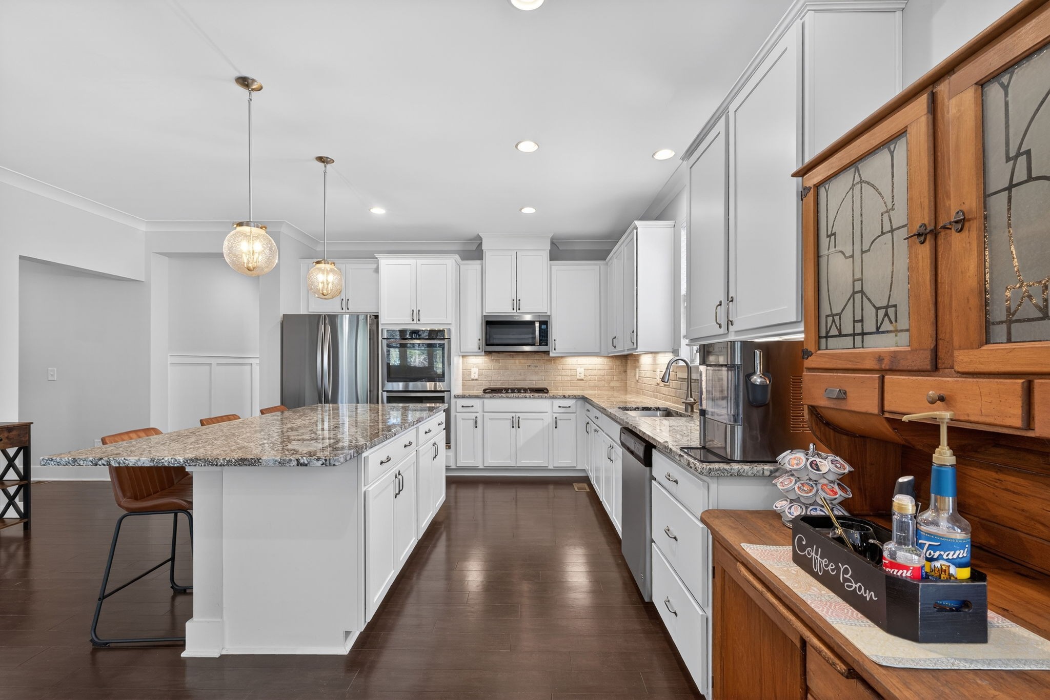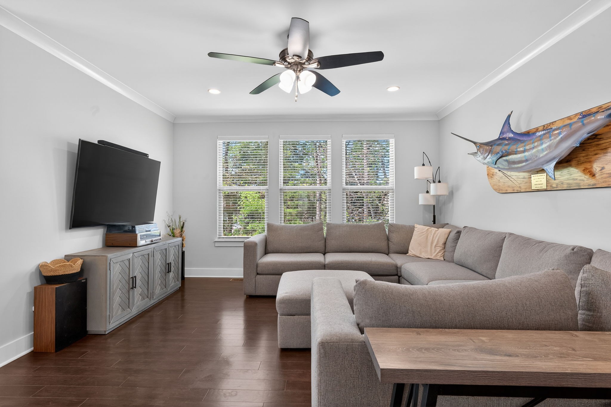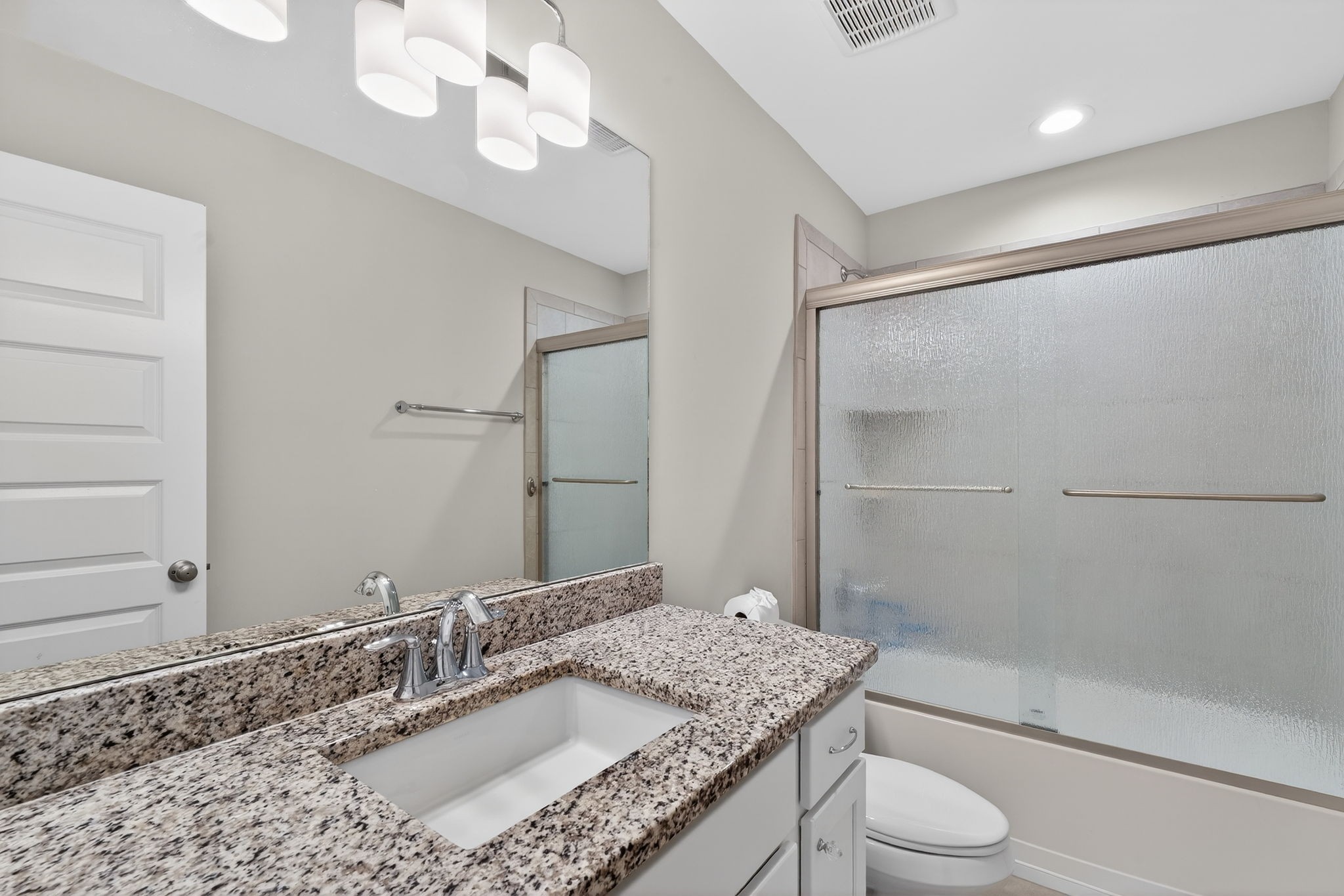 Well-Maintained Home with Main-Level Living, Flexible Space & Outdoor Enjoyment This beautifully maintained 3-bedroom, 3-bath home offers a thoughtfully designed layout with open-concept living and a primary suite on the main level, creating both comfort and functionality. The main living area features a seamless flow between the living room, dining area, and kitchen--ideal for everyday living and entertaining. The kitchen is equipped with granite countertops, built-in appliances, soft-close cabinetry, and a pantry, providing both style and efficiency. A dedicated office with a coffered ceiling and sliding barn doors offers a flexible space for work or hobbies. The main level includes two bedrooms and two full baths, while the second floor features an additional bedroom, full bath, and a spacious rec room, providing added versatility for guests or additional living space. Interior highlights include finished wood floors, tile, extra closets, walk-in closets, and ample storage throughout. Enjoy outdoor living with the well-thought-out screened-in back patio, offering a comfortable space to relax or entertain. The property also includes a two-car attached garage and a lot that backs up to the tree line, which features that enhance the overall setting. Located in the Beckwith Crossing community with access to neighborhood amenities, including a park and playground, this home offers a strong combination of