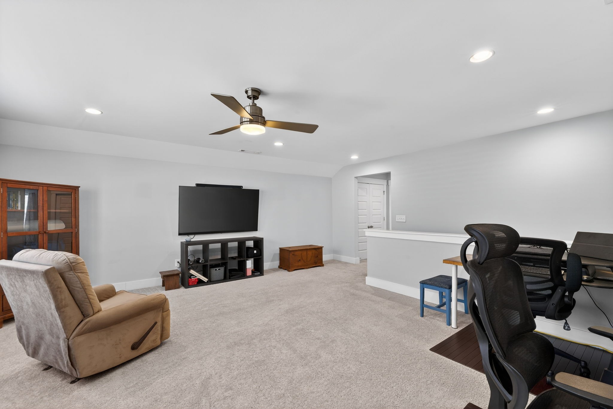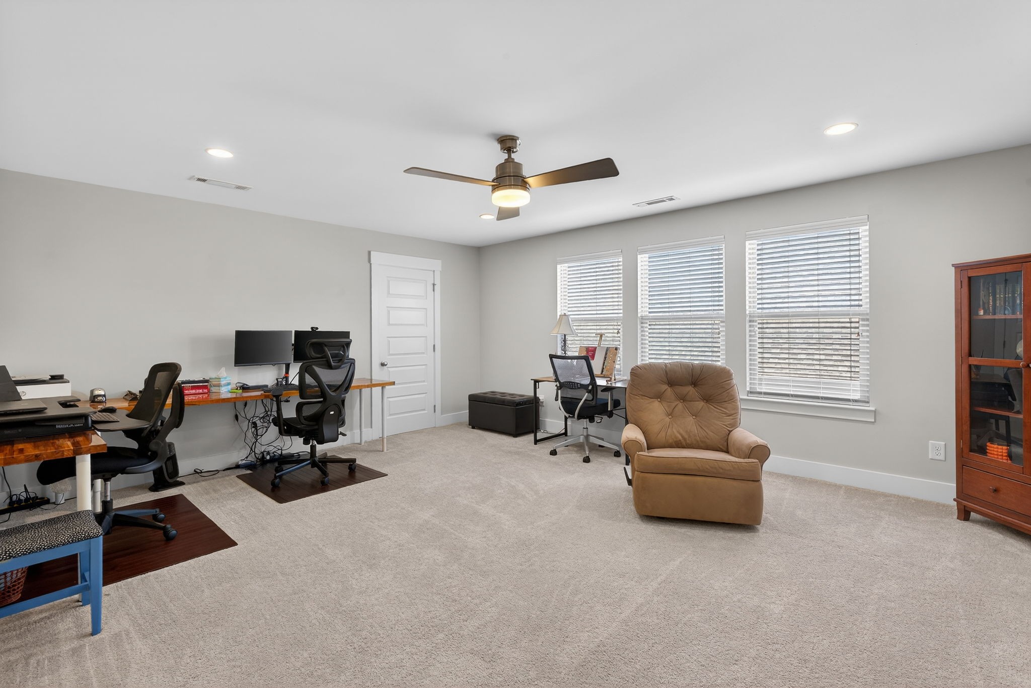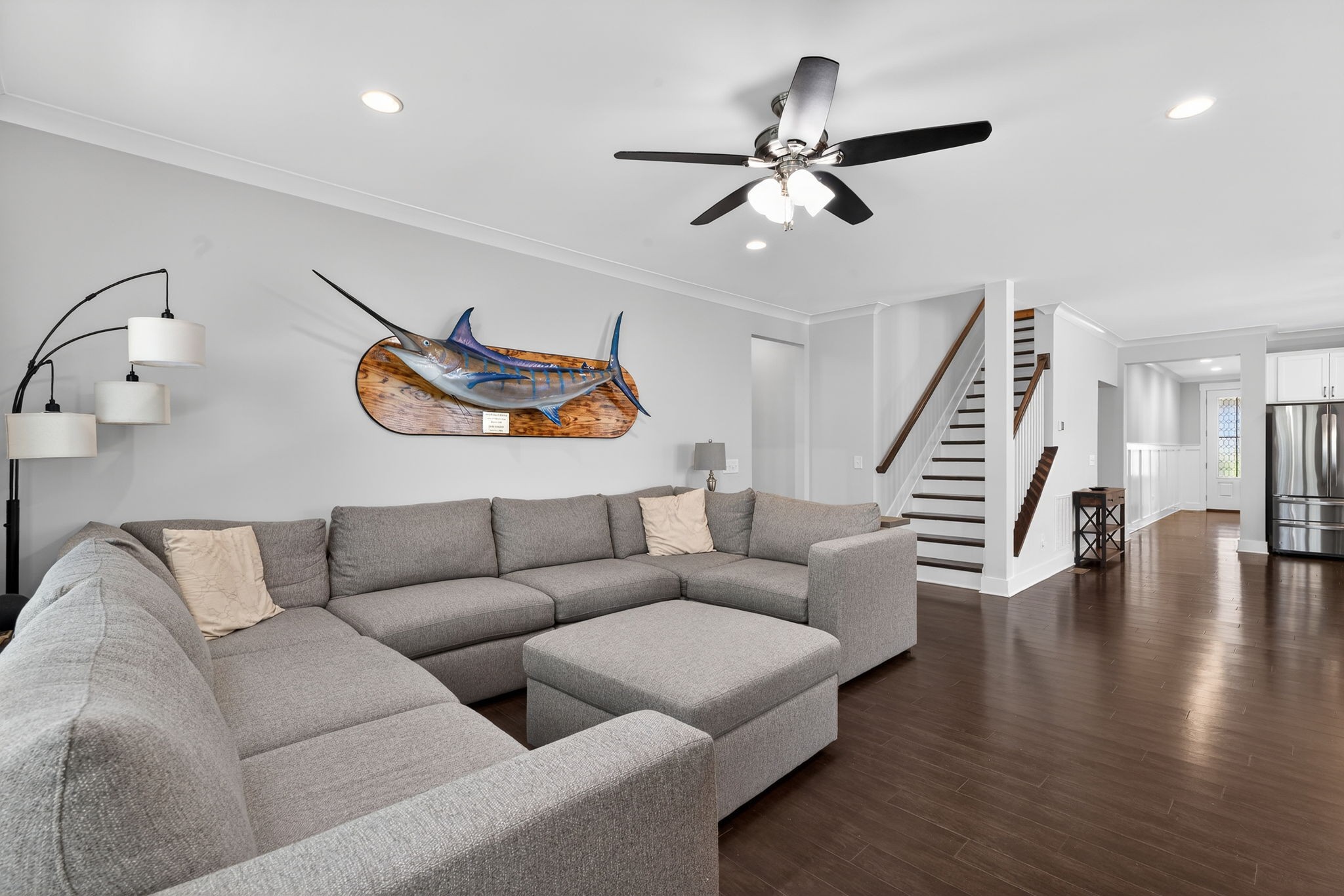 Well-Maintained Home with Main-Level Living, Flexible Space & Outdoor Enjoyment This beautifully maintained 3-bedroom, 3-bath home offers a thoughtfully designed layout with open-concept living and a primary suite on the main level, creating both comfort and functionality. The main living area features a seamless flow between the living room, dining area, and kitchen--ideal for everyday living and entertaining. The kitchen is equipped with granite countertops, built-in appliances, soft-close cabinetry, and a pantry, providing both style and efficiency. A dedicated office with a coffered ceiling and sliding barn doors offers a flexible space for work or hobbies. The main level includes two bedrooms and two full baths, while the second floor features an additional bedroom, full bath, and a spacious rec room, providing added versatility for guests or additional living space. Interior highlights include finished wood floors, tile, extra closets, walk-in closets, and ample storage throughout. Enjoy outdoor living with the well-thought-out screened-in back patio, offering a comfortable space to relax or entertain. The property also includes a two-car attached garage and a lot that backs up to the tree line, which features that enhance the overall setting. Located in the Beckwith Crossing community with access to neighborhood amenities, including a park and playground, this home offers a strong combination of