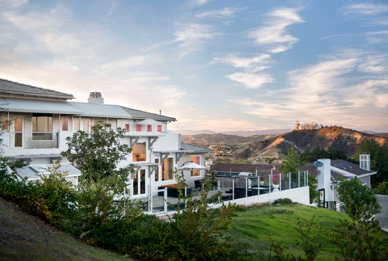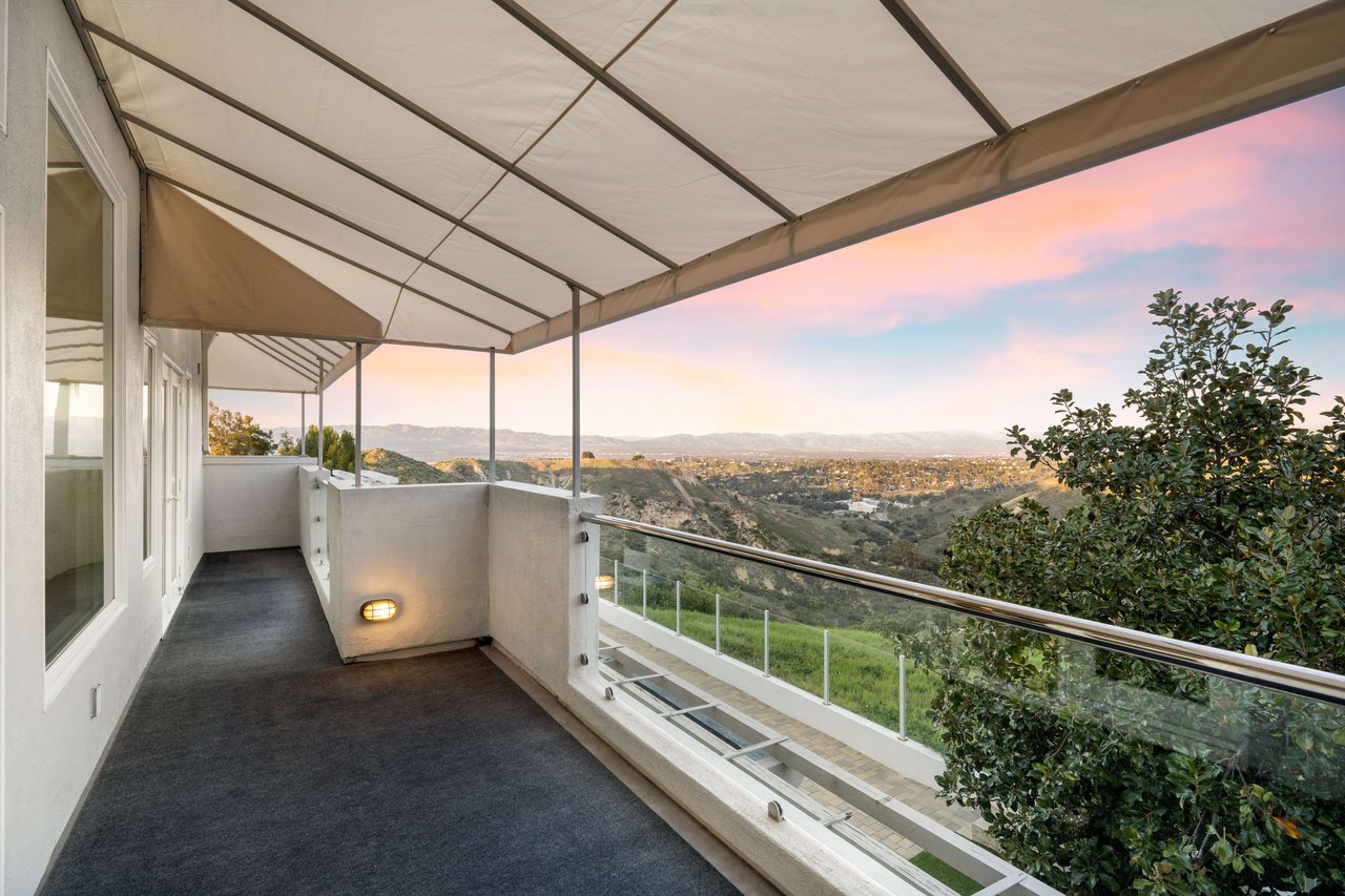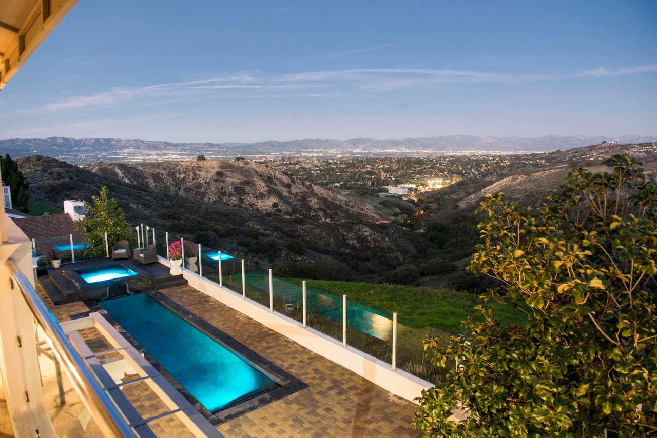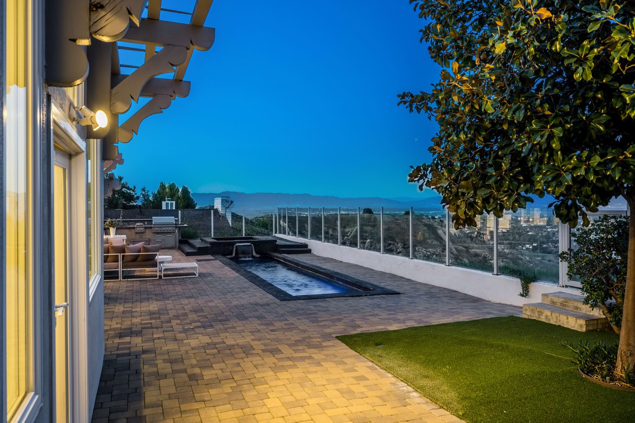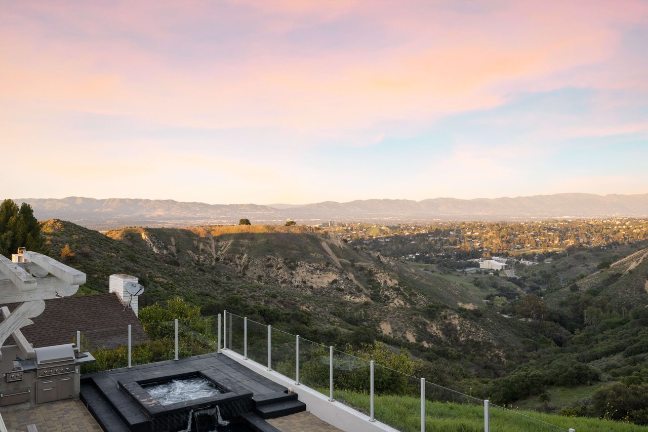 Captivating canyon and city light views. Sited within the bucolic community this Calabasas Highlands home is tastefully appointed with high ceiling and wood floors throughout.The generous open concept living area is bathed in natural light and boasts a comfortable contemporary design. The Chef's gourmet kitchen, complete with top of the line professional appliances offers direct access to the spacious great room and dining nook with a warming fireplace. The second level is dedicated to the luxurious primary suite with a generous walk-in closet, spa-like bath, two viewing balconies and a private retreat, office or sleeping area. The main floor is complete with two en-suite bedrooms and a guest bath. The rear yard reveals a lap pool, spa, BBQ center and expansive viewing deck perfect for family and guest alfresco dining and star gazing. Additional features include a generous bonus room above the garage, putting green, dog run and multiple fruit trees.
