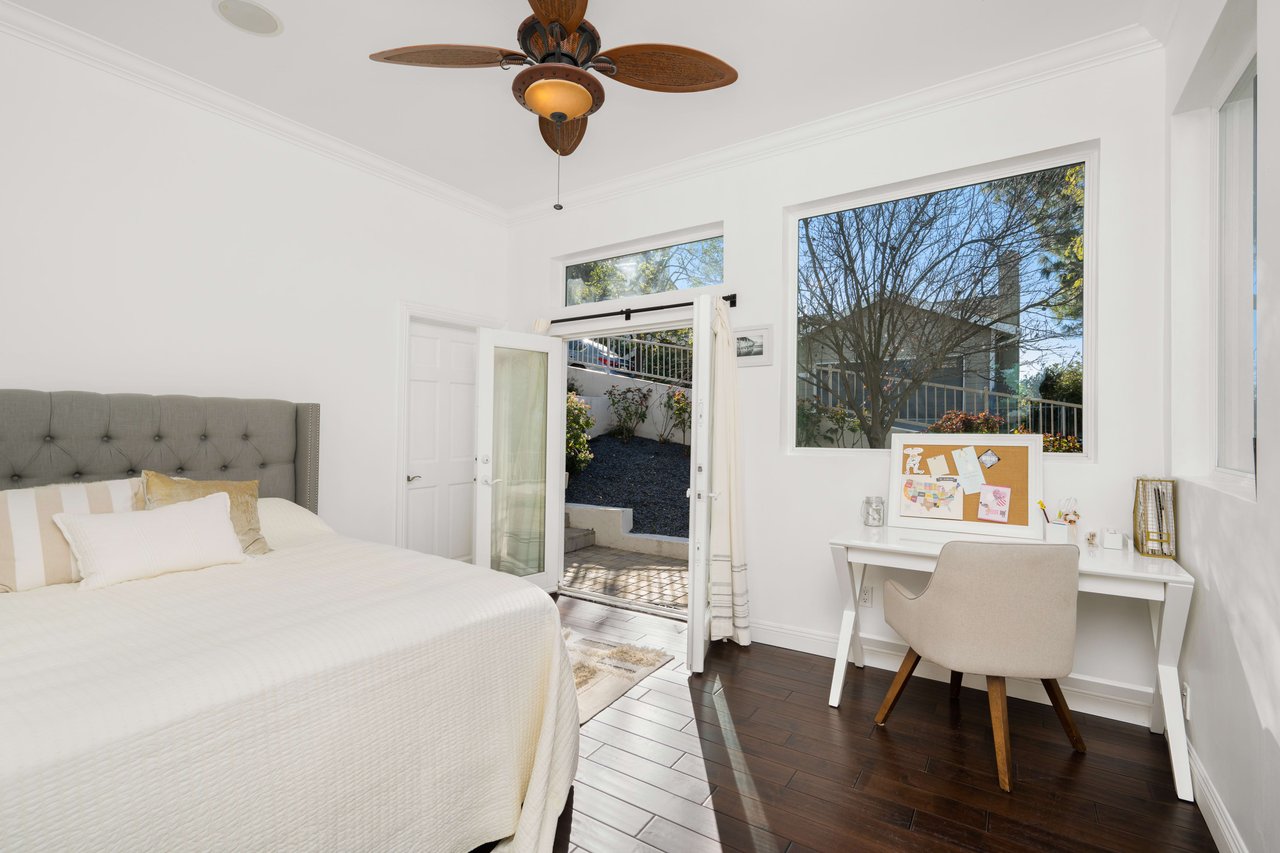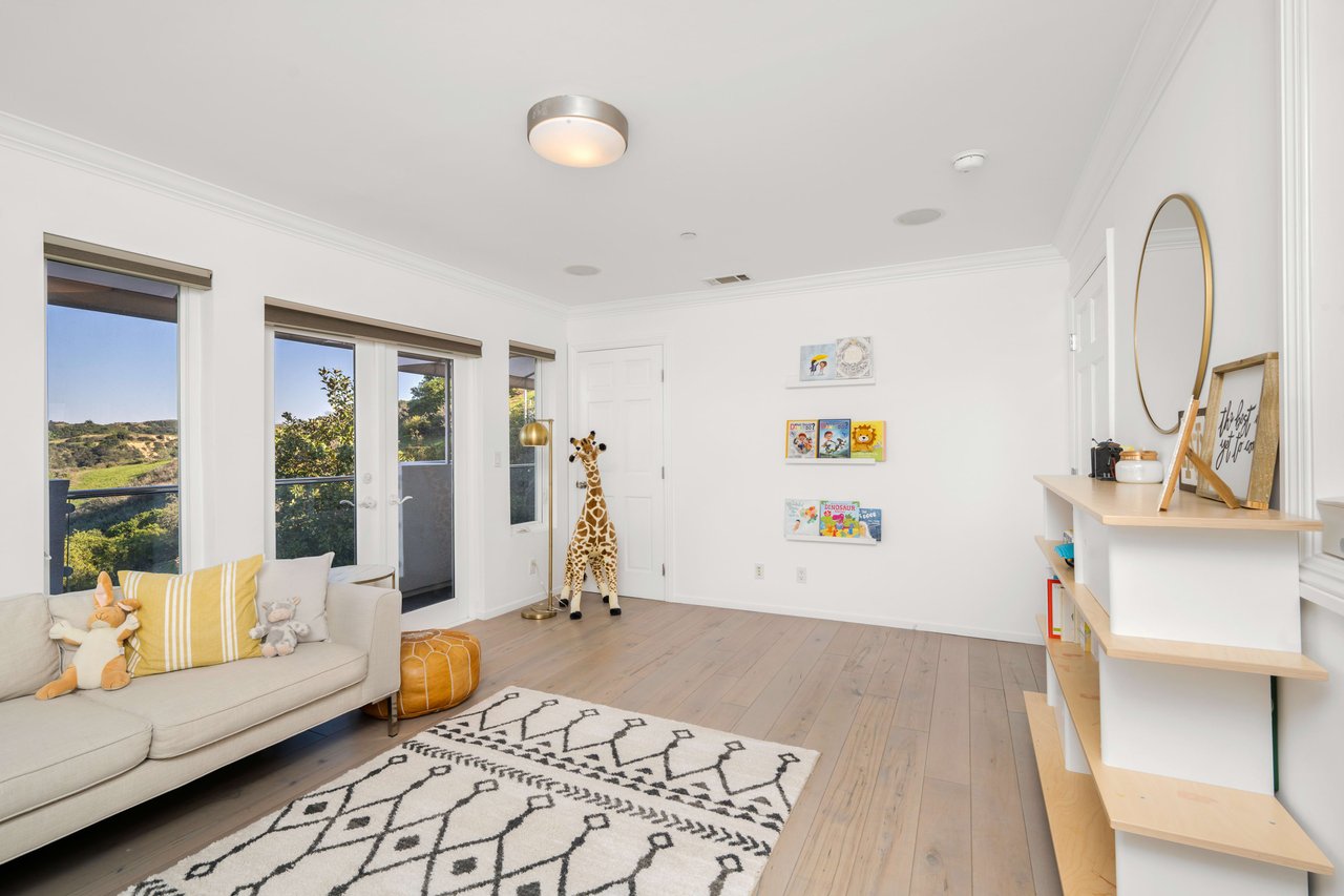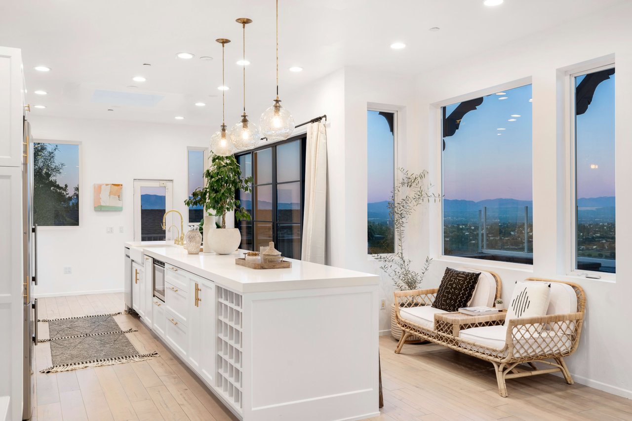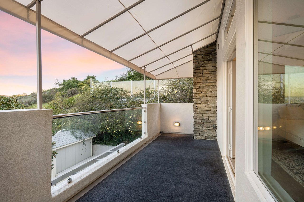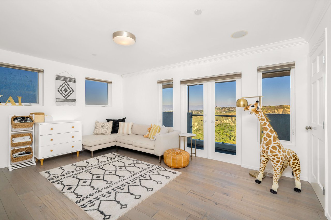 Captivating canyon and city light views. Sited within the bucolic community this Calabasas Highlands home is tastefully appointed with high ceiling and wood floors throughout.The generous open concept living area is bathed in natural light and boasts a comfortable contemporary design. The Chef's gourmet kitchen, complete with top of the line professional appliances offers direct access to the spacious great room and dining nook with a warming fireplace. The second level is dedicated to the luxurious primary suite with a generous walk-in closet, spa-like bath, two viewing balconies and a private retreat, office or sleeping area. The main floor is complete with two en-suite bedrooms and a guest bath. The rear yard reveals a lap pool, spa, BBQ center and expansive viewing deck perfect for family and guest alfresco dining and star gazing. Additional features include a generous bonus room above the garage, putting green, dog run and multiple fruit trees.