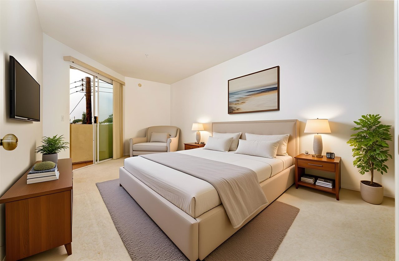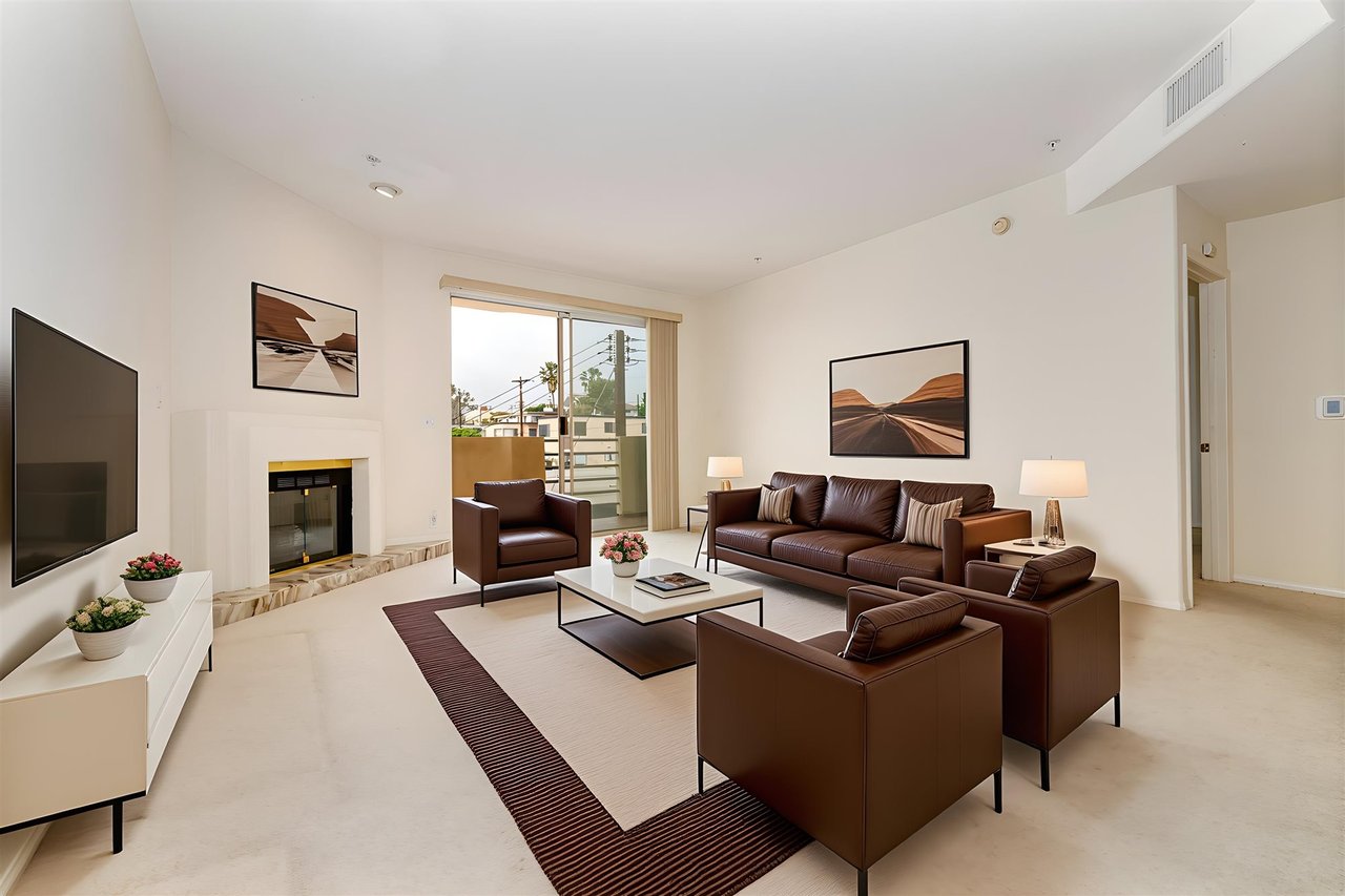 Experience comfortable Westside living in this spacious top-floor condo at 3460 S. Centinela Avenue #403. Located in a secure, well-maintained building, this residence offers an airy layout, abundant natural light, and a flexible floor plan suited for modern living.The expansive living room features soaring ceilings, recessed lighting, and a charming fireplace, with sliding glass doors that open to a private balcony perfect for relaxing or entertaining. The kitchen offers generous cabinetry, tiled countertops, stainless steel appliances, a gas cooktop, double ovens, and a breakfast bar overlooking the main living area.The primary bedroom is bright and spacious with direct balcony access, while the second bedroom is ideal for guests or a home office.Conveniently located near Marina del Rey, Culver City, Venice, and Santa Monica, with easy access to beaches, dining, shopping, and major freeways a fantastic opportunity to own on the Westside.