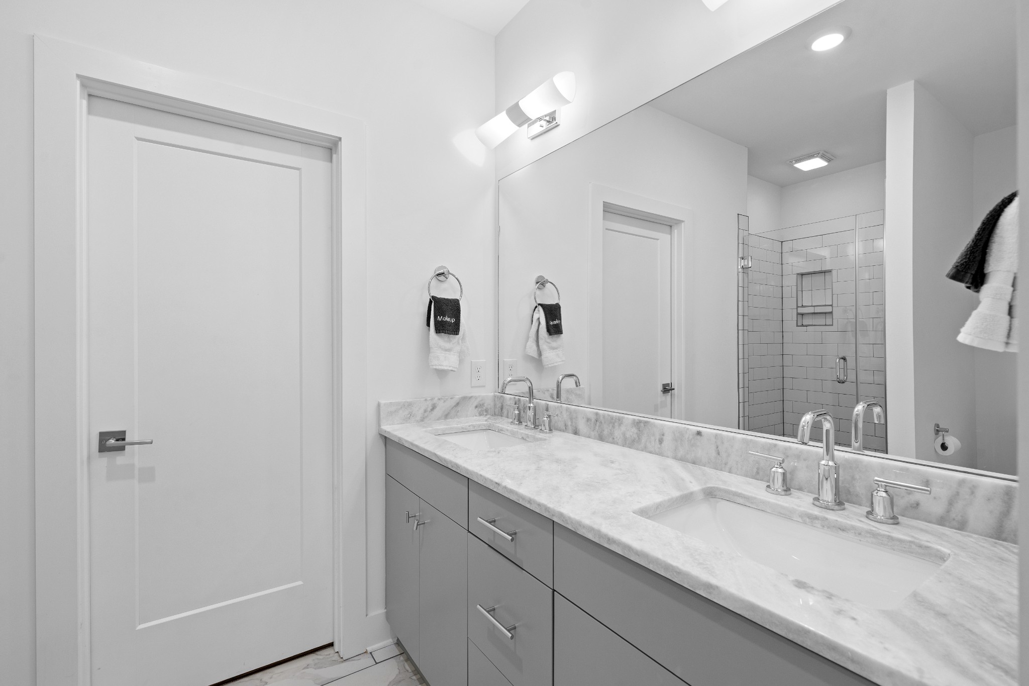This well-designed modern 4-bedroom, 4-full bath townhome, only minutes from the airport, offers a flexible open concept living experience with 2,250 square feet featuring a gracious kitchen with oversized island, stone counters, and tile backsplash. Multiple private bedrooms with ensuite baths create options for a home office, a home gym, or even lots of guests.