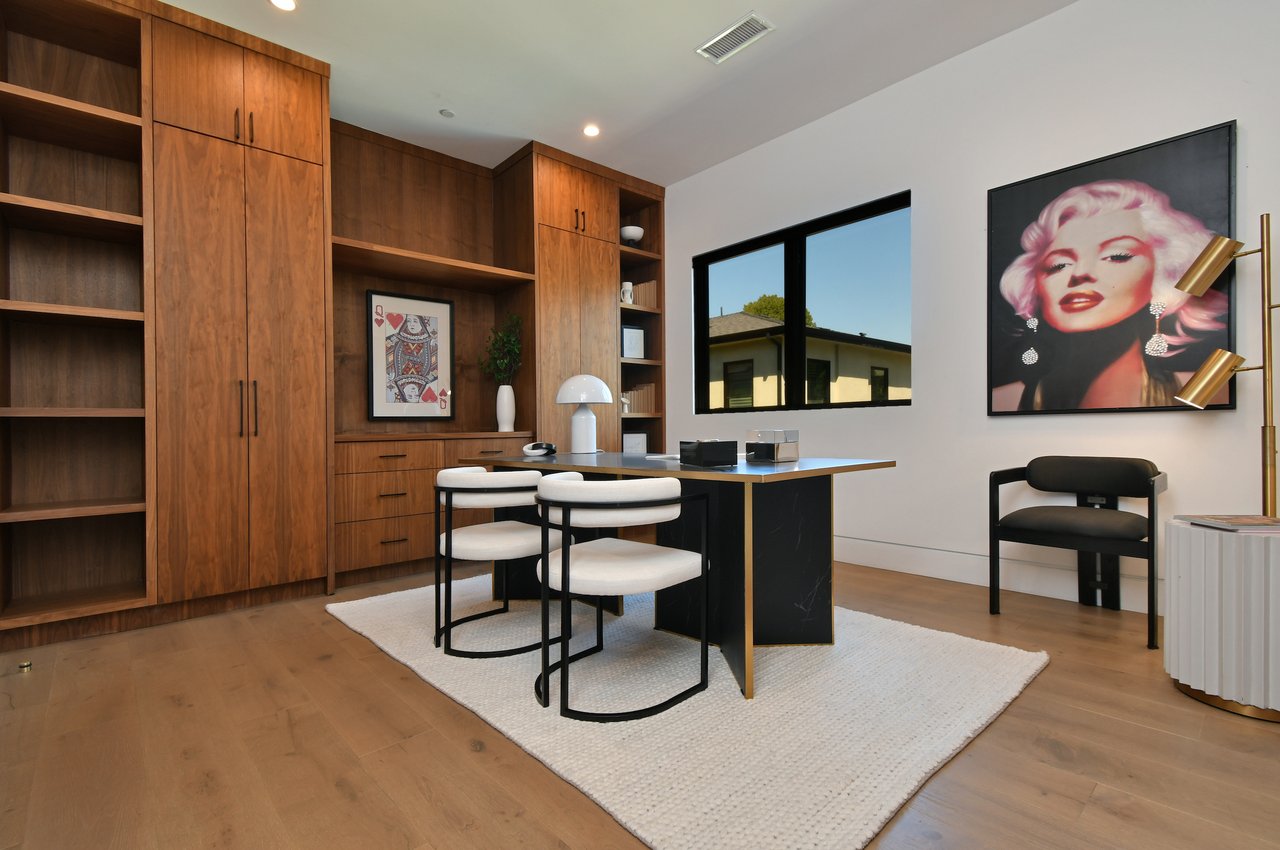 Discover a world of luxury in this modern estate, designed with exceptional attention to detail and a focus on privacy and high-end amenities. Beyond a private gated entrance, this architectural gem unfolds into an oasis of warmth, sophistication, and comfort perfect for those who value both intimate gatherings and grand entertaining. The heart of this home is its expansive gourmet kitchen and great room, inviting everyone to gather around the oversized island while enjoying panoramic views of the lush backyard. Sunlight streams through 30-foot glass patio doors, seamlessly blending indoor and outdoor spaces to create an airy, light-filled environment ideal for a modern, luxurious lifestyle. The formal dining room, complete with a butler's pantry, enhances the home's entertaining capabilities, while the adjacent movie theater, paired with a private bar and wine cellar, offers an exclusive, in-home entertainment experience. A private home office looks out onto the beautifully landscaped yard, providing a serene backdrop for productivity. The owner's suite is a haven of luxury, featuring boutique-style glass-front closets and a primary bathroom that feels like a private spa retreat, with its double patios and elegantly designed details.Upstairs, five additional ensuite bedrooms and a versatile loft area ensure comfort and privacy for family or guests. Outside, this property is an entertainer's dream: a zero-edge pool shimmers under the sun, while a cabana with a full bath and an outdoor kitchen with BBQ offer the perfect setting for gatherings. The outdoor space is completed with a half-court basketball area, all shielded behind privacy hedges and secure gates. This is more than a home; it's a private retreat where every detail is designed to elevate your lifestyle.