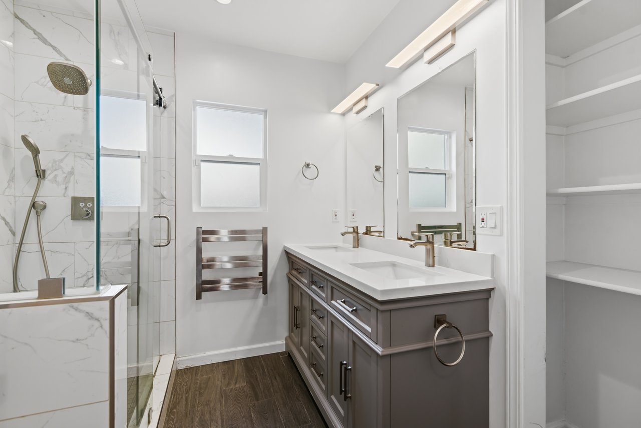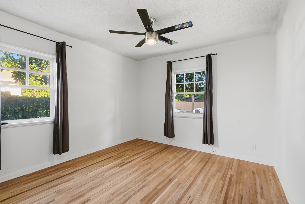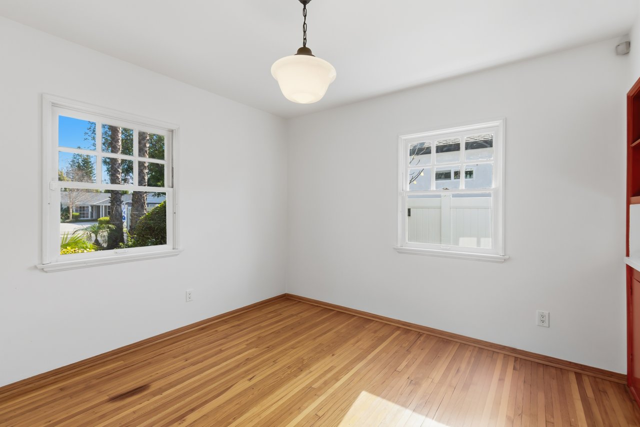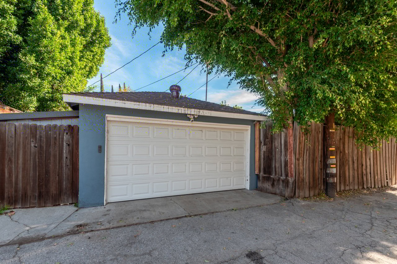 A detached two-car garage with alley access, offers possible ADU potential. Notable upgrades include a newer HVAC system, upgraded electrical panel, some newer double-pane windows, tankless water heater, and leased solar panels; delivering comfort, efficiency, and significant annual energy savings.