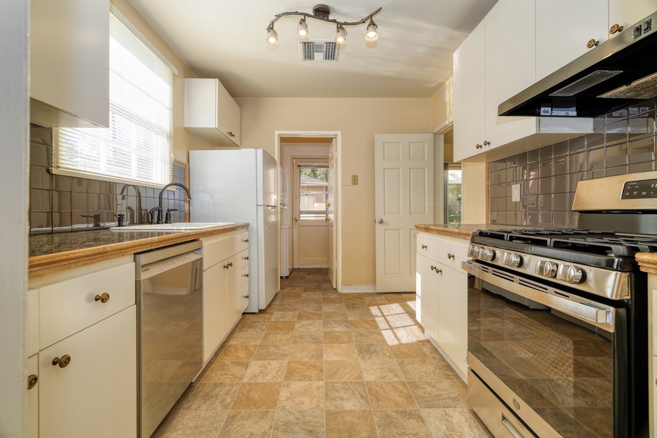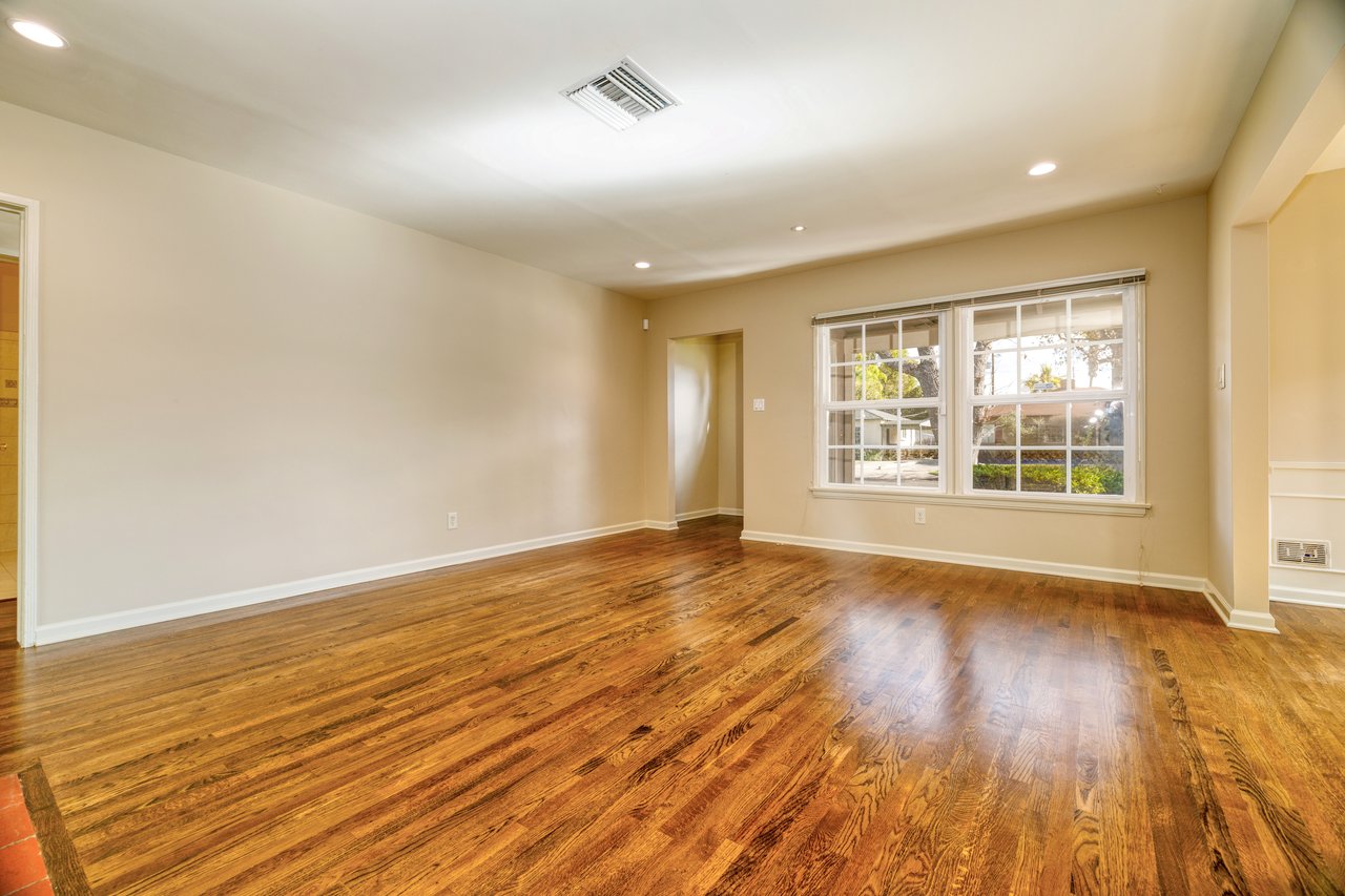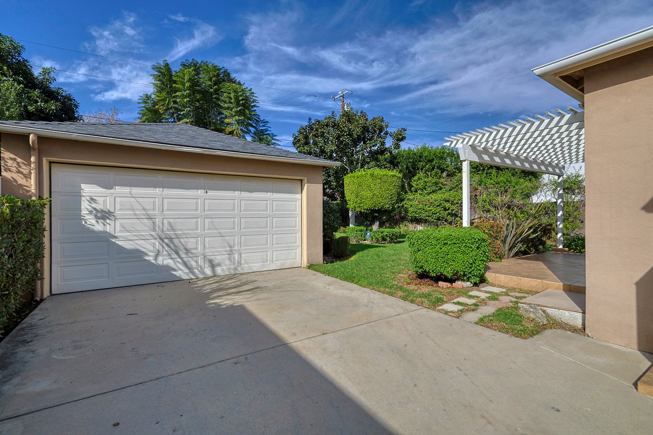Charming and well-maintained 3 BR/2 BA home in the heart of Sherman Oaks, offering classic California character with comfortable, functional living spaces. The home features beautiful hardwood floors throughout, recessed lighting, and an inviting living room anchored by a traditional fireplace. A formal dining area with wainscoting and abundant natural light flows seamlessly from the main living space, ideal for everyday living or entertaining. The kitchen offers generous cabinetry, ample counter space, stainless steel appliances, and a convenient layout with easy access to the backyard. The primary bedroom includes an en-suite bath, while two additional bedrooms provide flexibility for guests, home office, or family use. Both bathrooms are well-appointed and thoughtfully laid out. Enjoy a beautiful private, landscaped backyard perfect for outdoor dining, relaxing, or entertaining; along with a detached garage and additional driveway parking. Central HVAC, laundry, and a functional floor plan add to the home's everyday comfort. Ideally located near Ventura Boulevard dining, shopping, and entertainment, with easy access to major freeways and all that Sherman Oaks has to offer. A rare opportunity to lease a warm, character-rich home in a prime neighborhood.