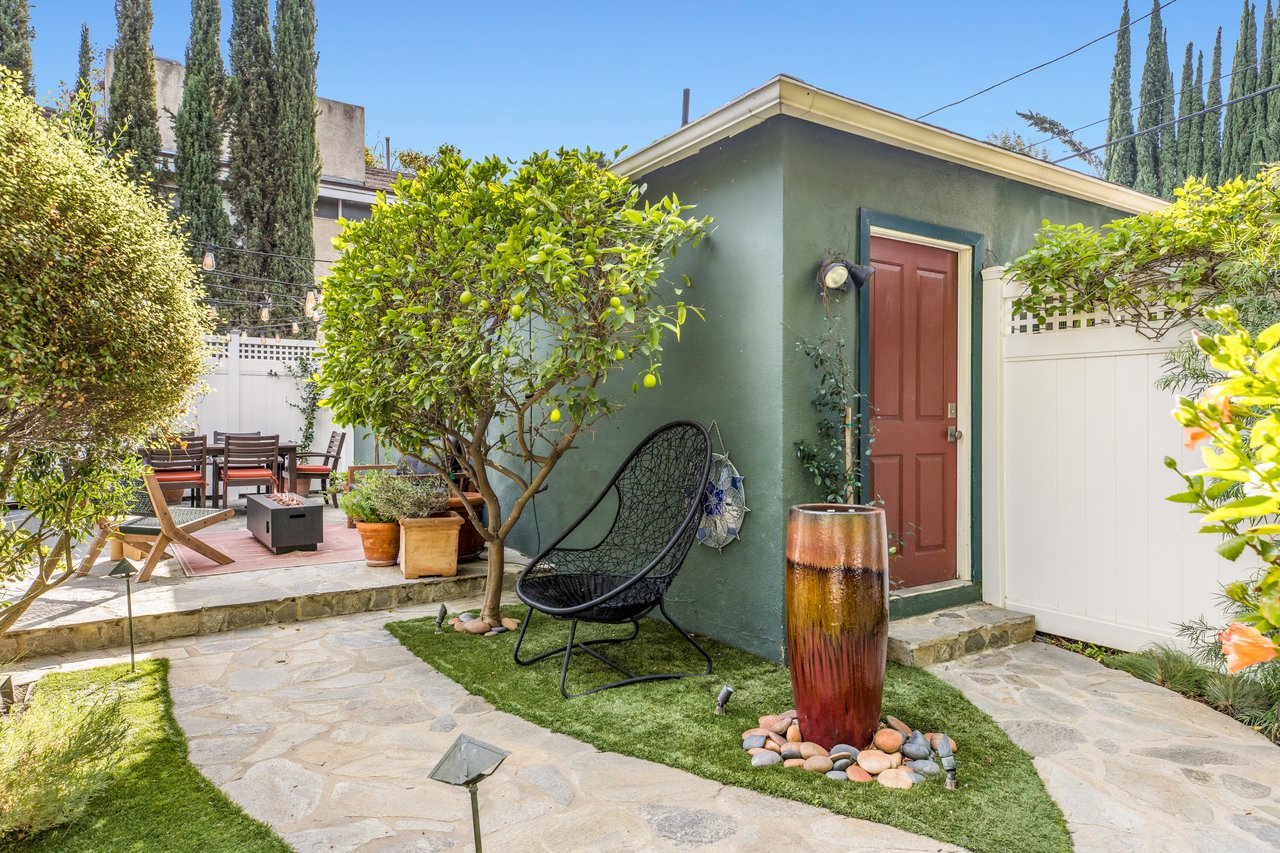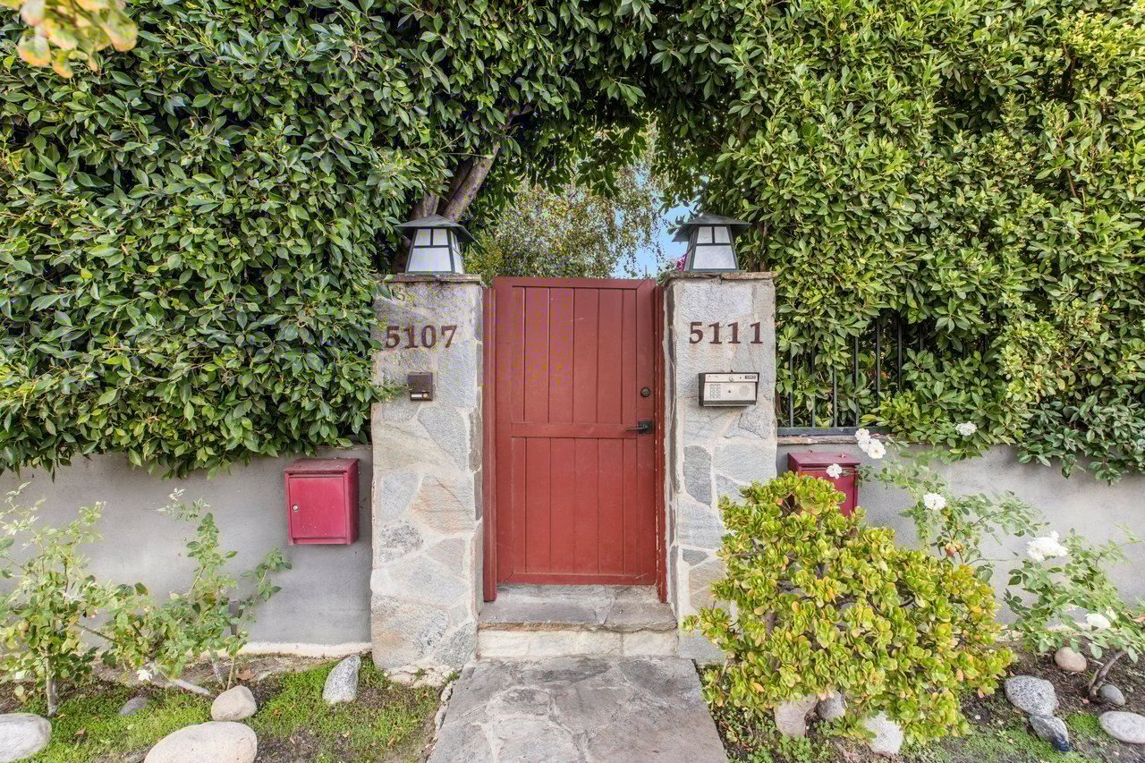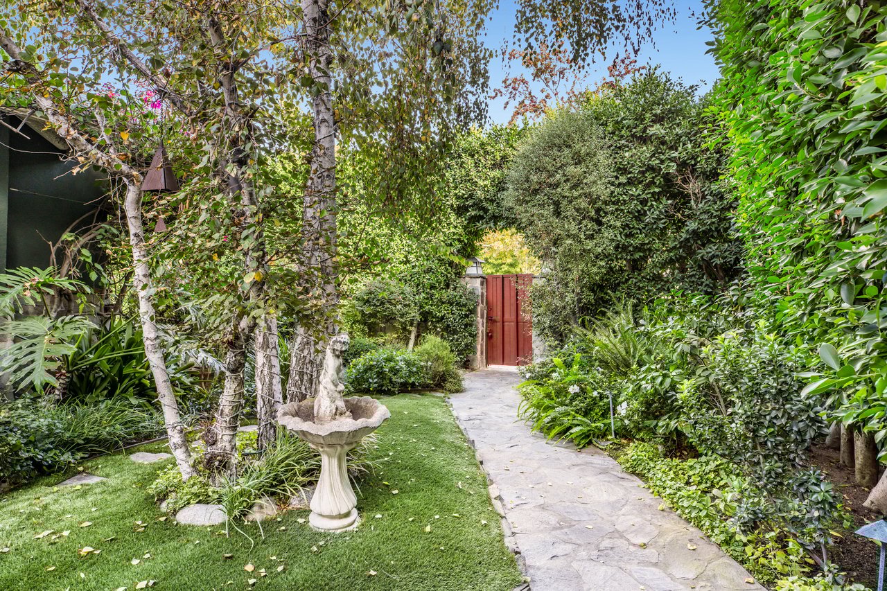 Rare gem of Valley Village! Tucked behind lush, mature landscaping, this extraordinary property feels every bit like a single-family home. Follow the stone pathway through a beautifully manicured garden to your private entrance adorned with a trickling fountain and charming Dutch door — the first of many distinctive details that make this residence truly unforgettable.