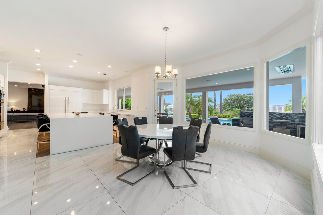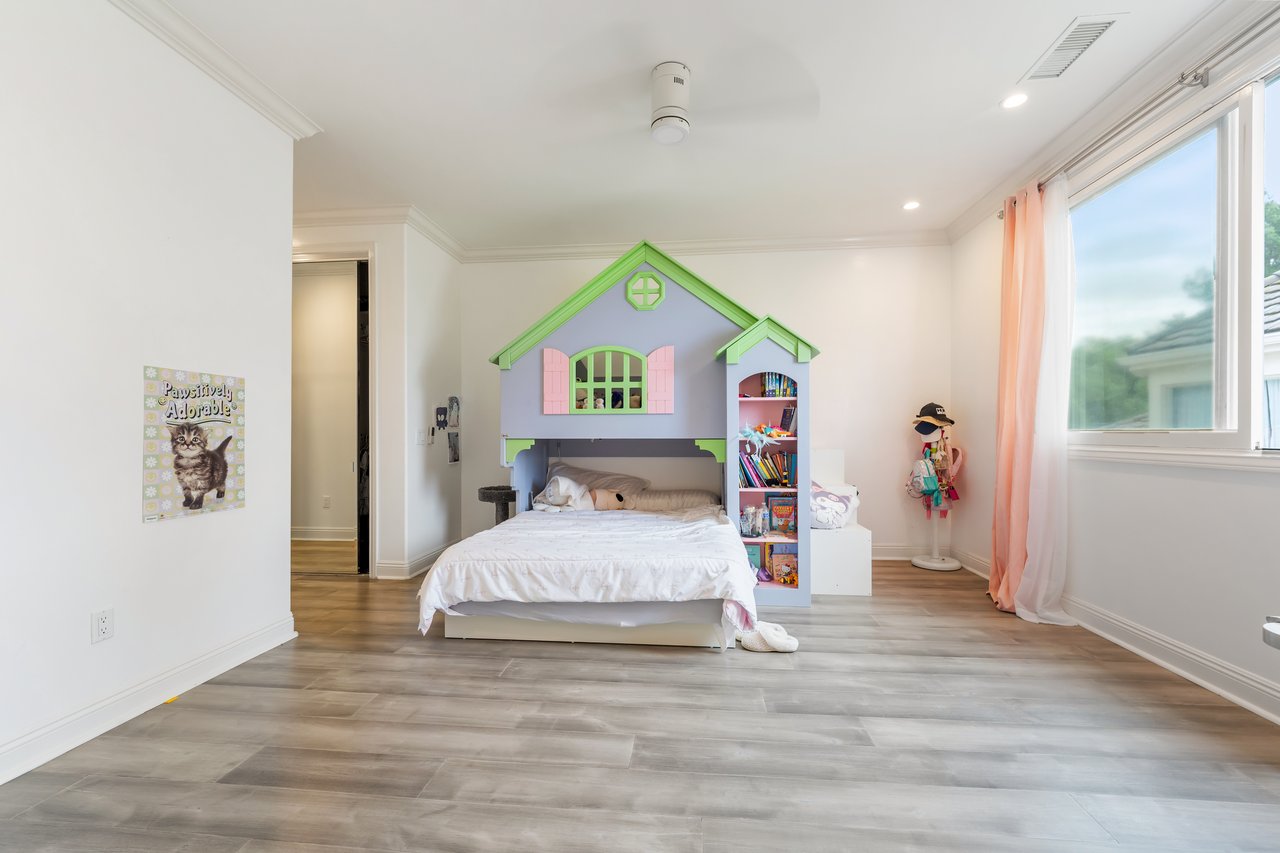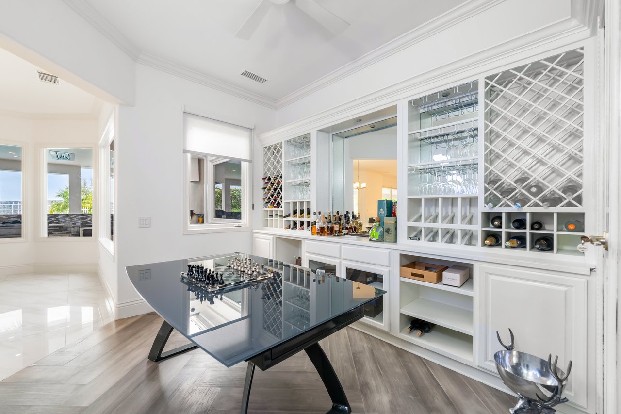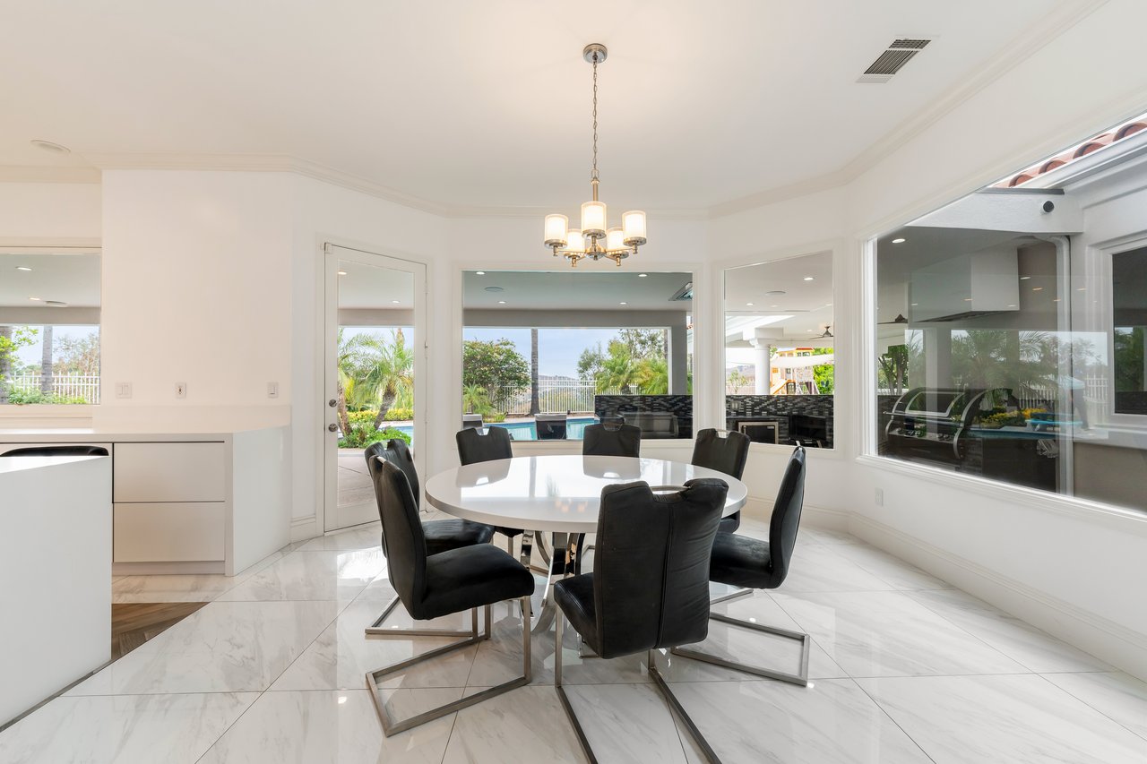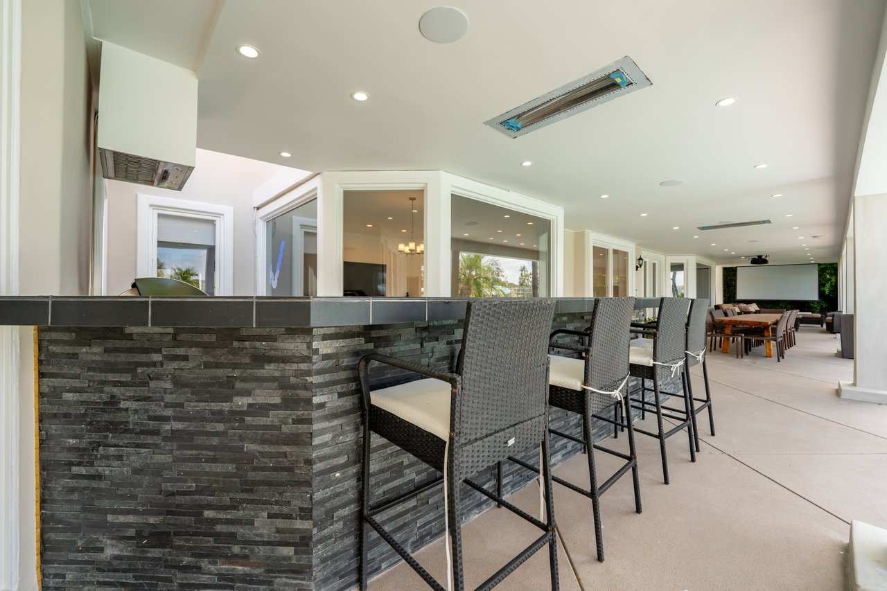 Designed for elevated modern living, the home is outfitted with Control4 home automation, LED lighting, Cat-6 wiring, and a whole-house sound system. The expansive family room is ideal for both entertaining and everyday comfort, complete with a fireplace, custom bar, built-in projector, and dual wine coolers—perfect for movie nights and gatherings. An oversized formal dining room comfortably accommodates 30+ guests.