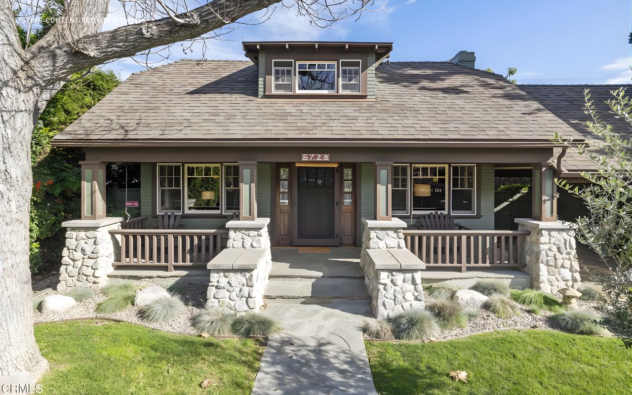 Set on a desirable street in Valley Glen, this beautifully preserved and enhanced 1920s Craftsman bungalow offers a seamless blend of character and convenience. Ideal for a history enthusiast who appreciates the timeless character and functionality of a Craftsman, it is rumored to have been moved from its original location to accommodate the development of the Hollywood Freeway in the 1940s! The craftsmanship from the 1920s era is meticulously showcased throughout the home. The front door is framed with sidelight windows, allowing natural light to fill the space. Rich wood beams accent the ceiling. The beautiful fireplace with hand-made Batchelder-style tiles is a centerpiece of the living room, tucked perfectly between classic built-ins and charming stained-glass windows. Detailed fixtures and wood flooring complement the 1920s design. The first floor features three bedrooms and two bathrooms, while the loft above provides extra space ideal for a home office, guest room, or creative retreat. The updated kitchen has granite counter-tops, ample storage, a large walk-in pantry, and top-of-the-line appliances, which create an ideal space for cooking and entertaining. There is a large laundry room off the kitchen with even more storage and a door leading to the backyard. The secluded outdoor space with lovely landscaping is ideal for a Southern California lifestyle. With an enclosed front yard, gated driveway, carport, and one-car garage, there is plenty of parking and privacy. The spacious front porch is a charming accent from which to welcome guests or decorate for a host of holidays. Close to everyday amenities and easy access to major Valley thoroughfares and freeways. This is a special property from another era waiting for its next chapter.