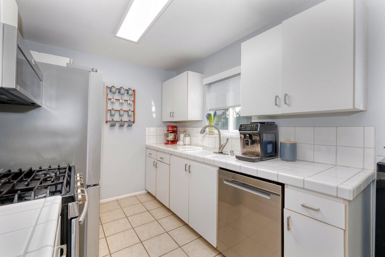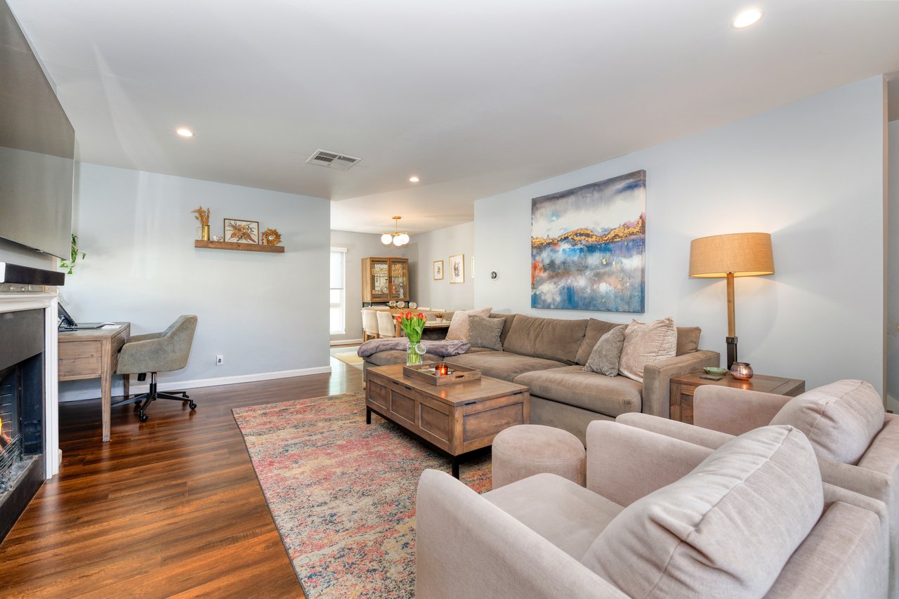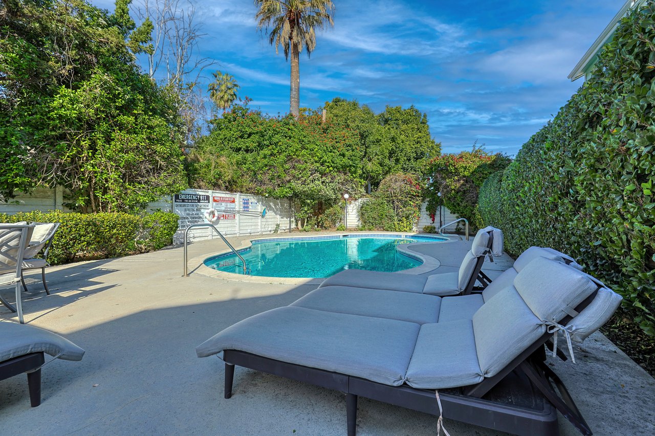 Updates include laminate flooring, recessed lighting, dual-pane windows and sliding door, a new HVAC system (2024), brand new water heater, updated appliances, a new garage door, and a Tesla charger. The community offers a lush green yard with mature trees and a pool, close to the LA Metro, G Line Bikeway, local shops, eateries, Westfield Fashion Square, and Ventura Boulevard - combining comfort, convenience, and Valley living!
