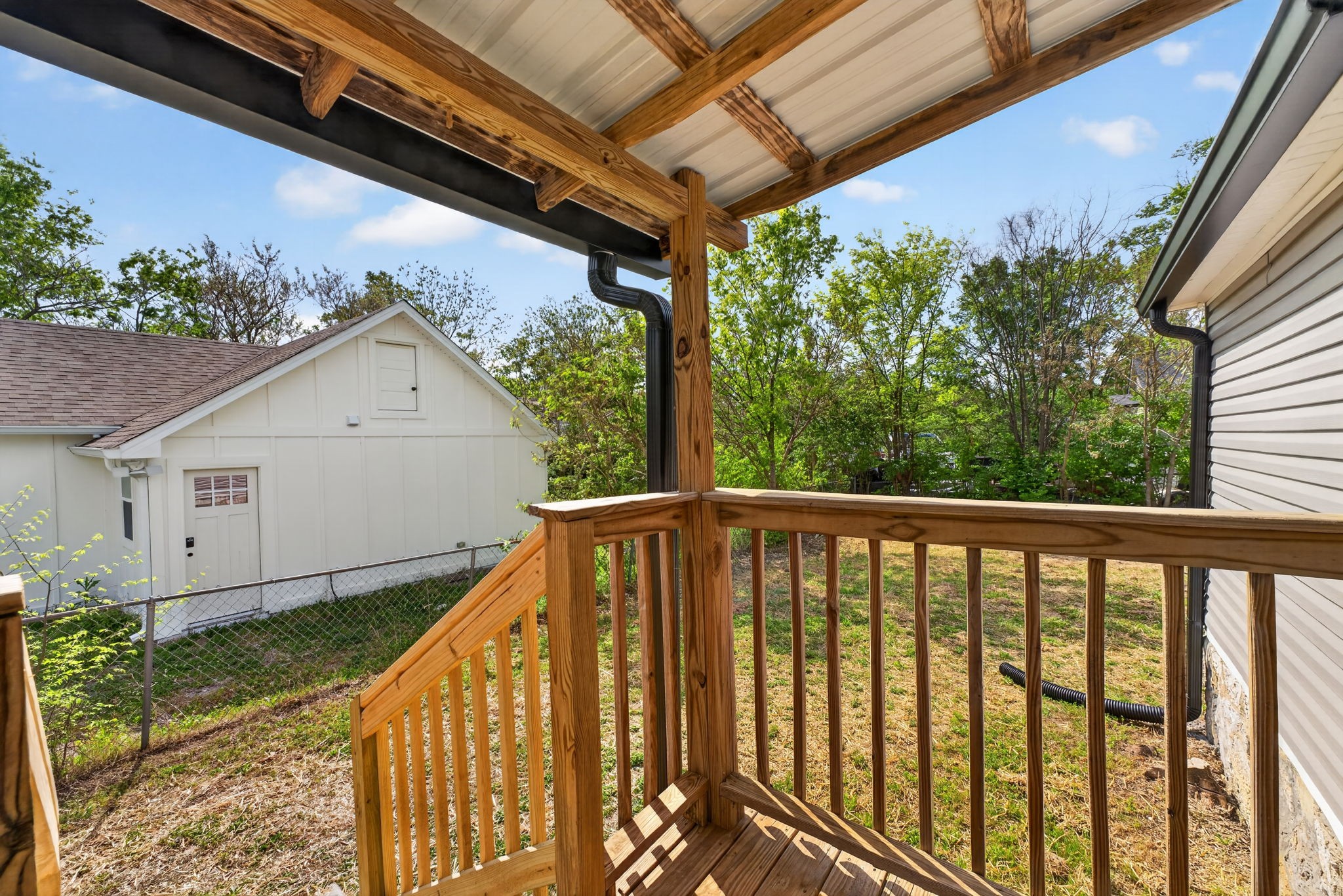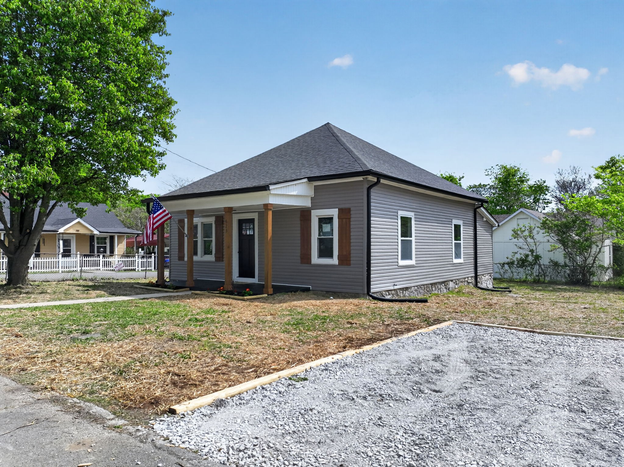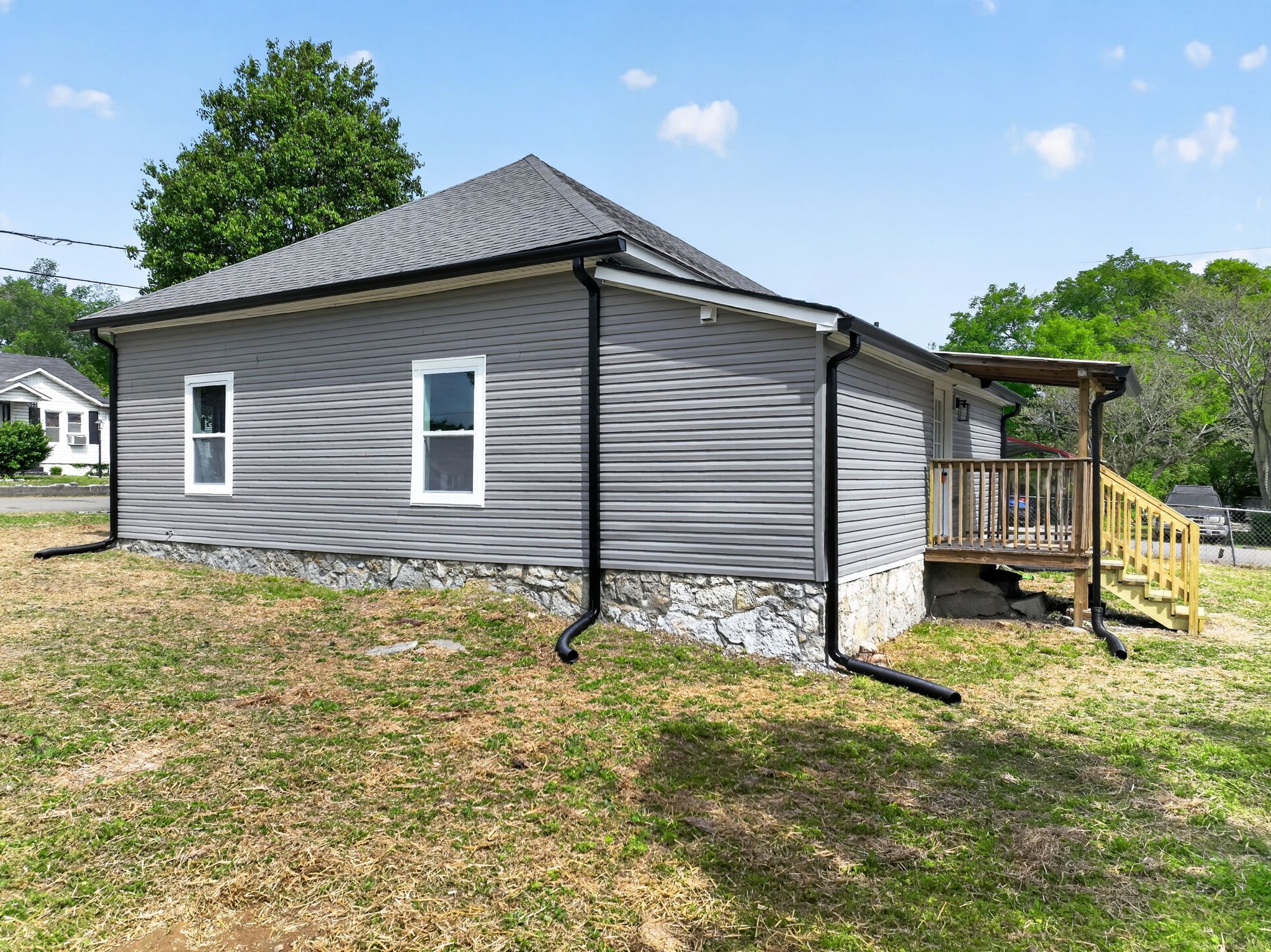 Outside, enjoy new vinyl siding, a covered front porch with concrete walkway, and a raised, covered rear deck. The corner lot provides a fenced backyard on three sides, and off-street parking for two cars.