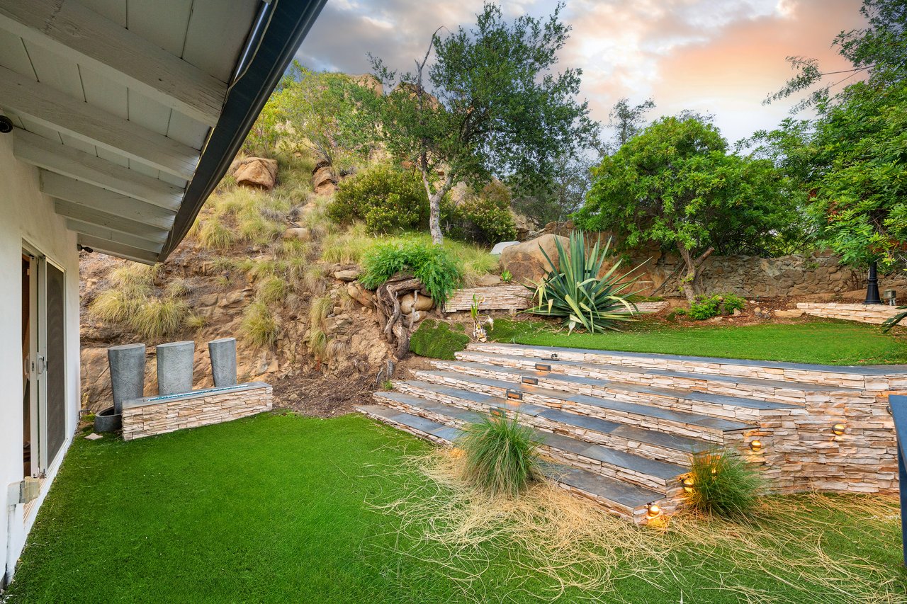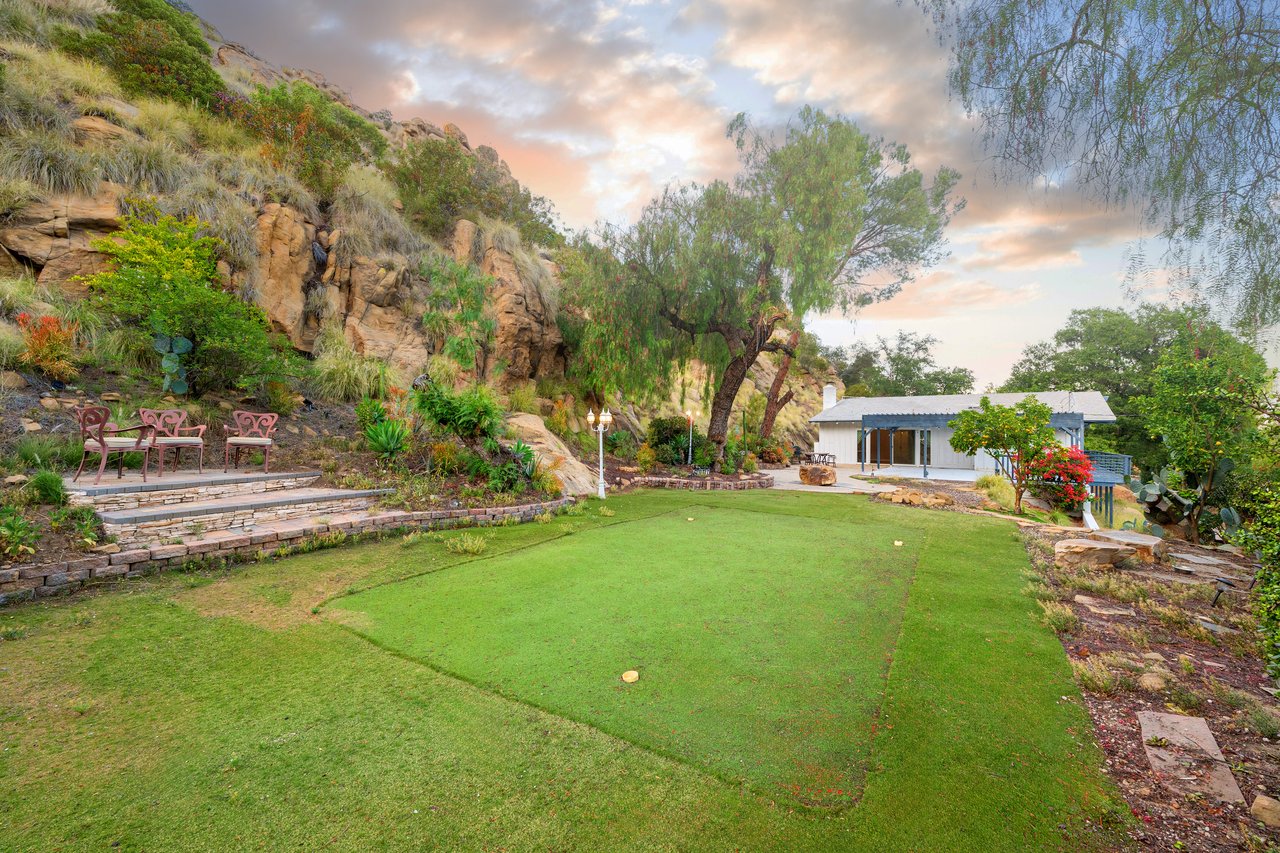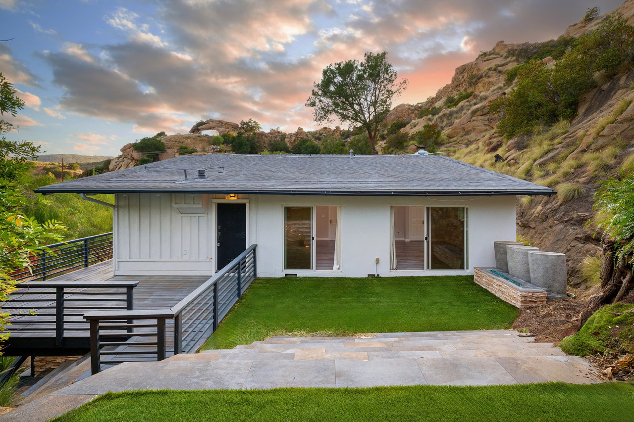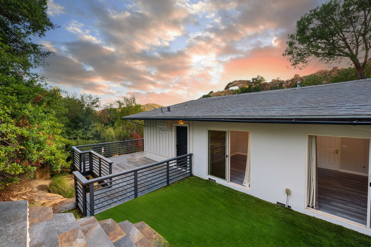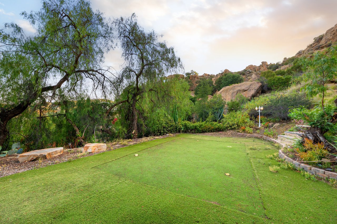 Expansive, double lot totaling over 26,000 square feet with breathtaking views. Set within a picturesque West Hills mountainous landscape, this single-family retreat features 3 bedrooms and 3 bathrooms spread over a generous 2,100 sqft floor plan, offering ample indoor and outdoor space. Upon entering, you're welcomed into a bright living area with vaulted ceilings and a large deck boasting scenic views. Double doors open off the living room to an enormous covered patio. The modern kitchen features sleek countertops, chef-grade appliances, and abundant storage space, catering to any home cook's delight. Two well-appointed main-floor bedrooms offer brightness and space, each with sliding doors accessing an outdoor retreat. Every bathroom boasts modern fixtures and finishes. The downstairs primary bedroom is a serene sanctuary, complete with an ensuite remolded bathroom and multiple walk-in closets. The standout feature of this property is the outdoor oasis featuring multiple outdoor entertainment spaces, lush mature landscaping, canyon views, and an expansive putting green, perfect for golf enthusiasts or those seeking outdoor recreation. Surrounding rock features add charm and privacy, enhancing the natural outdoor beauty. The extra-large lot consists of two separate APNs totaling 26,632 sqft for a possible ADU or additional development. A truly unique and rare opportunity to live in a quiet and serene landscape with stunning views. Award-winning and highly coveted private and public schools nearby. Close to many fine shops and restaurants, including Westfield Mall, The Topanga Village, and The Commons at Calabasas.