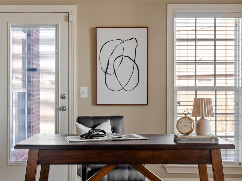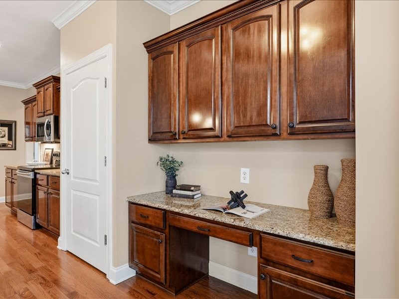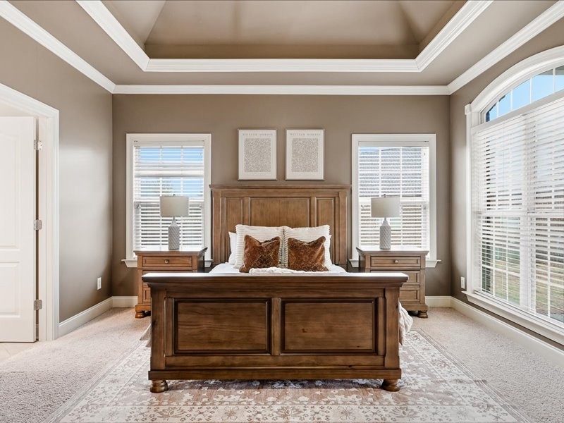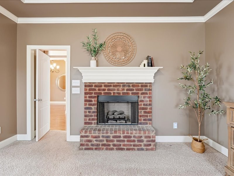 The main level is thoughtfully designed, anchored by a primary suite that serves as a true retreat, highlighted by a fireplace and sitting area ideal for a home office or reading nook, along with a spacious bath featuring a separate shower and tub, dual vanities, and an oversized walk-in closet. Two additional ground-floor bedrooms share a generously sized Jack-and-Jill bath, offering flexibility for guests, work-from-home needs, or multigenerational living.