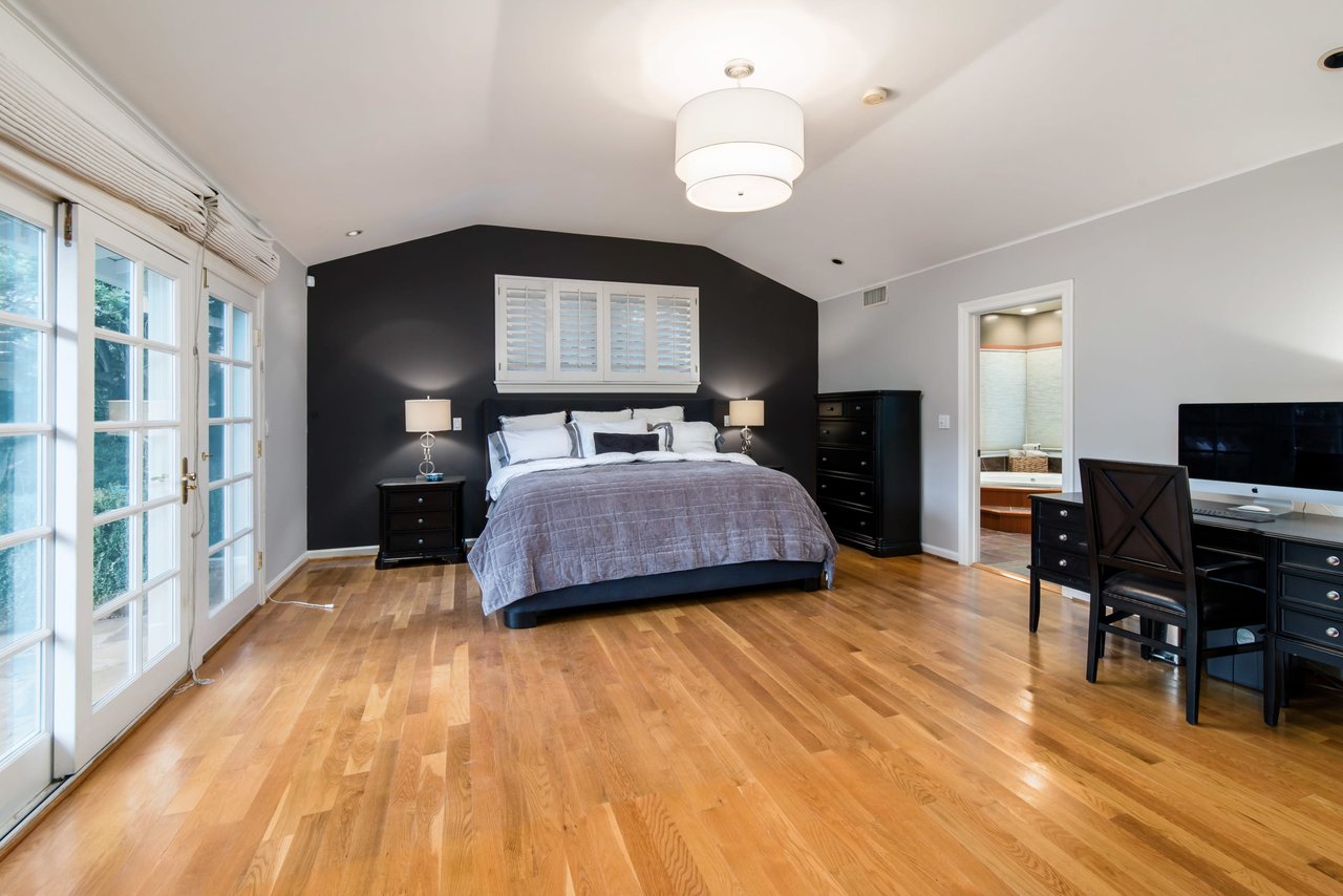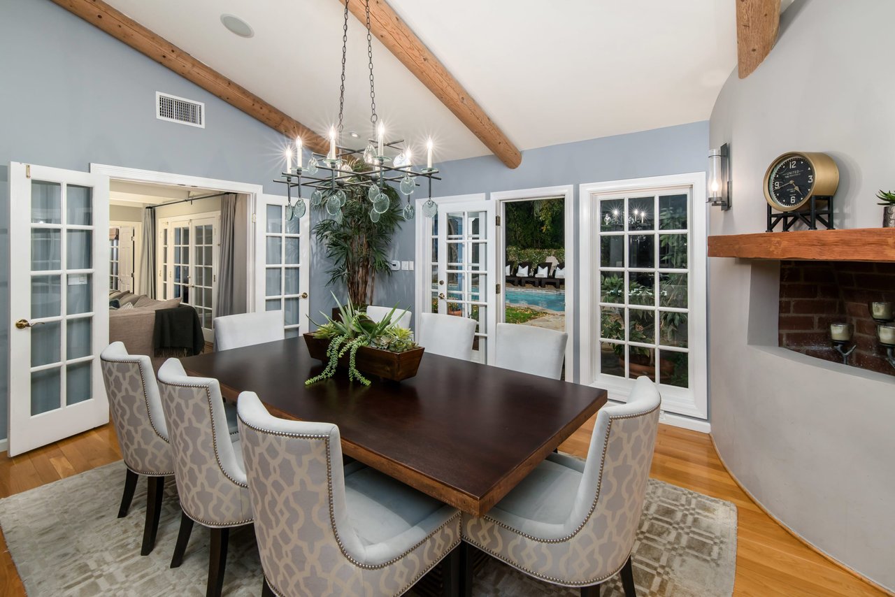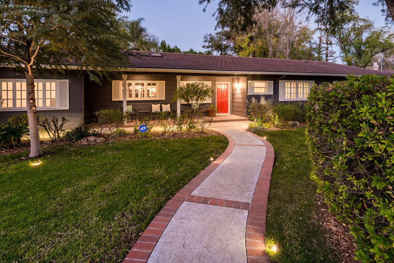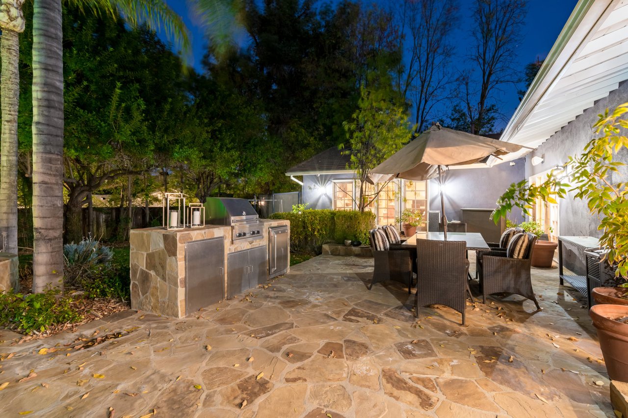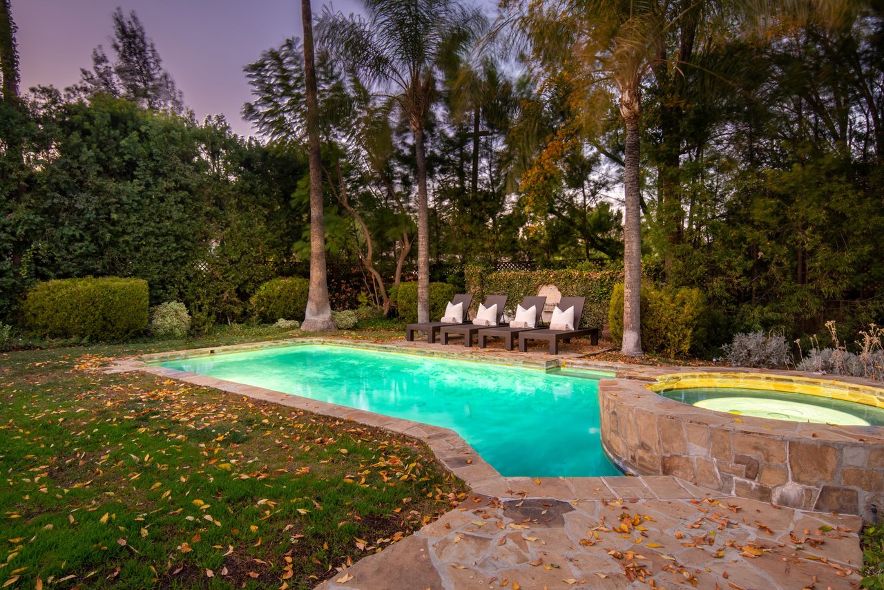 Set on a quiet street south of Ventura Boulevard, this exquisite single story home has style, warmth & charm! Featuring 5 bedrooms, 4 bathrooms, & an inviting backyard w/ classic flagstone patios, a built in BBQ, lounging patio w/ overhead fans, a fountain & resort style spa that cascades into the sparkling pool. Featuring wood & slate floors throughout, the living room offers high vaulted ceilings w/ wood beams, french doors, & has a great flow for entertaining. The family room also has a wood beam ceiling that creates a cozy space that flows to the 5th bedroom & bath that is located on the opposite side of the house - ideal as a maids quarters. The gourmet kitchen boasts a center island, wine cooler, granite counters, a Wolf range, & a Sub-Zero refrigerator. An inviting office/library is located next to the spacious master w/ a view to the beautiful outdoor grounds of mature landscape & greenery. Home is wired for music in various rooms & the yard & has a built in security system.
